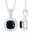Cushion Cut 8 MM Black Onyx and Moissanite Halo Necklace with Silver Chain