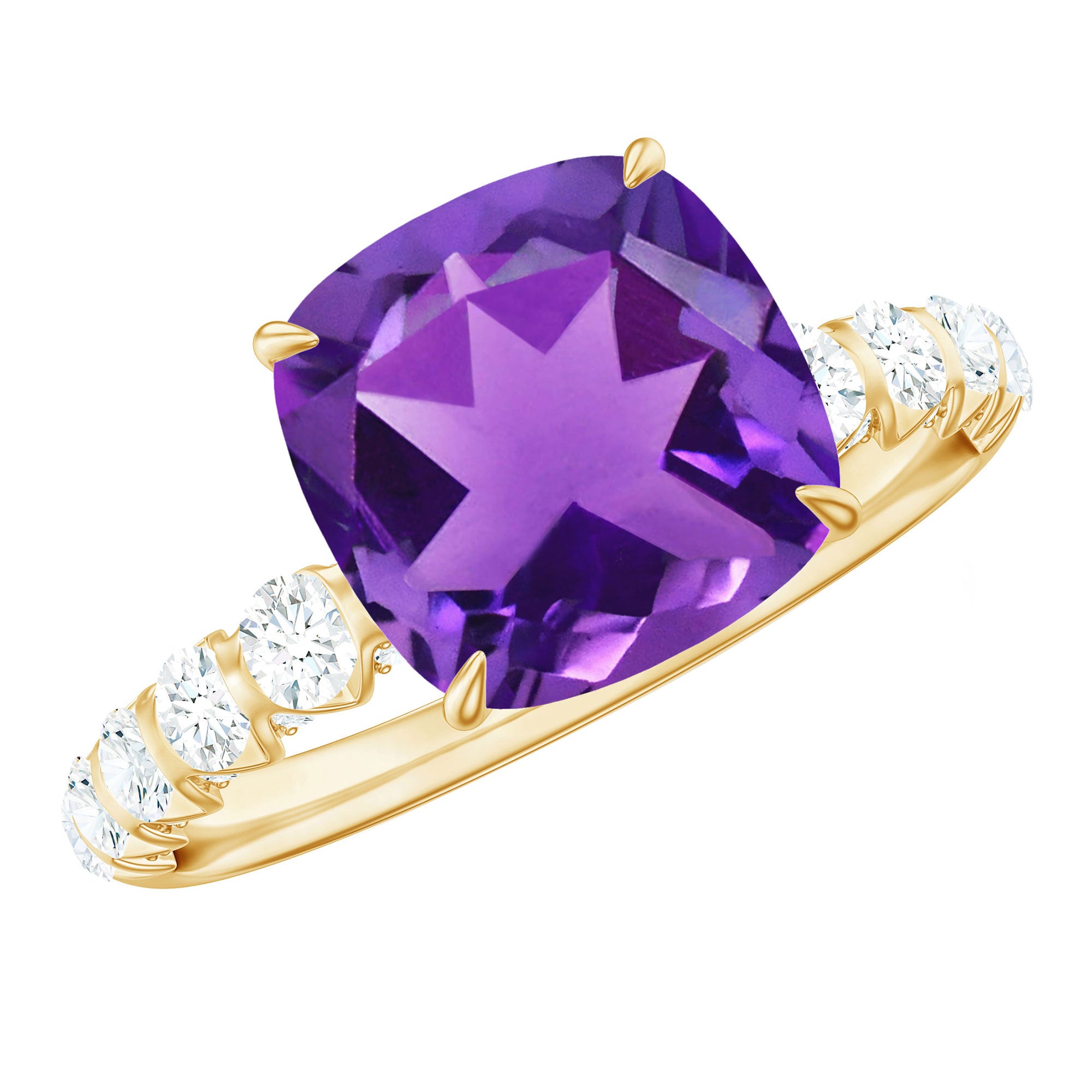 Cushion Cut Amethyst Solitaire Engagement Ring with Diamond