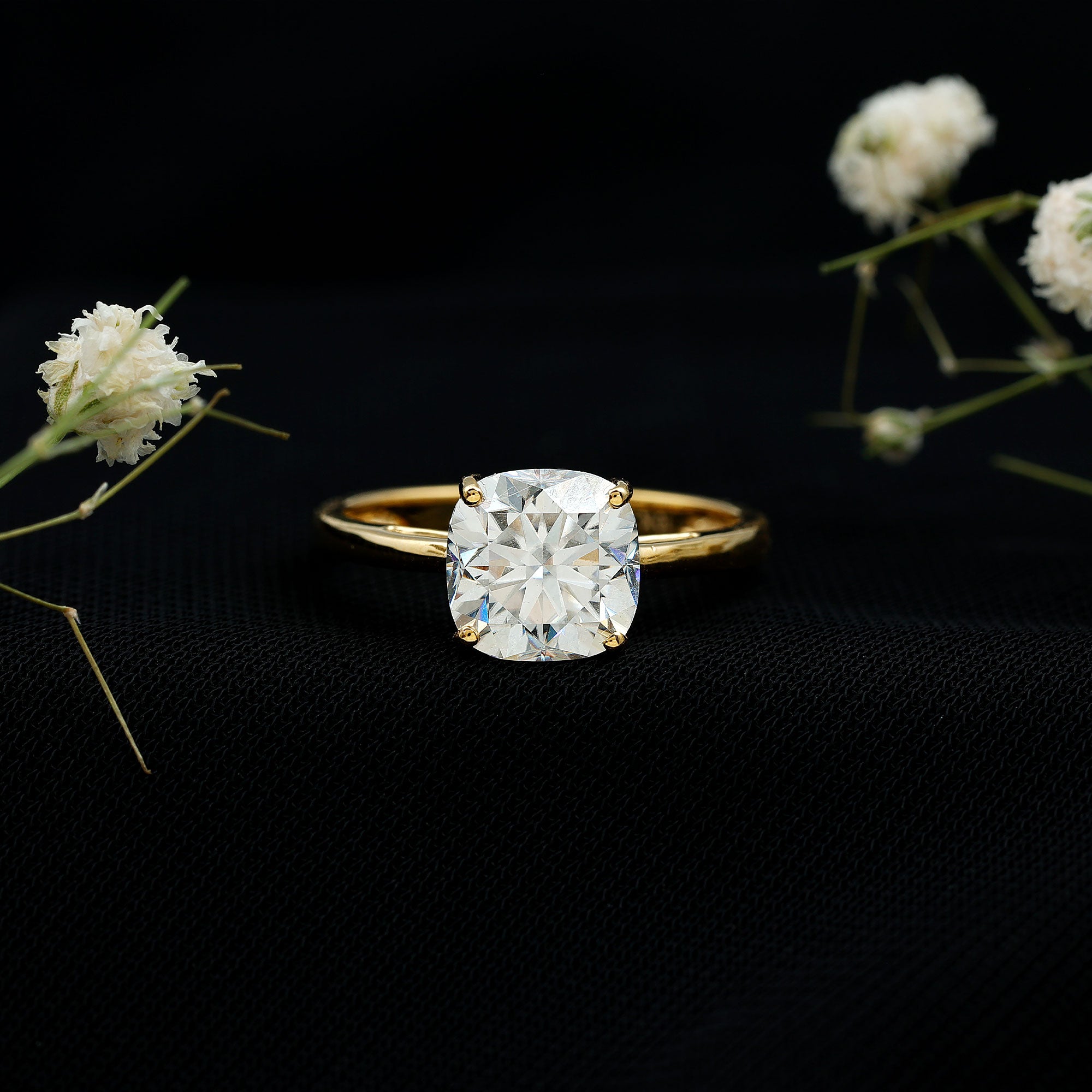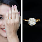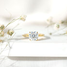 Capture her affections by offering this Solitaire Engagement Ring, an unequivocally striking and exquisite choice. Featuring a Cushion Cut Moissanite as the centerpiece, elegantly set in a double prong setting.