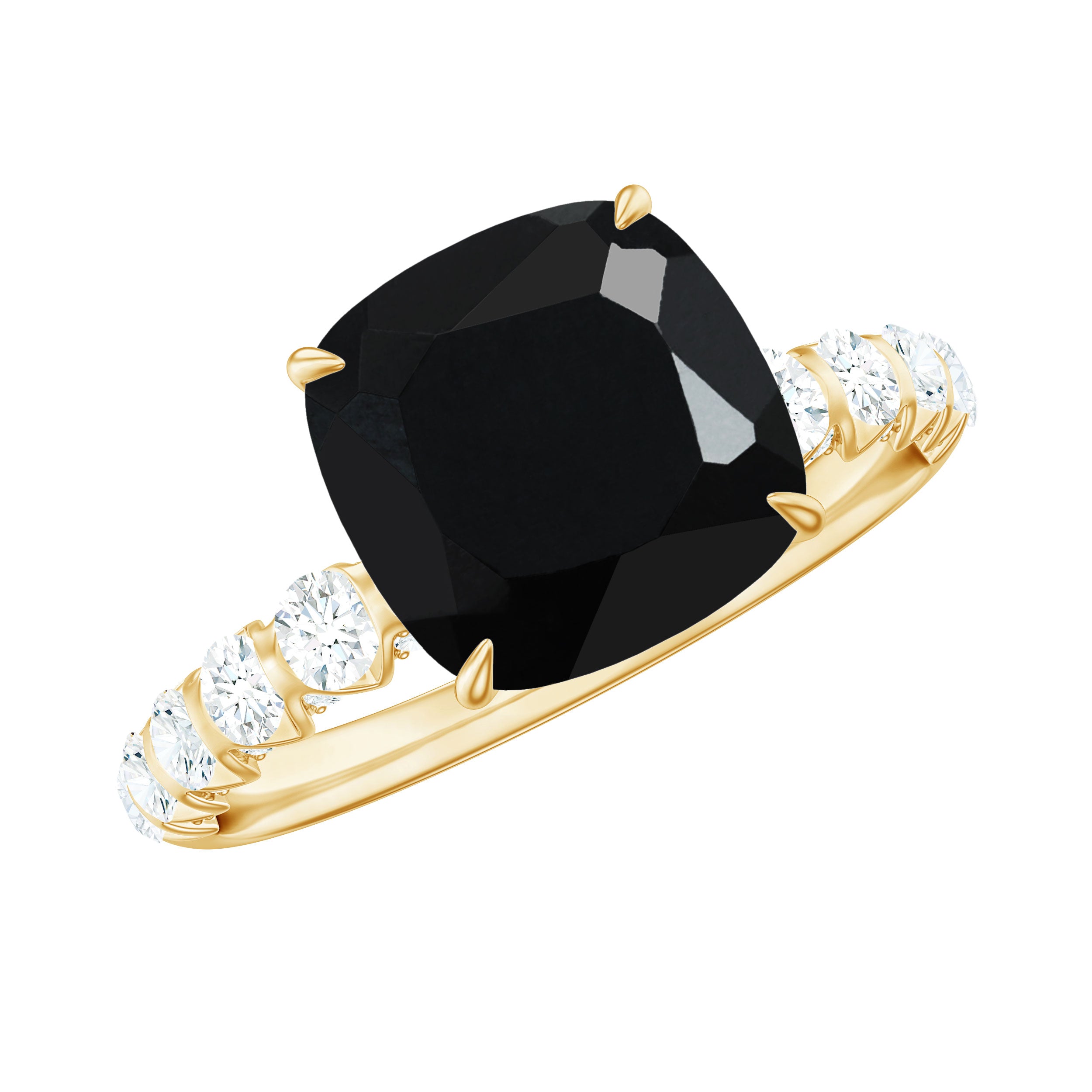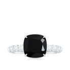 Cushion Cut Created Black Diamond and Diamond Solitaire Ring