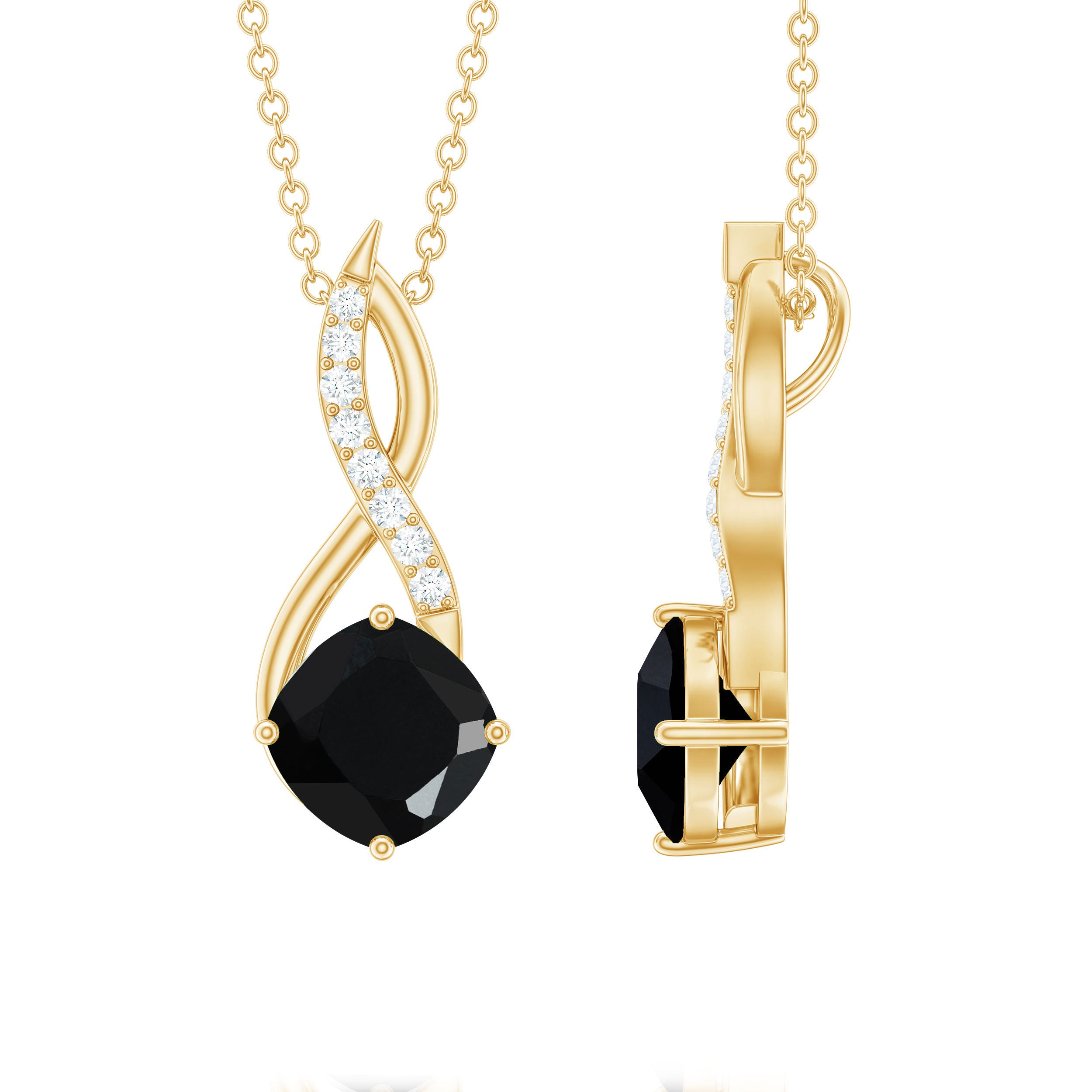 Cushion Cut Created Black Diamond Solitaire Infinity Pendant with Diamond