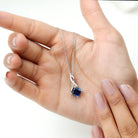 Cushion Cut Created Blue Sapphire Solitaire Infinity Pendant with Moissanite