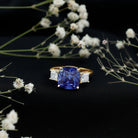 Add a touch of luxury to your appearance with this elegant Created Blue Sapphire Ring. Featuring a stunning 10 MM Cushion Shape Lab Created Blue Sapphire, elegantly set in a Claw Setting and adorned with Princess Cut Moissanite. Enhance your style and elegance with this remarkable Created Blue Sapphire Ring, and let it speak volumes about your impeccable taste.