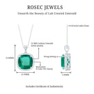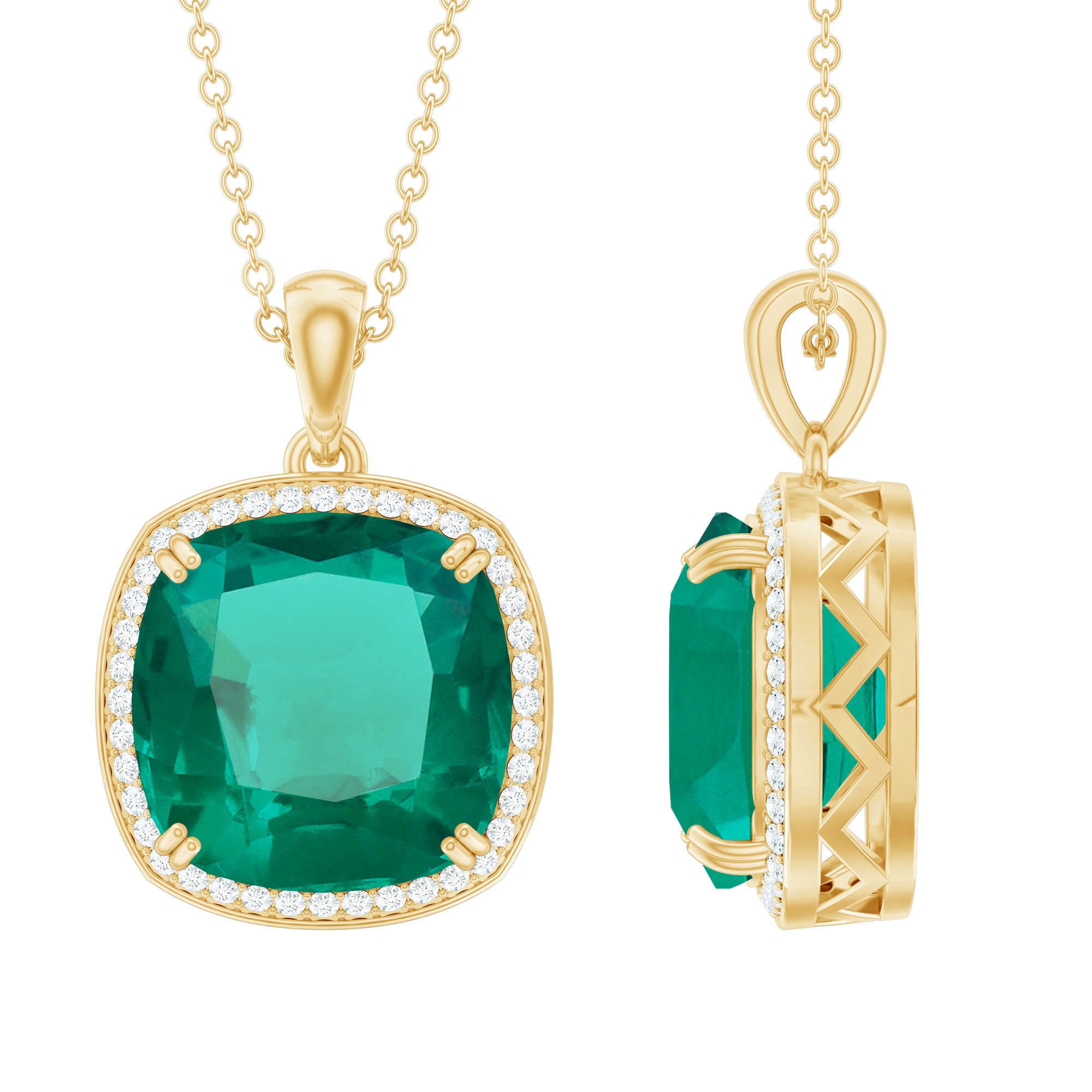 Cushion Cut Created Emerald and Moissanite Halo Pendant Necklace