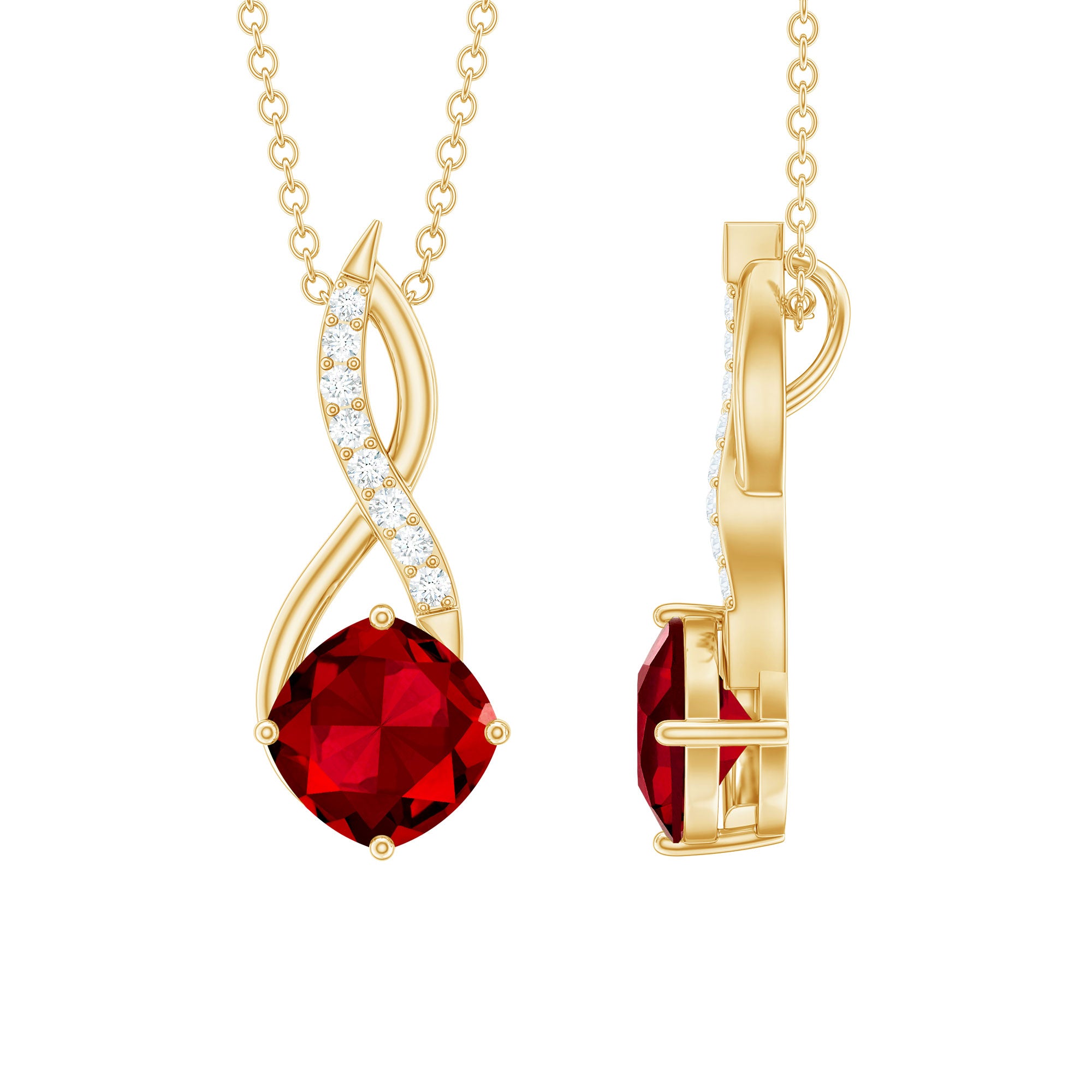 Cushion Cut Created Ruby Solitaire Infinity Pendant with Diamond