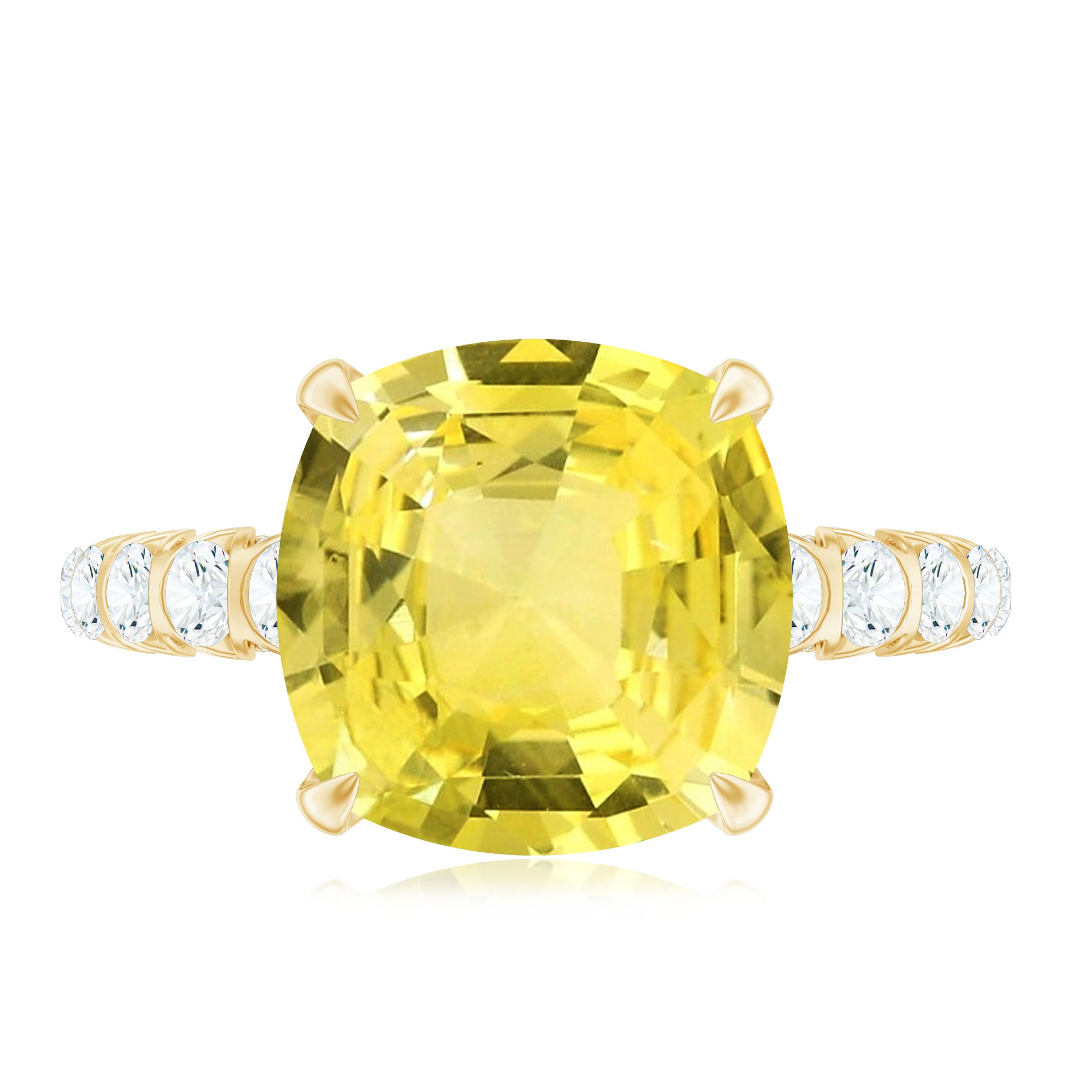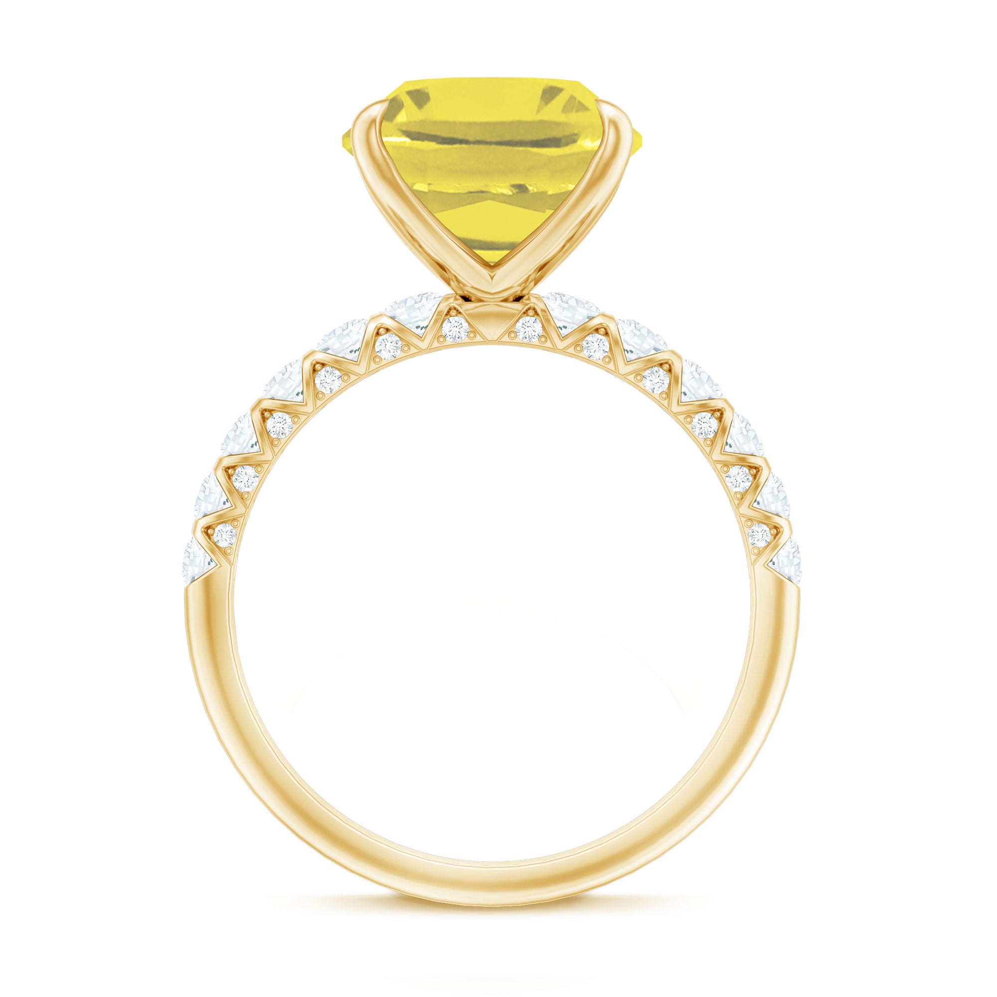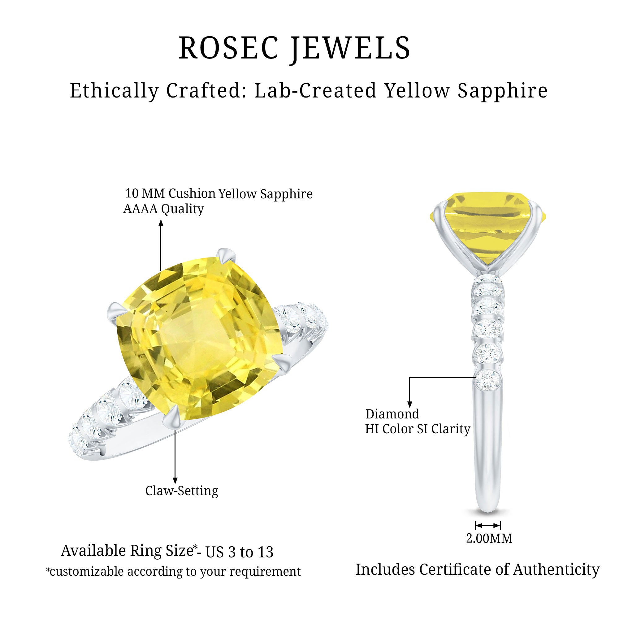 Cushion Cut Created Yellow Sapphire Engagement Ring with Diamond