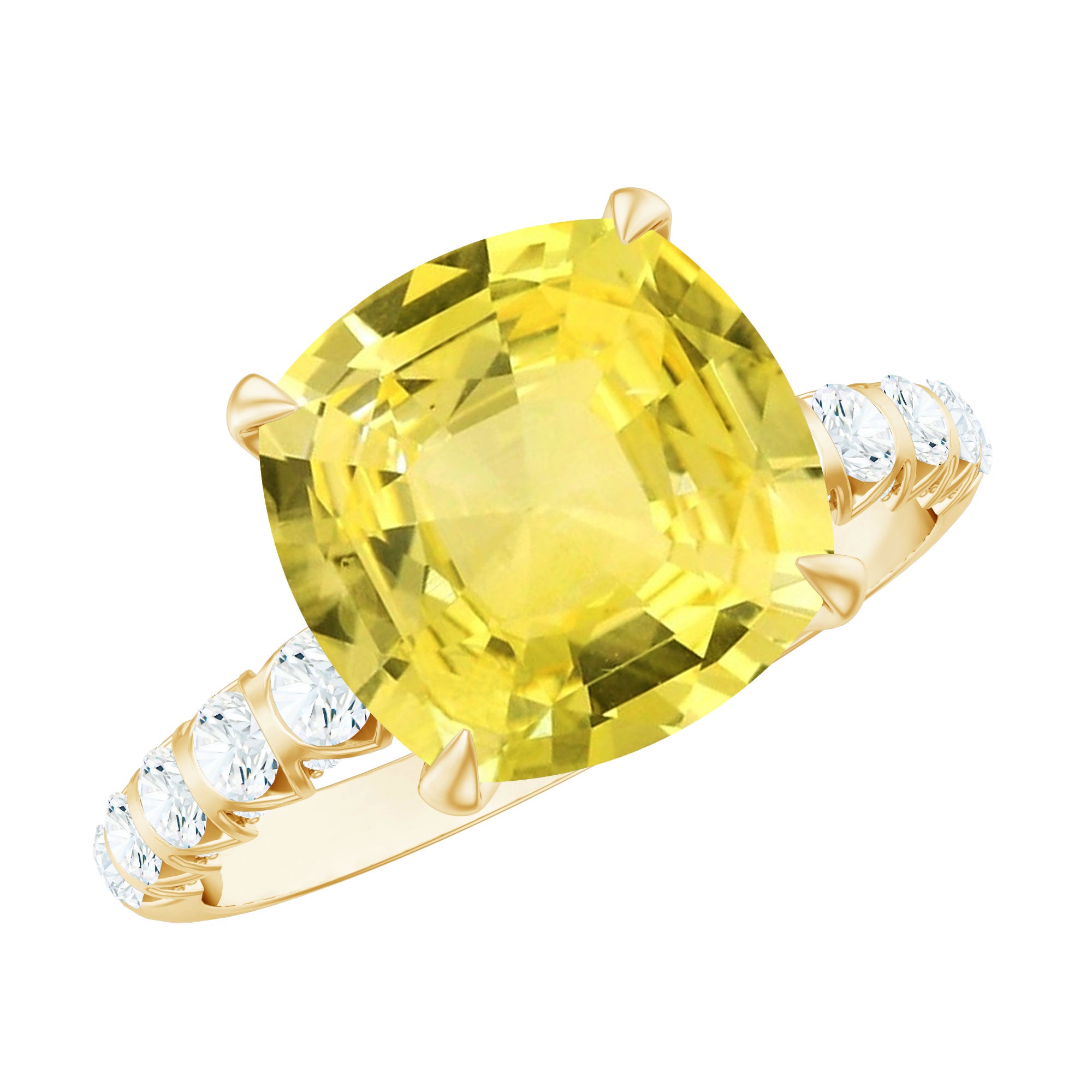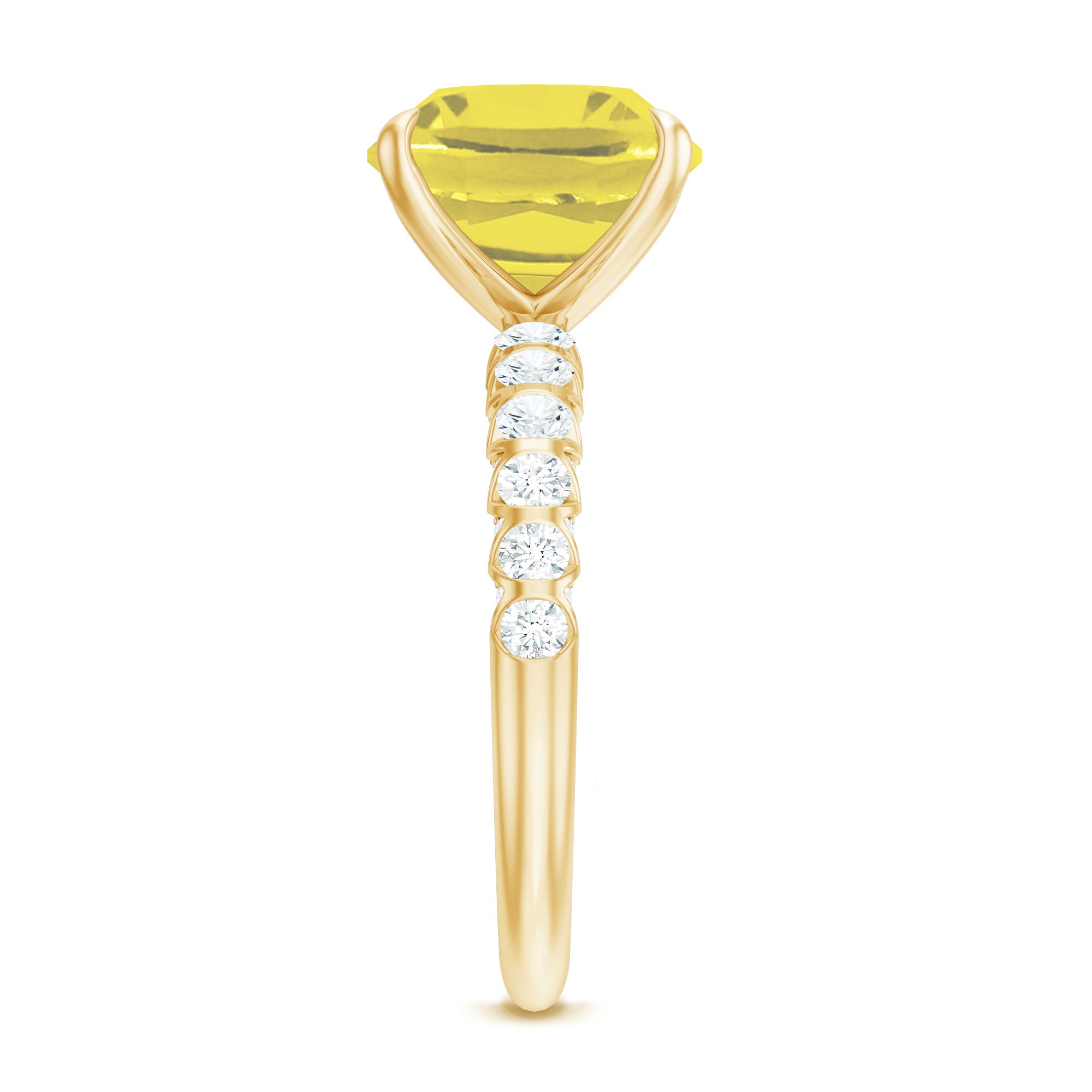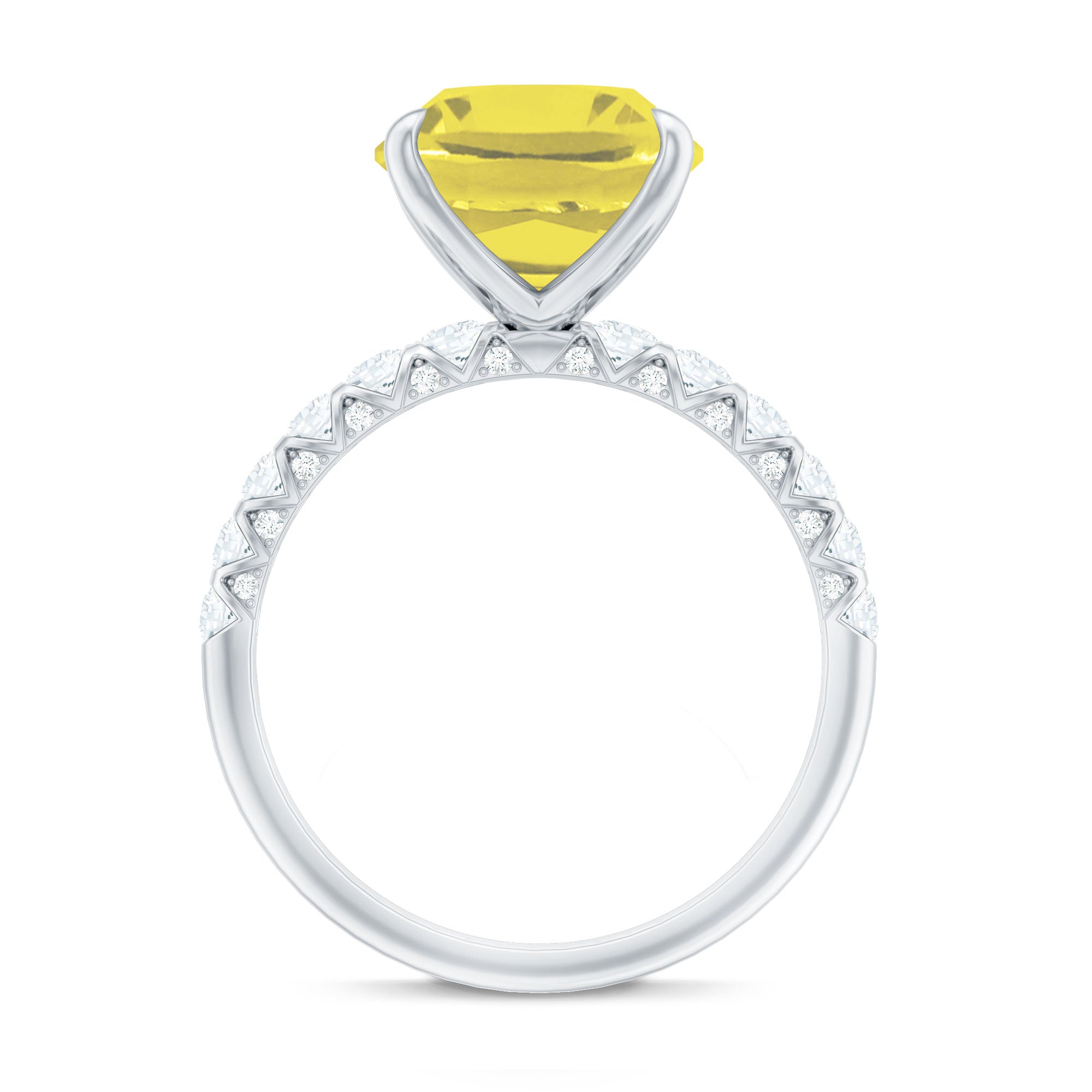 A mesmerizing Engagement Ring that features an 8 MM Cushion Cut Lab Created Yellow Sapphire secured in Claw Setting while dainty Round Diamonds studded on the shank. This Created Yellow Sapphire Ring is stunning for your big day and the perfect proposal ring. Make your partners day truly memorable by giving her the charming Solitaire Ring.
