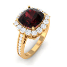 Cushion Cut Garnet Halo Engagement Ring with Diamond