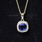 Cushion Cut Lab Created Blue Sapphire Halo Pendant With Moissanite