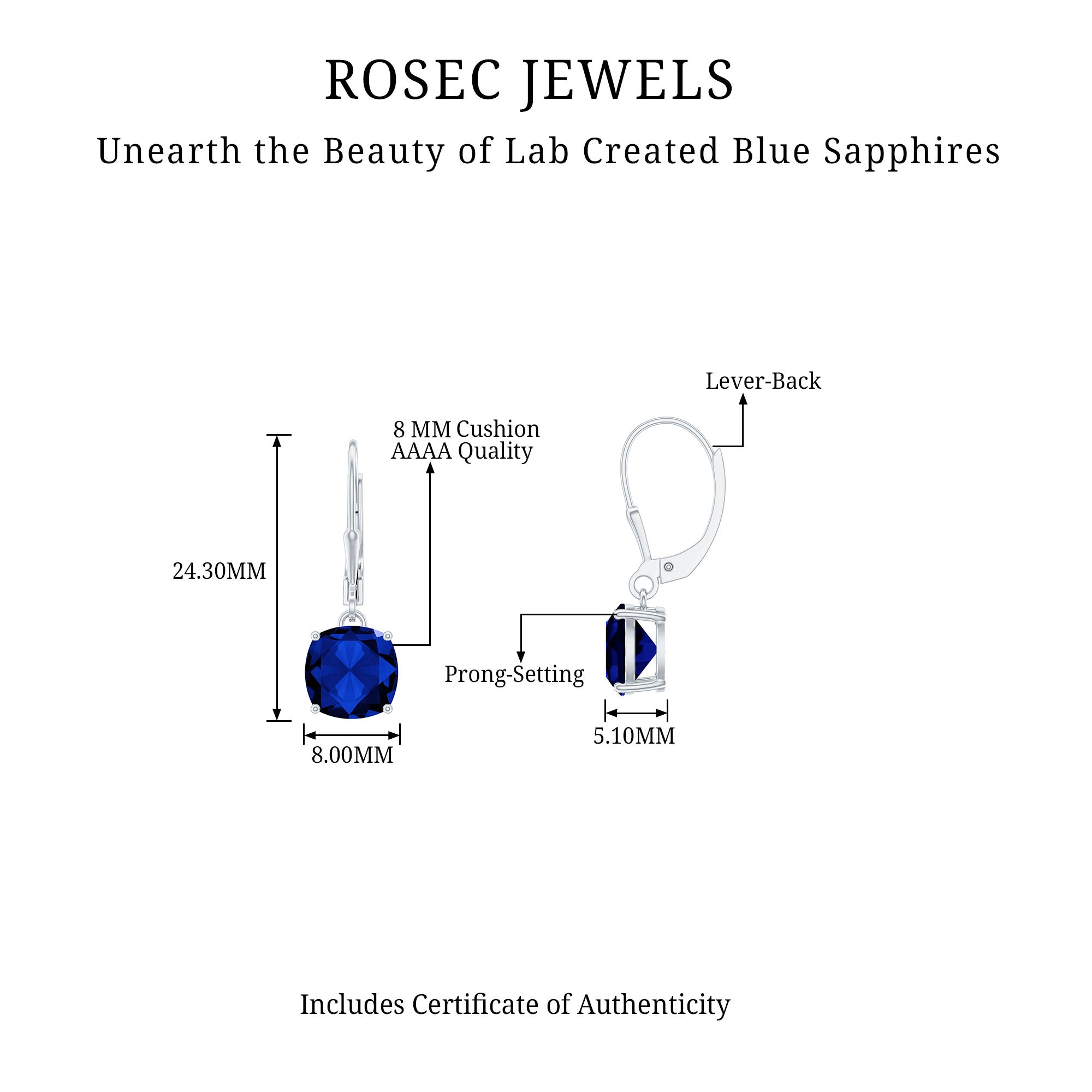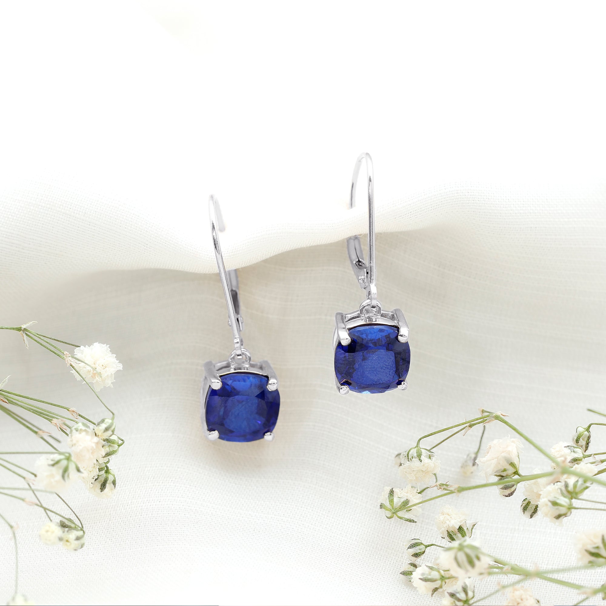 Make every moment a little more radiant with these enchanting Blue Sapphire Drop Earrings, designed for those who love jewelry that speaks with quiet confidence. Each earring features an 8 MM cushion cut lab created blue sapphire, set in 4-prong setting. The gemstone is suspended gracefully from a lever back closure, giving the design an elegant profile that moves gently as you do. What sets these Blue Sapphire Earrings apart is the harmony of simplicity and bold color. Lab-created gemstones ensure exceptional clarity and durability while providing an ethical alternative for the environmentally conscious wearer. The lever-back closure is crafted for everyday comfort, offering a secure fit without compromising on style. Perfect for a variety of occasions, these Cushion Cut Earrings can elevate a casual day look, complement a professional outfit, or add a finishing touch to your evening ensemble. Thoughtfully packaged and made to impress, these Sapphire Hoop Earrings also make a heartfelt gift for birthdays, milestones, or any moment worth celebrating.