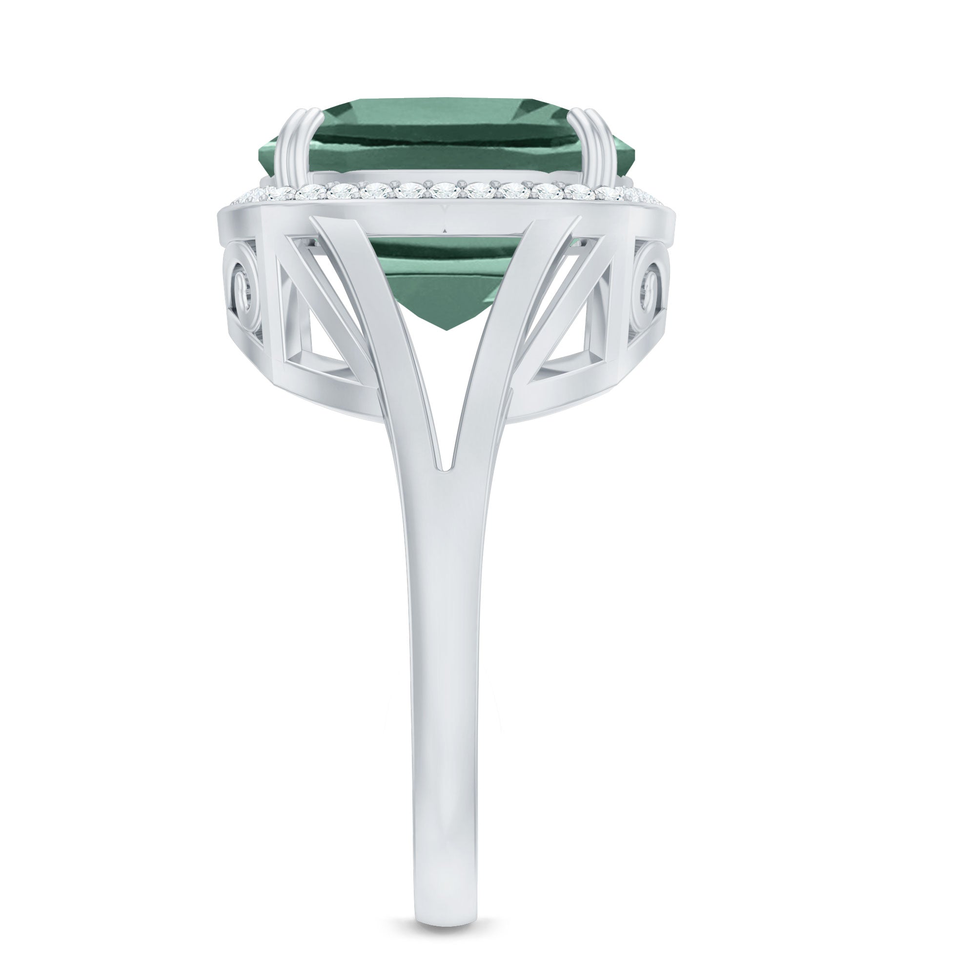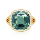 Cushion Cut Lab Grown Green Sapphire Engagement Ring with Moissanite
