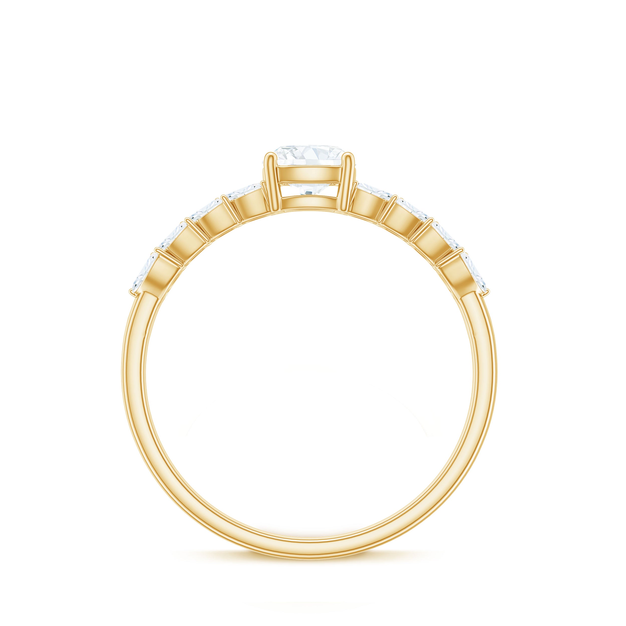 Cushion Cut Moissanite Solitaire Engagement Ring with Side Stones