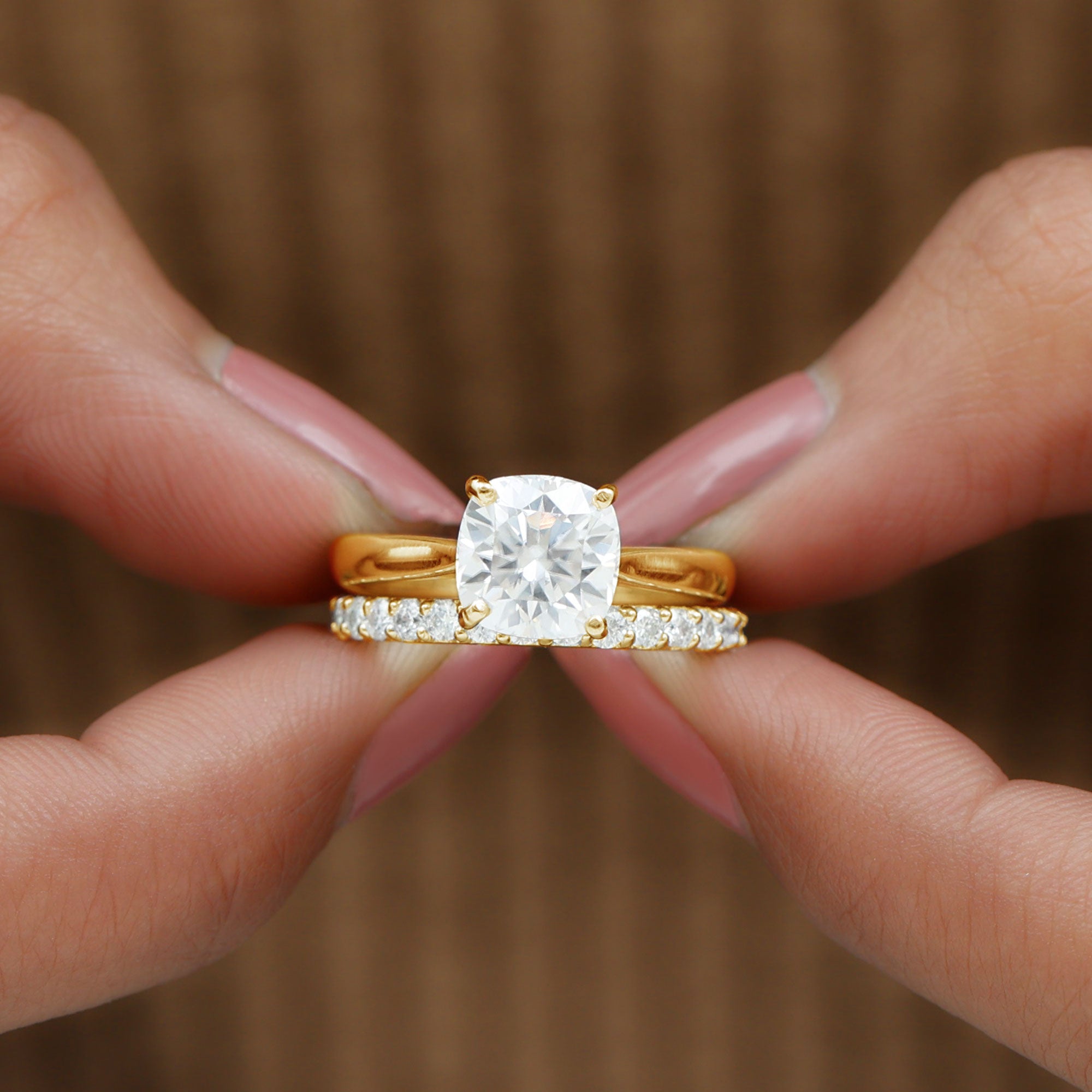 Cushion Cut Moissanite Solitaire Bridal Set with Certificate