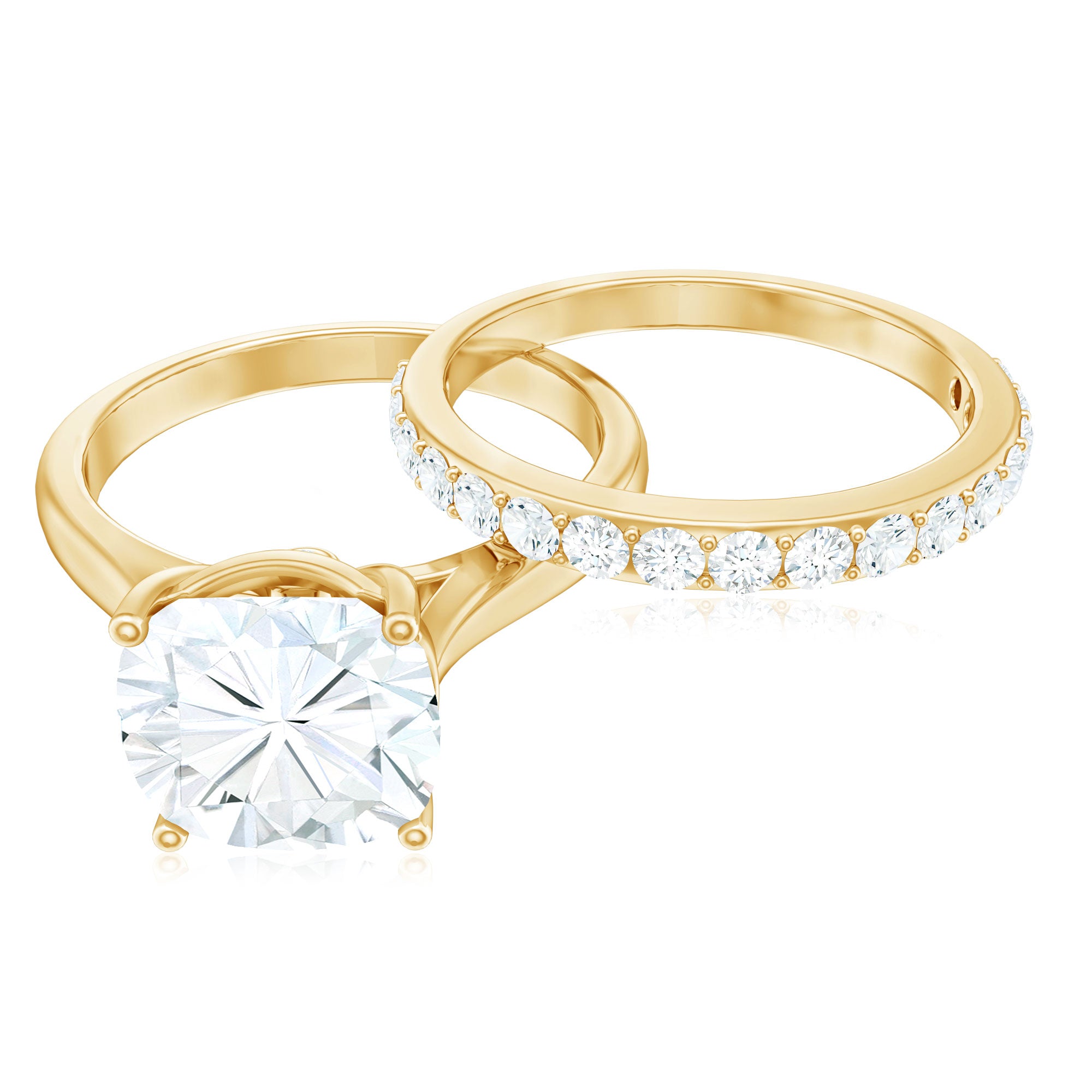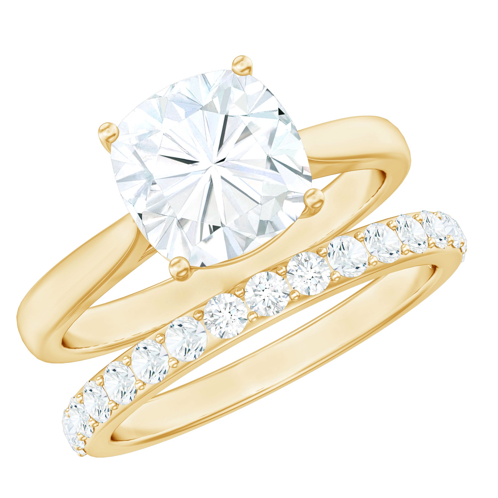 Cushion Cut Moissanite Solitaire Bridal Set with Certificate