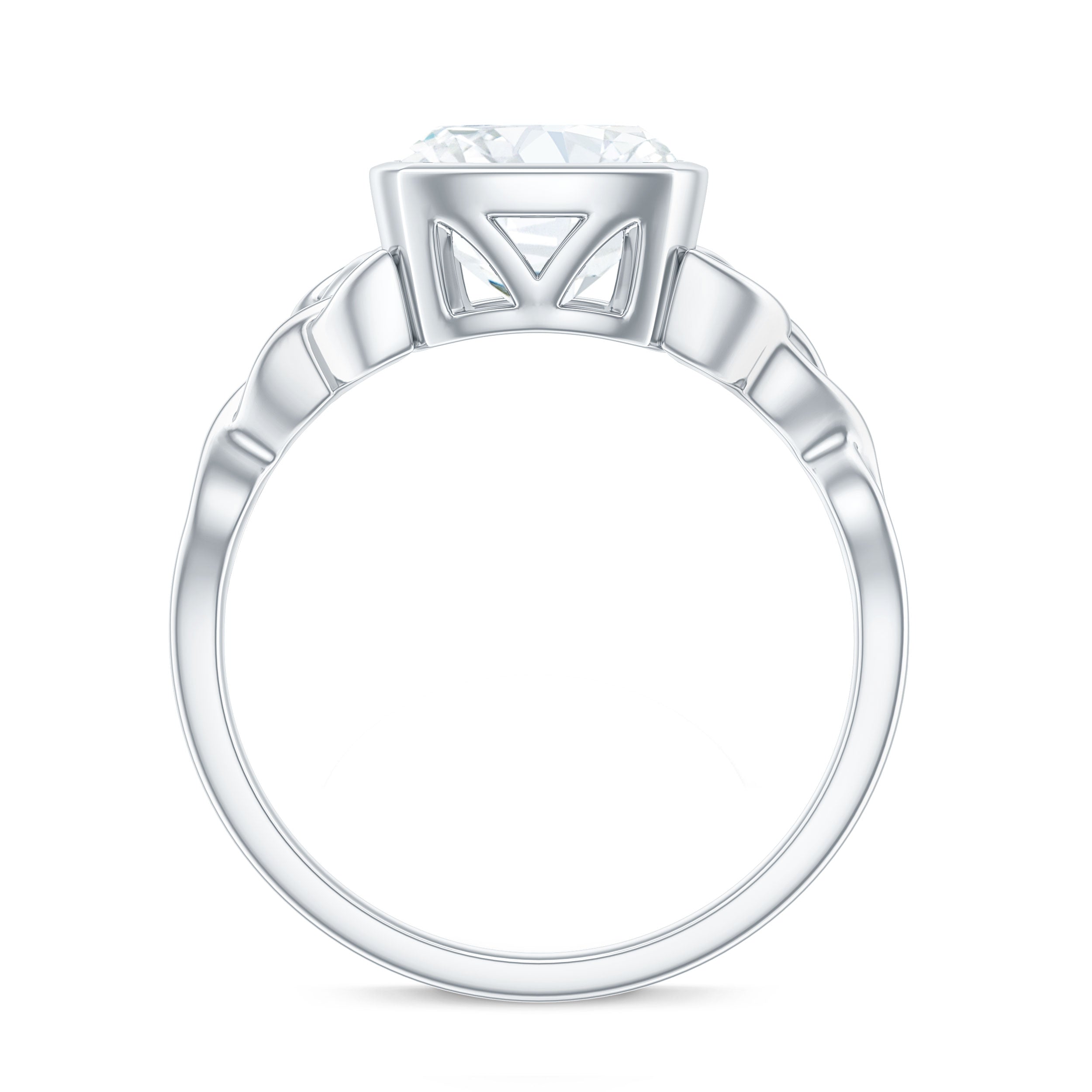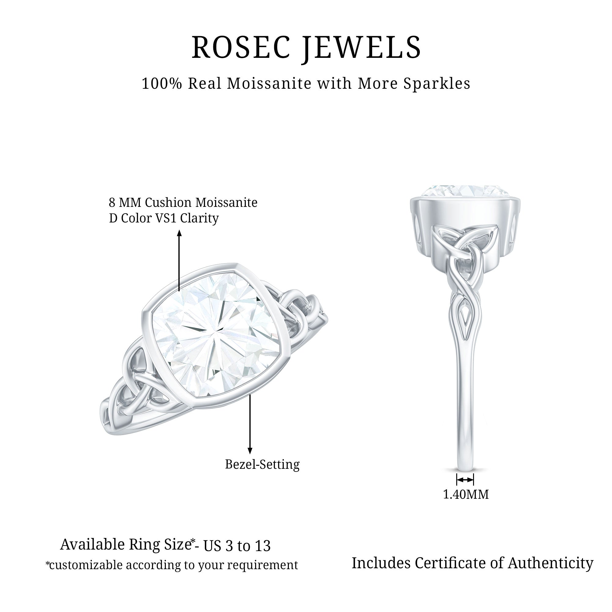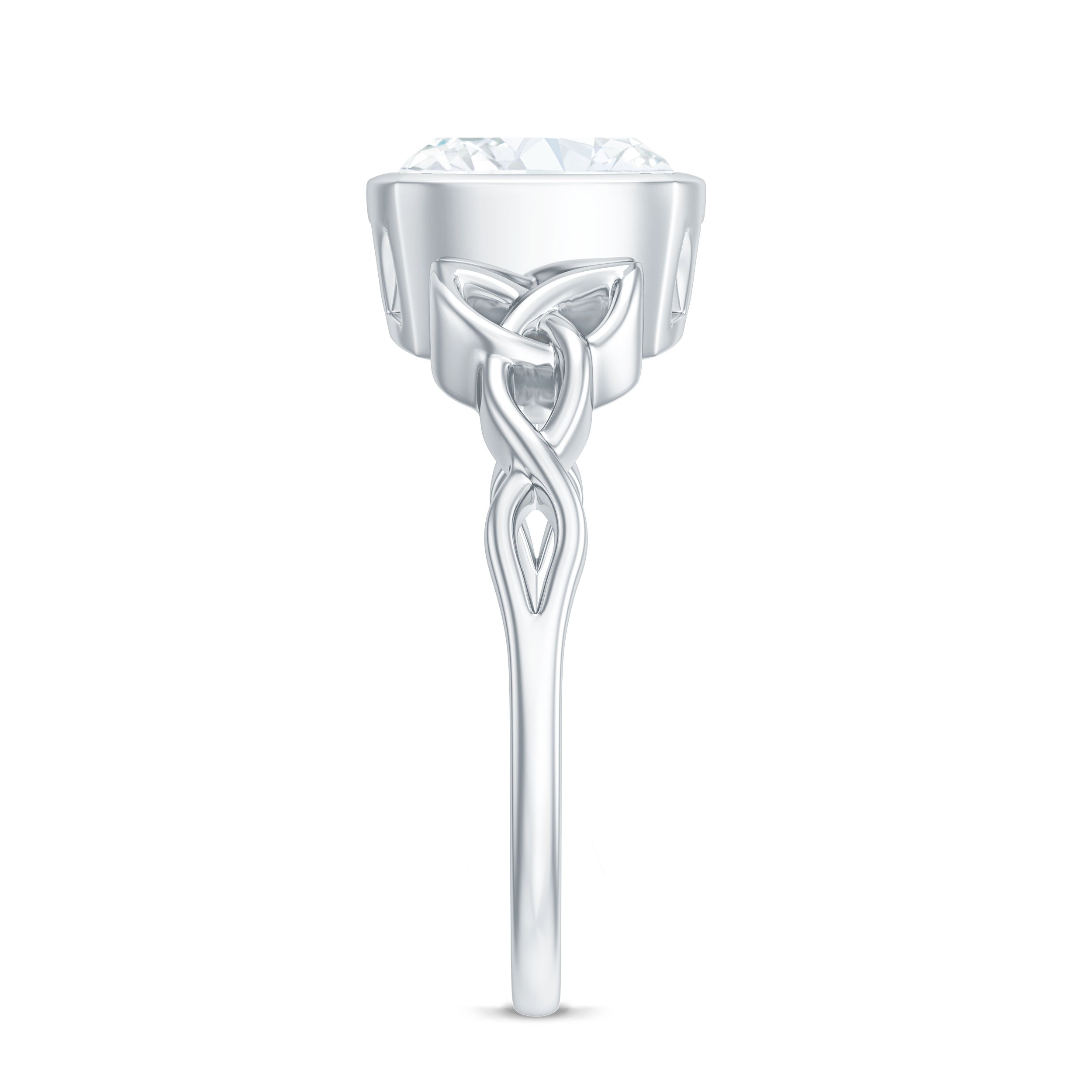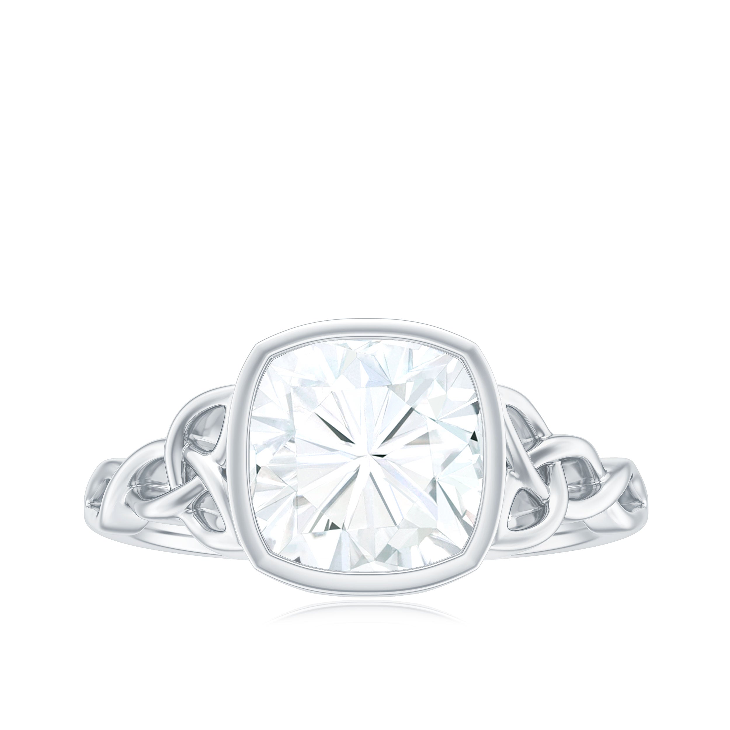 Cushion Cut Moissanite Solitaire Celtic Knot Ring in Bezel Setting