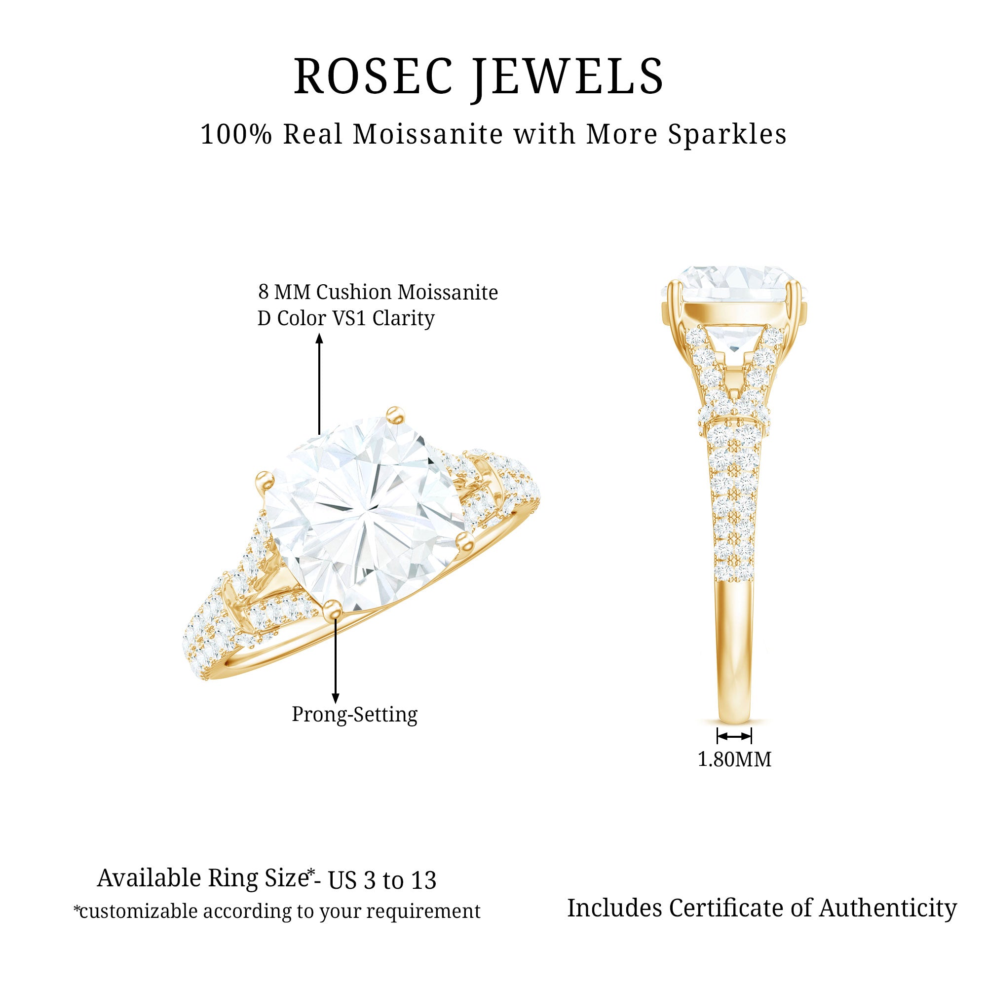 Cushion Cut Moissanite Solitaire Engagement Ring with Split Shank