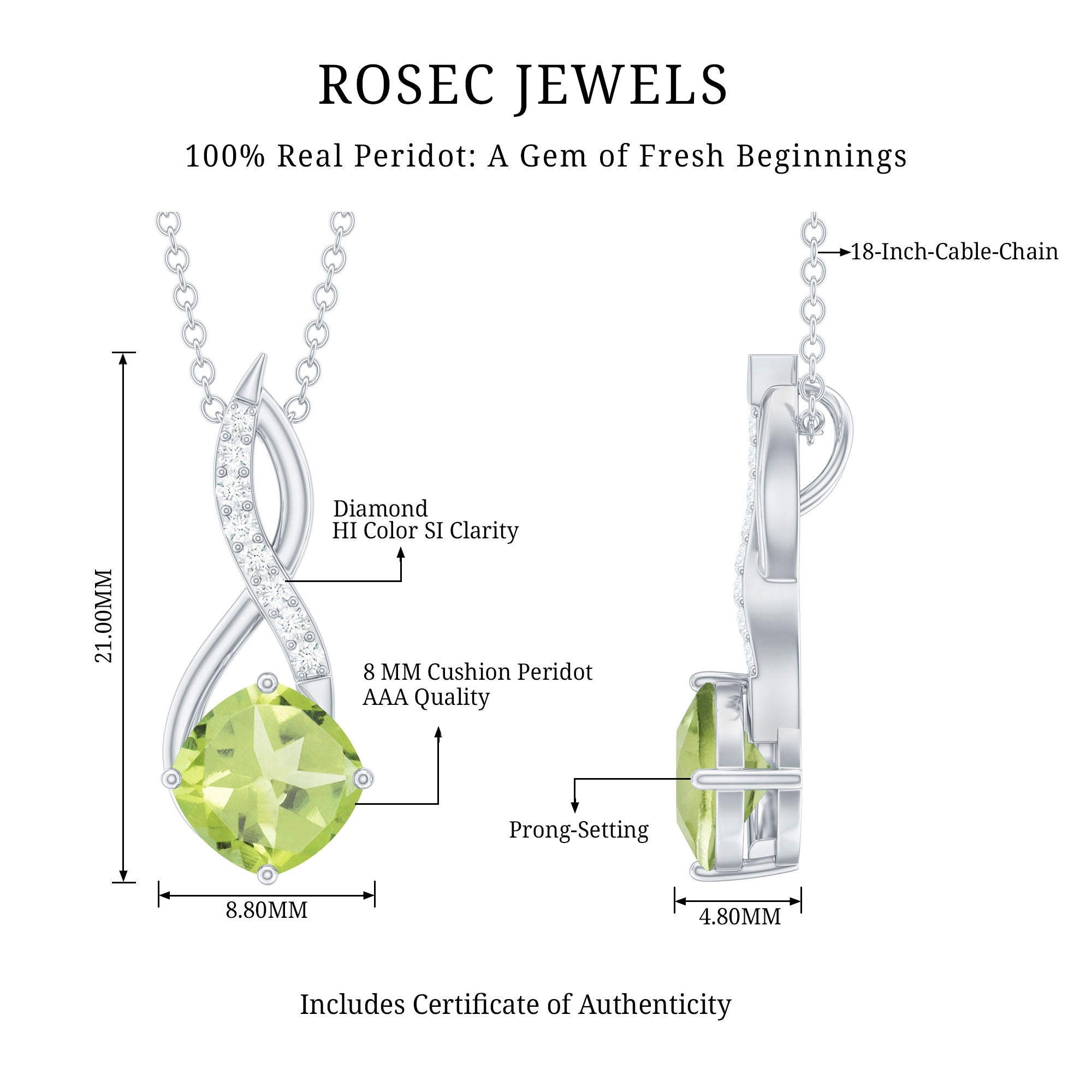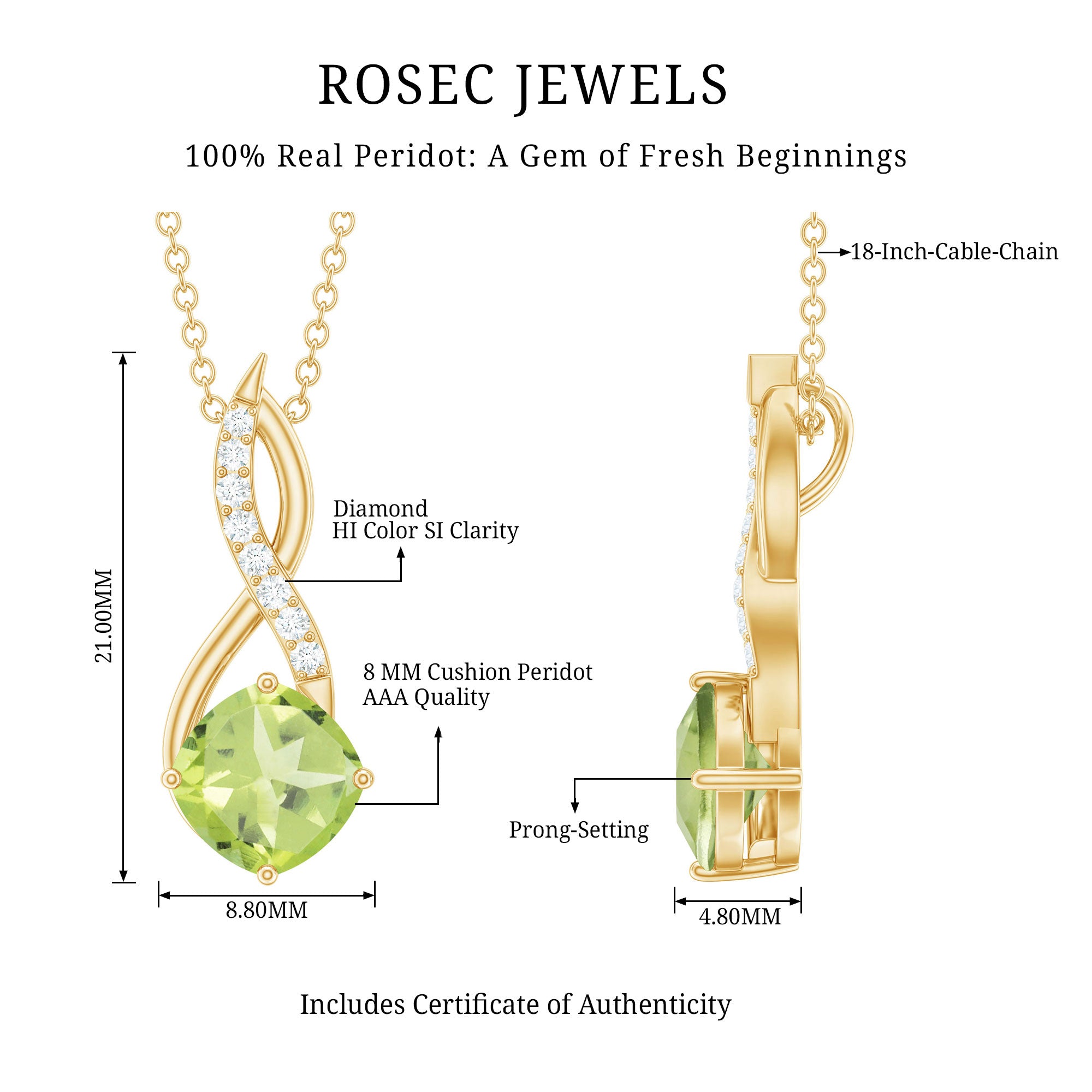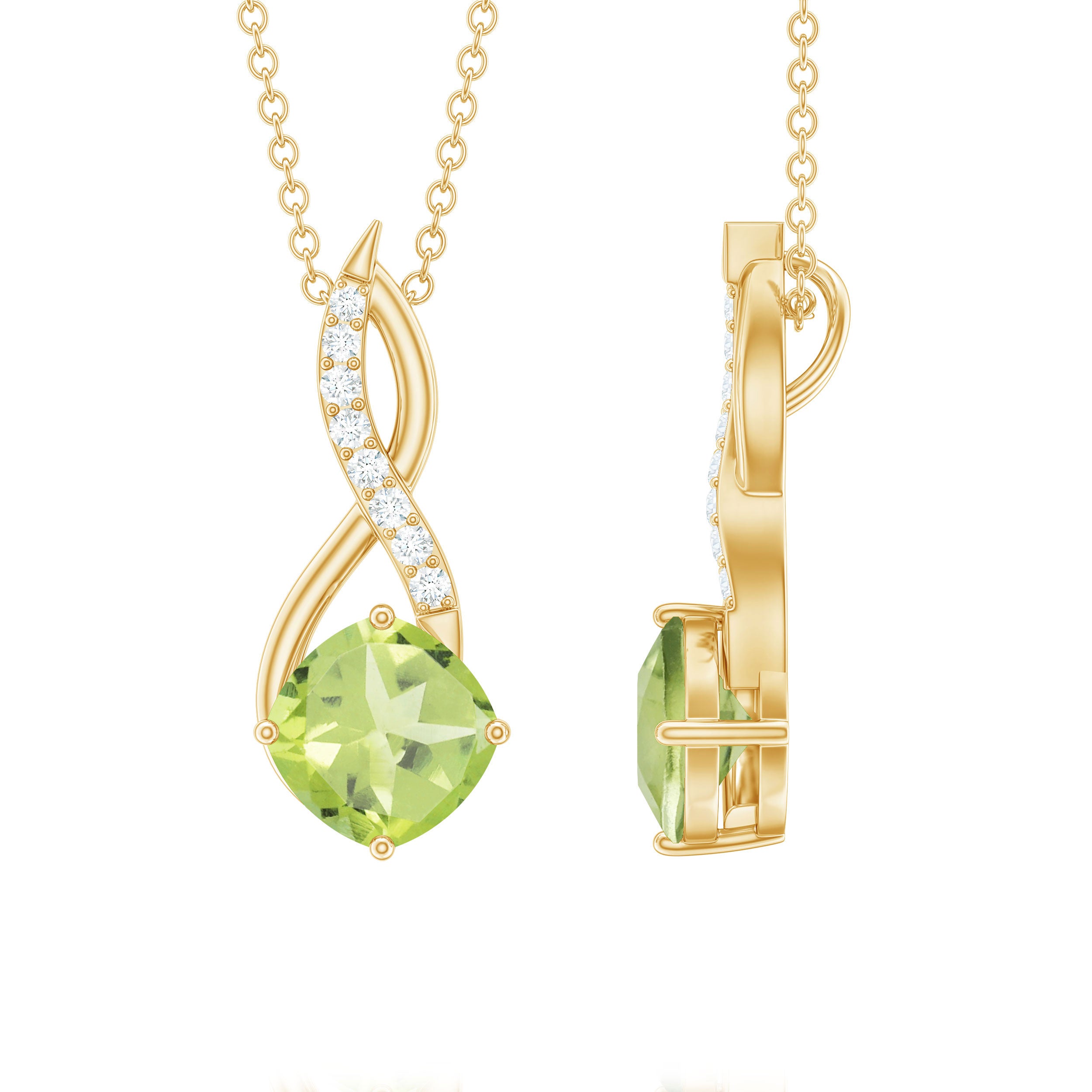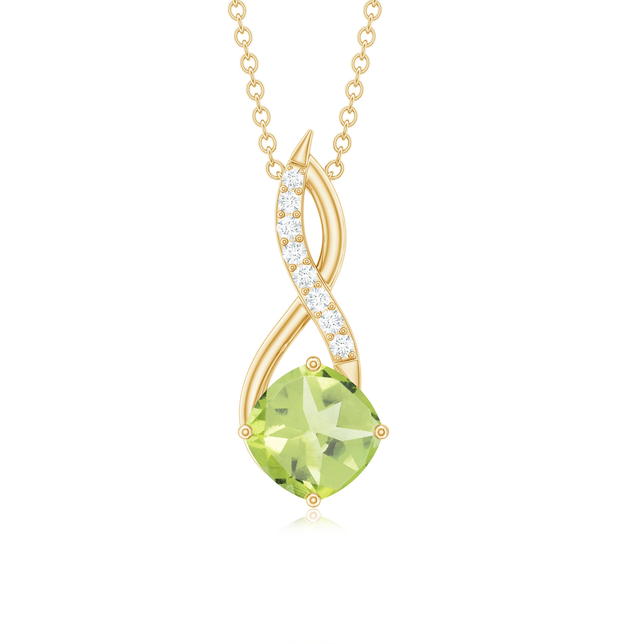 Cushion Cut Peridot Solitaire Infinity Pendant with Diamond
