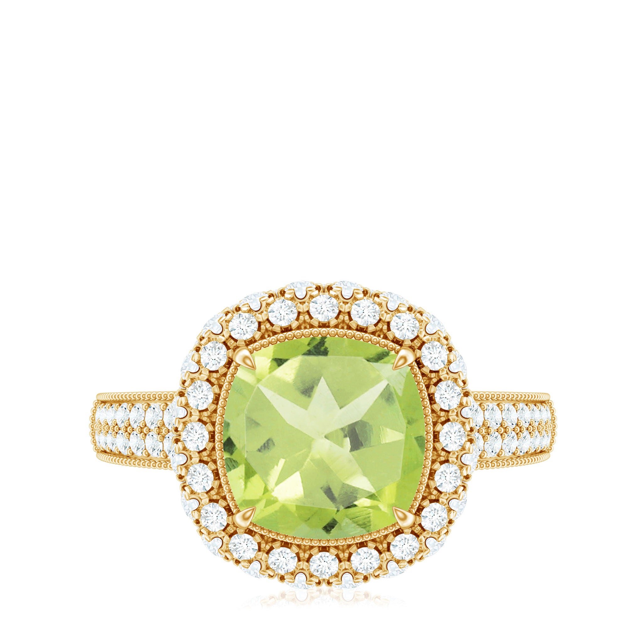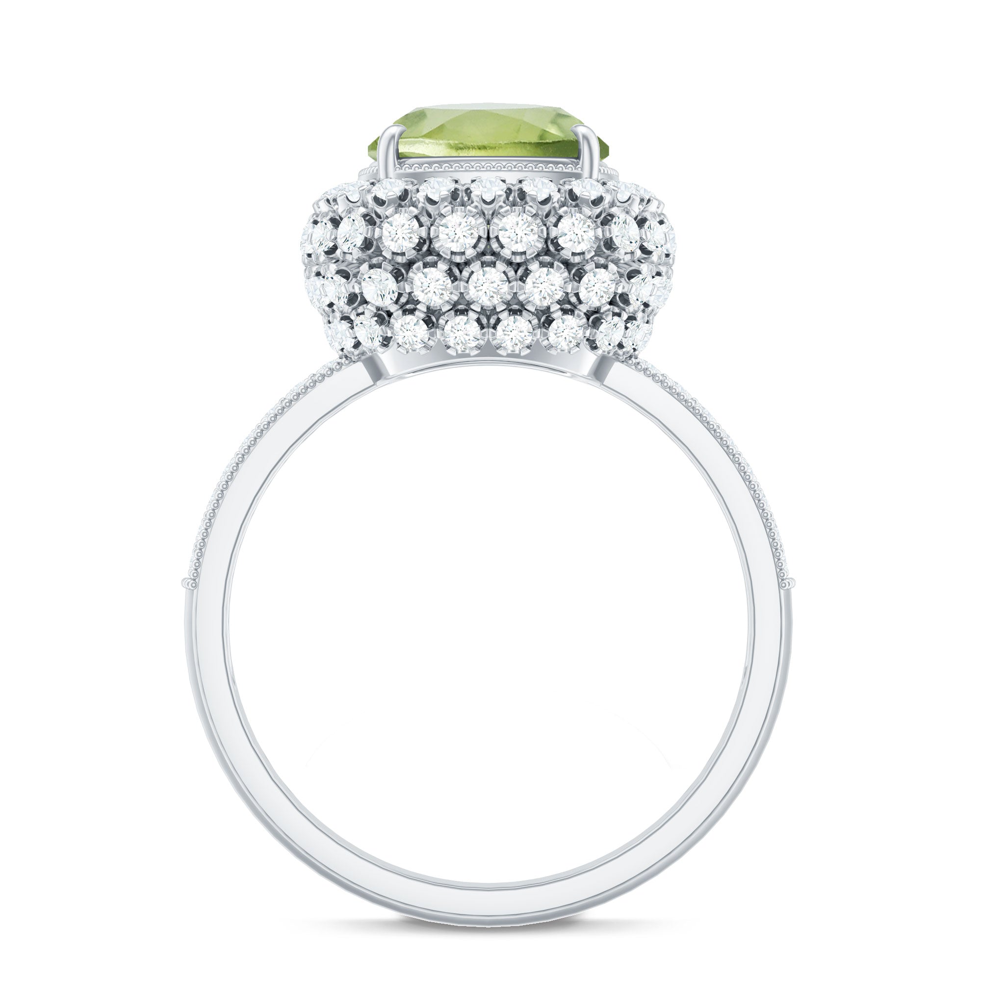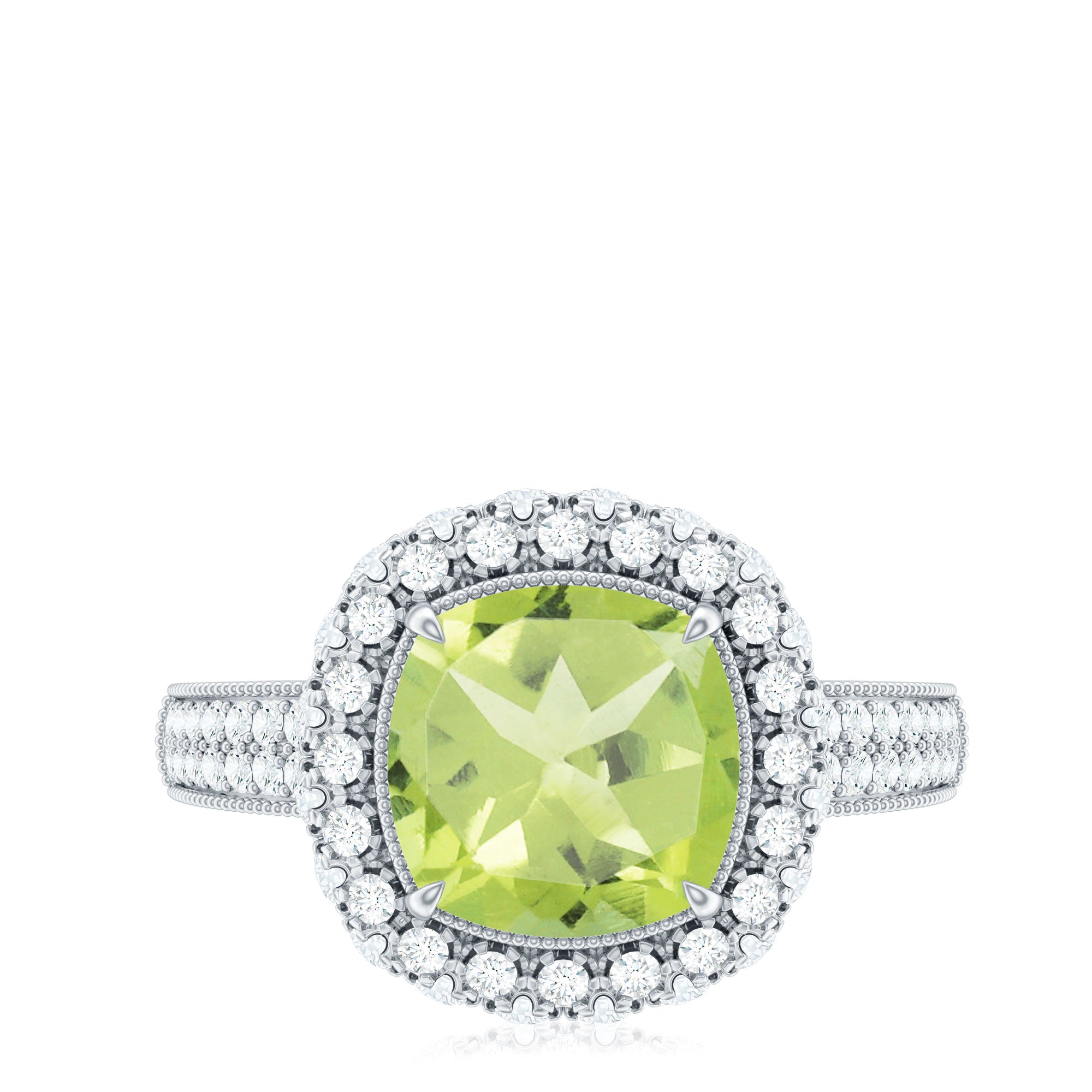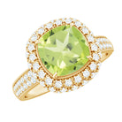 Cushion Cut Peridot Statement Engagement Ring with Moissanite