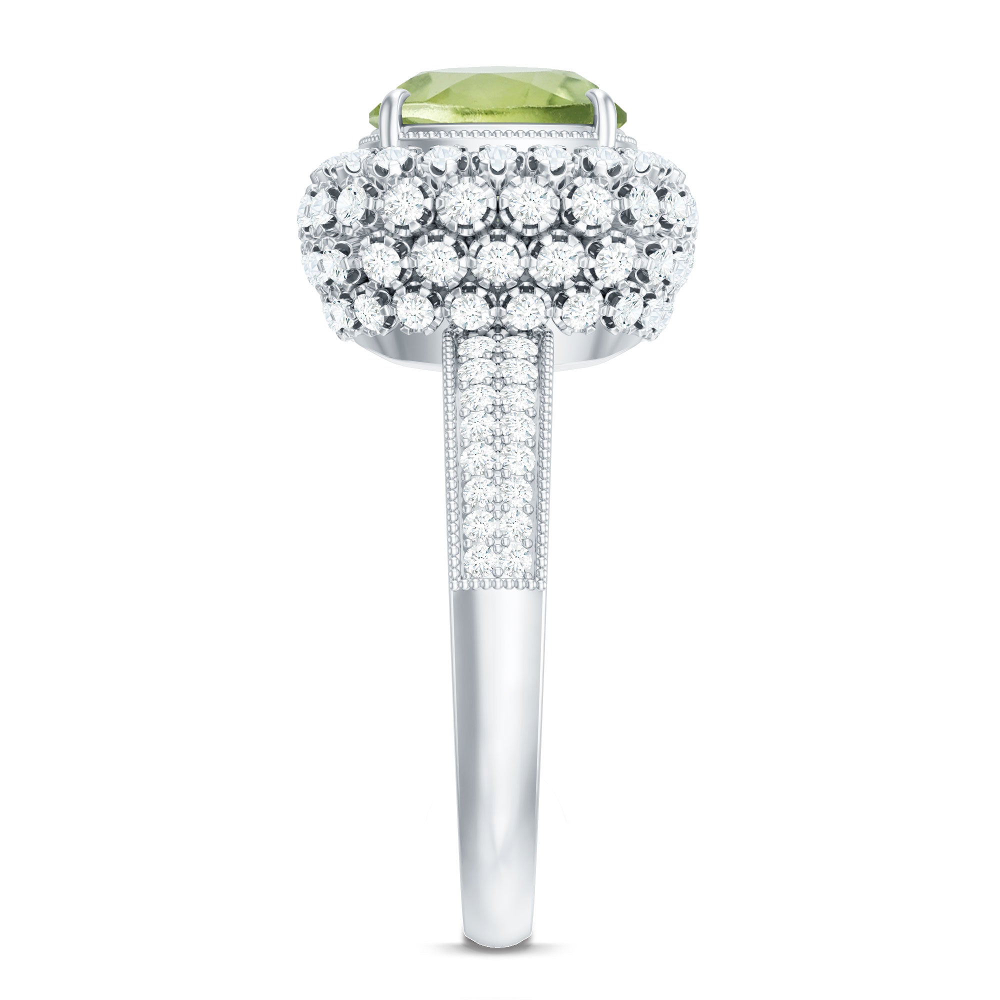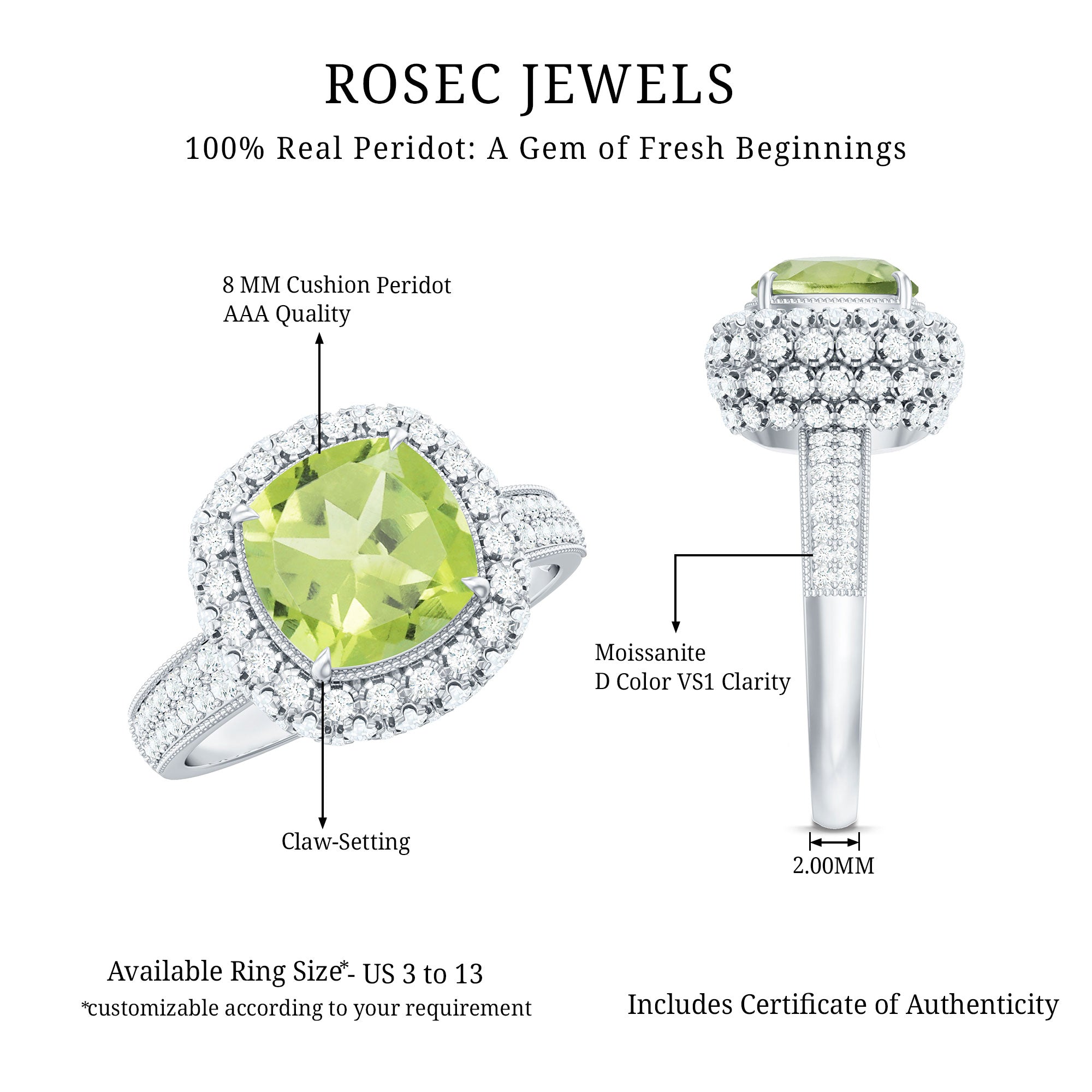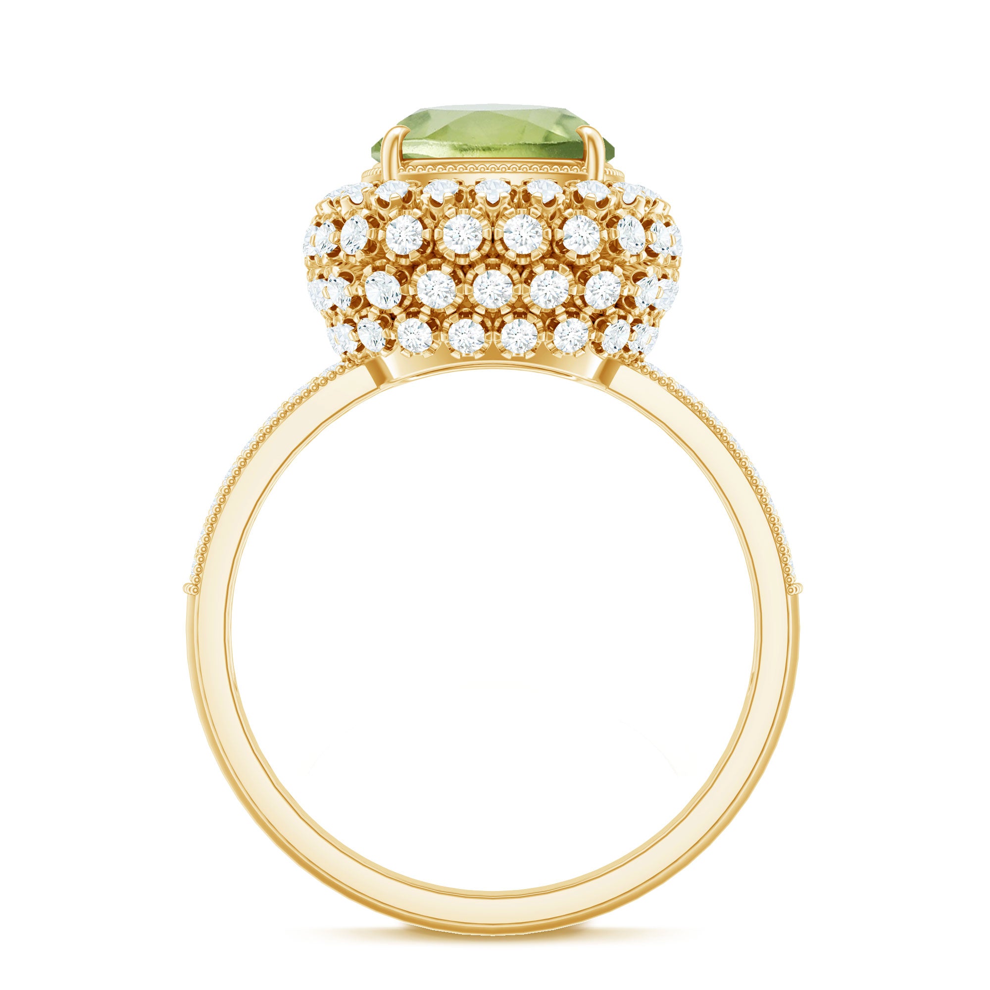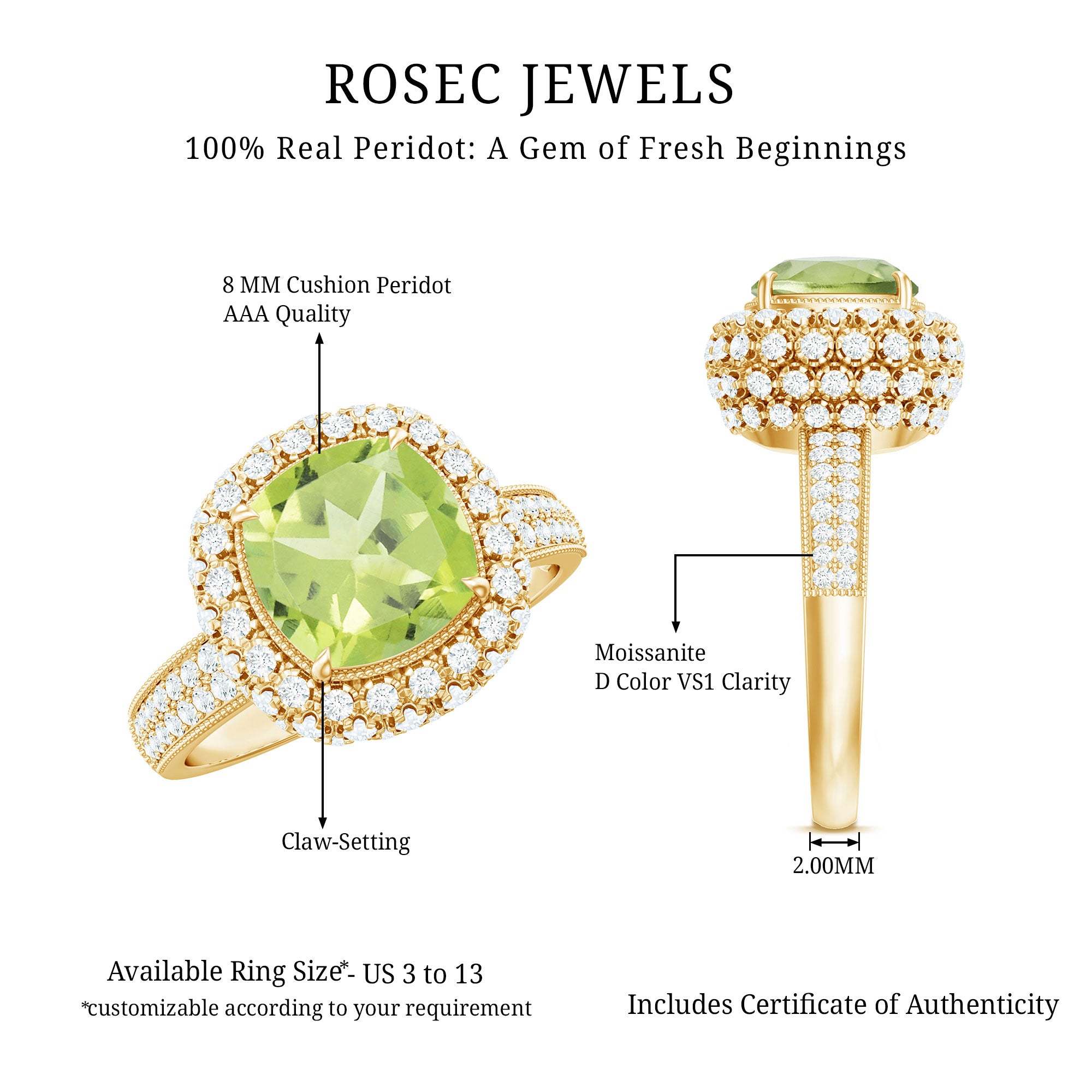 Cushion Cut Peridot Statement Engagement Ring with Moissanite