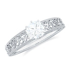 Cushion Cut Solitaire Moissanite Engagement Ring with Filigree Detail