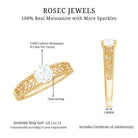 Pop the biggest question of your life with this gorgeous Solitaire Moissanite Engagement Ring, which perfectly combines romance, vintage allure, and everlasting sparkle. At the heart of this Vintage Style Engagement Ring lies a 6 MM cushion cut moissanite, expertly set in sturdy claw setting that showcases its shape and allows it to shine from every angle. The Moissanite boasts a D color and VS1 Clarity rating, sparkling with brilliance and clarity, ensuring your love story shines brighter than ever. The band is just as captivating as your love story. Made with care from high-quality metal, it features a detailed filigree design that gives the Cushion Cut Engagement Ring a genuine antique vibe, reminiscent of a cherished family heirloom. Delicate milgrain detailing runs along the shank, adding texture and sophistication that unifies the entire design. With its classic shape and traditional craftsmanship, this piece is perfect for someone who values timeless beauty with a modern twist. The complete design merges emotion, artistry, and sparkle to create a piece that conveys more than words ever could. Available in various metal types and colors, you can customize the look to suit her style. Every detail is crafted to reflect the love you both share.