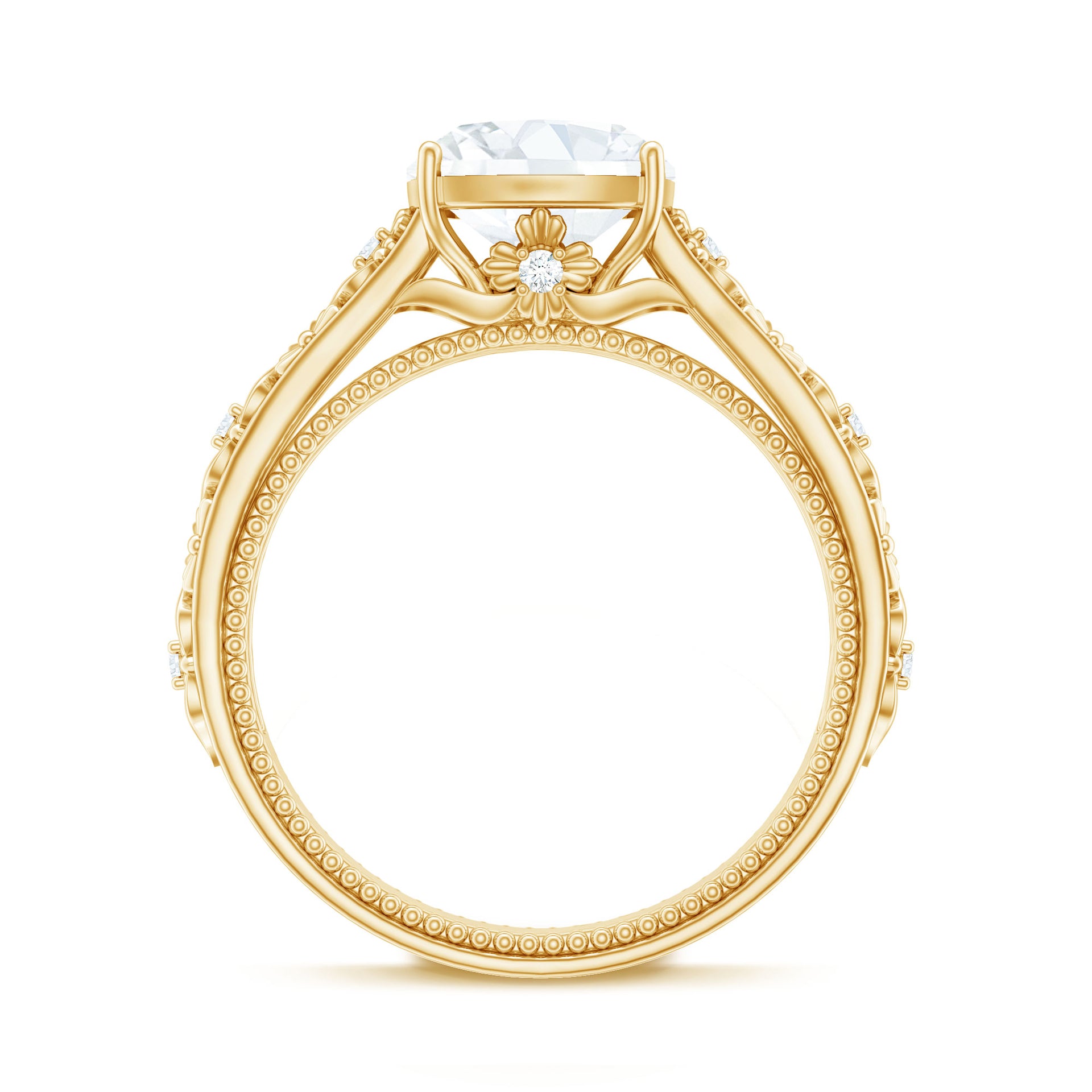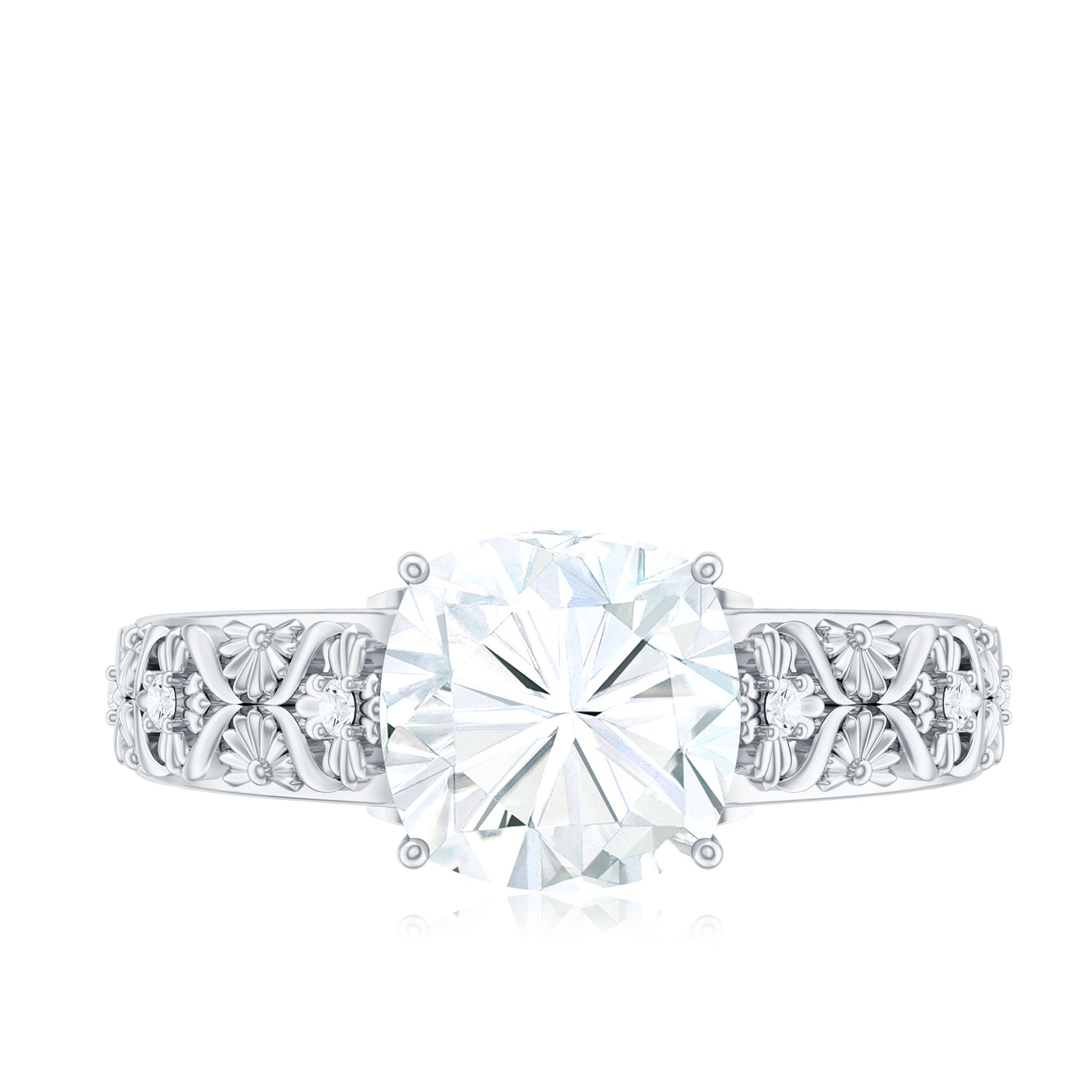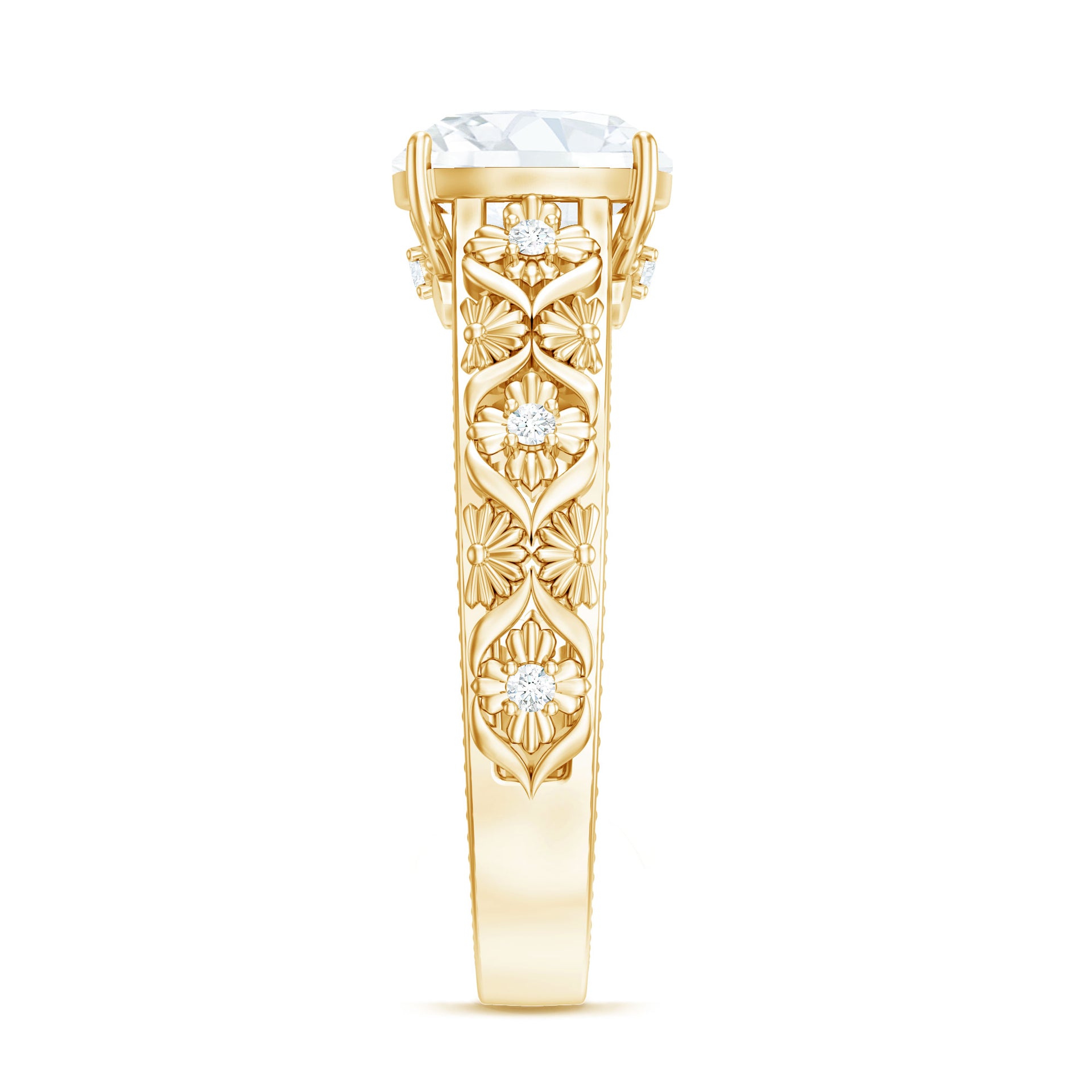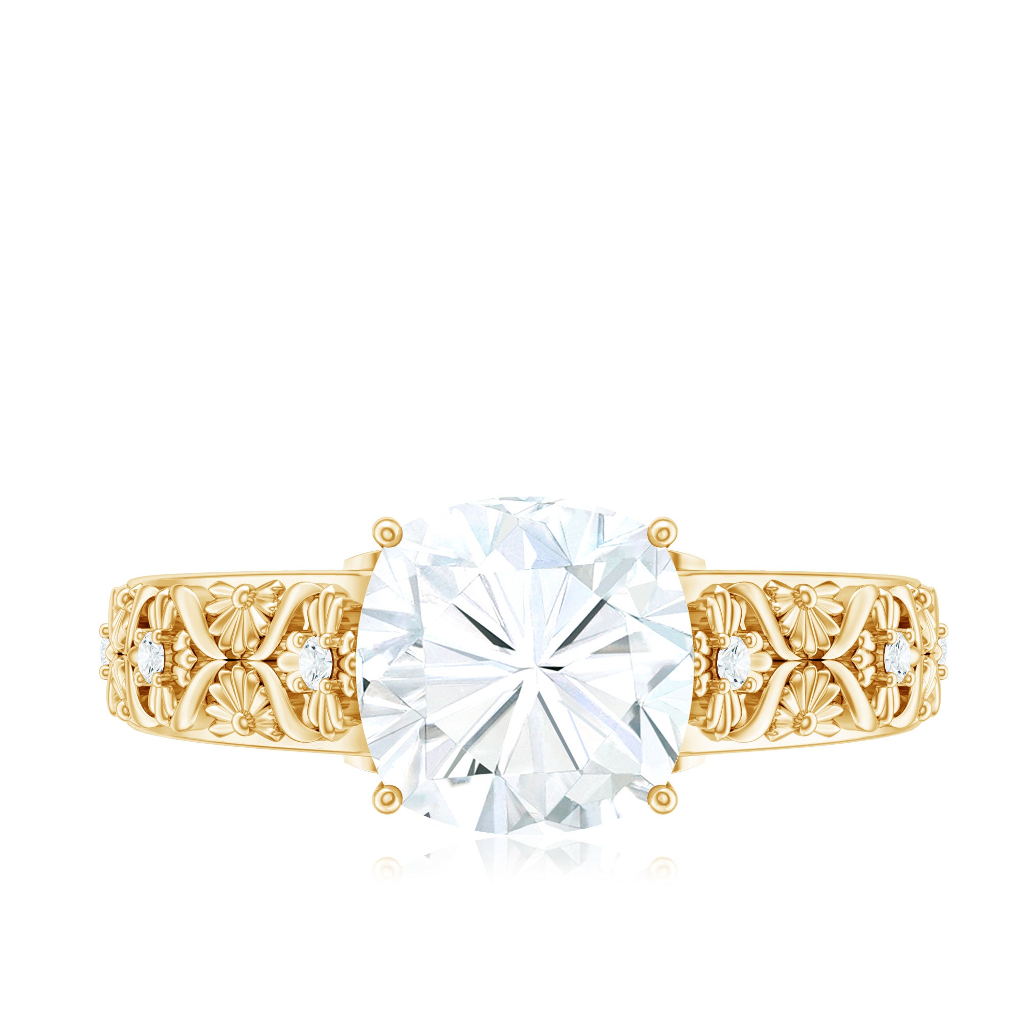 Cushion Cut Solitaire Zircon Gold Floral Engagement Ring