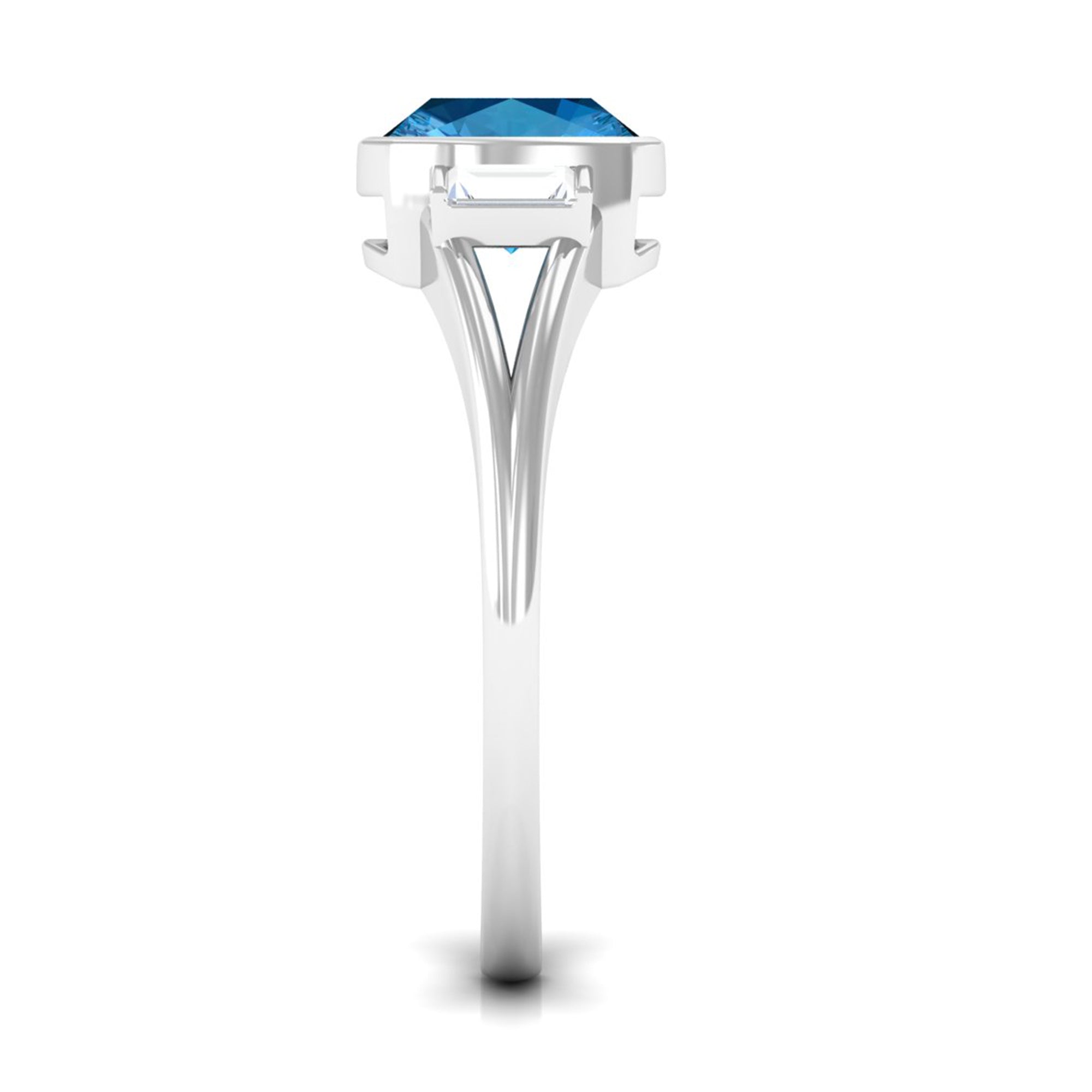 Cushion Cut Swiss Blue Topaz Solitaire Ring with Diamond in Split Shank