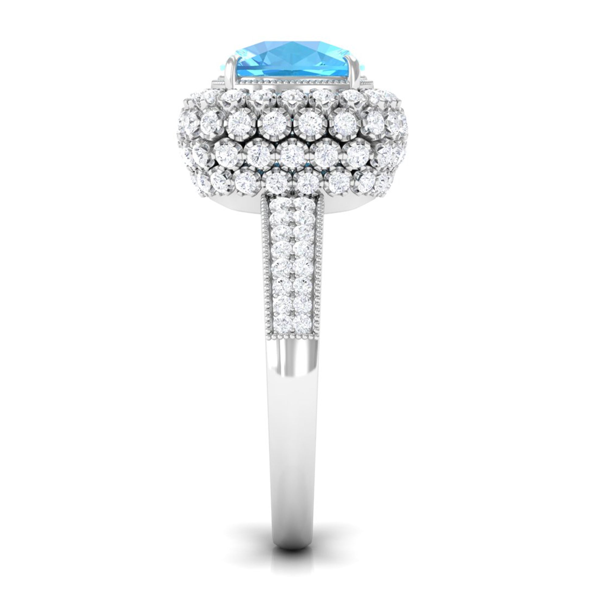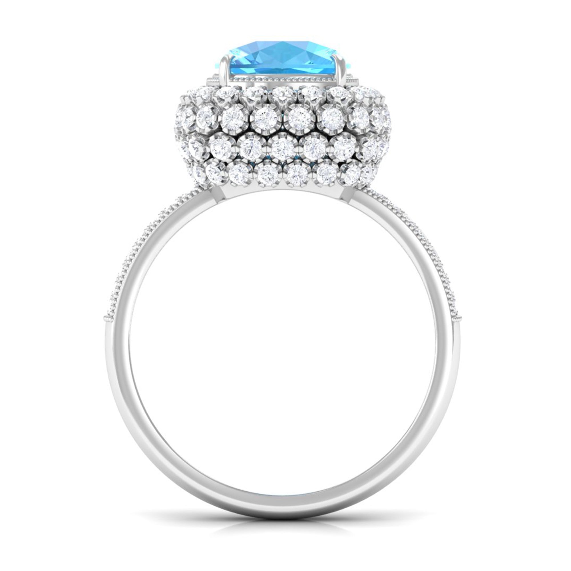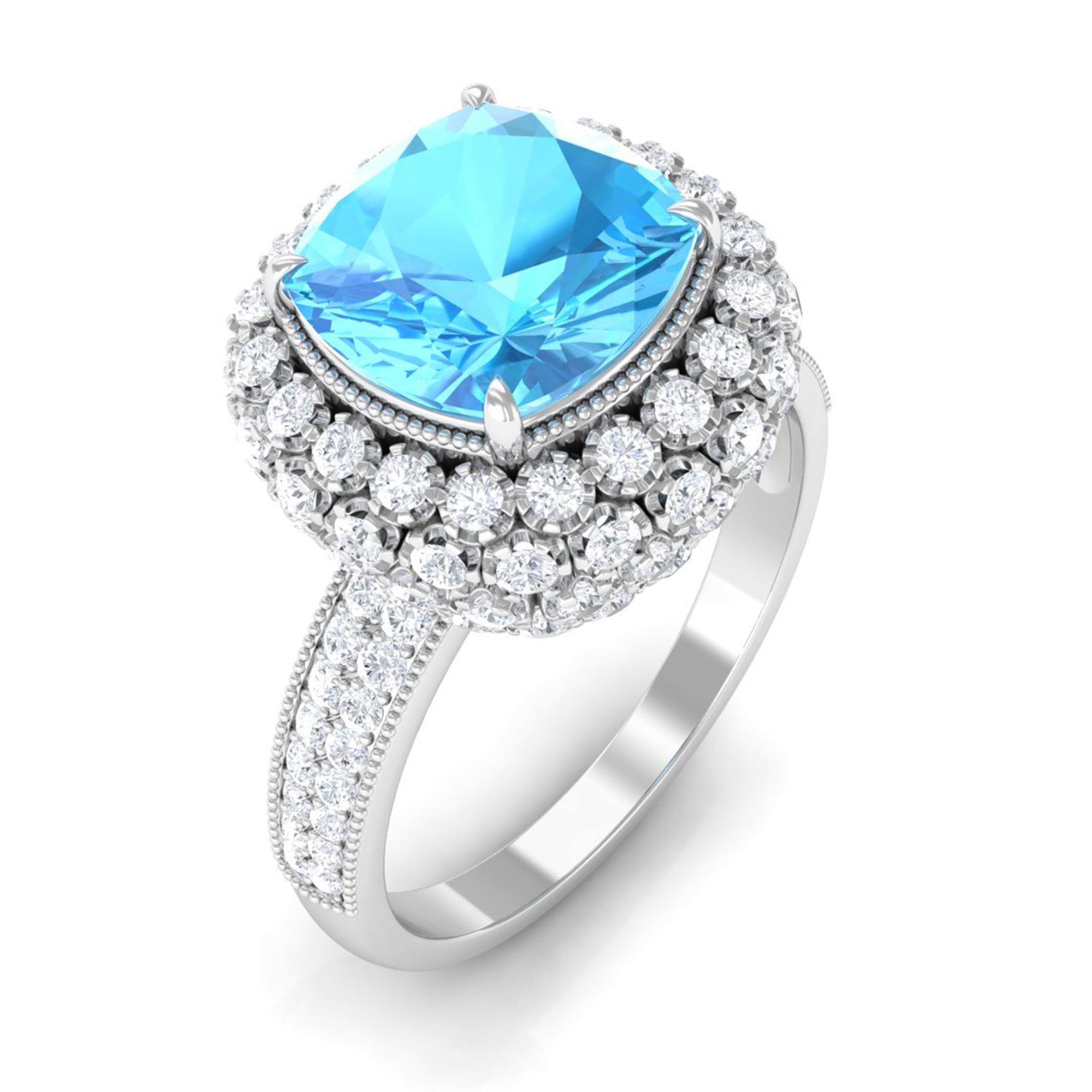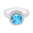 Cushion Cut Swiss Blue Topaz Statement Engagement Ring with Moissanite