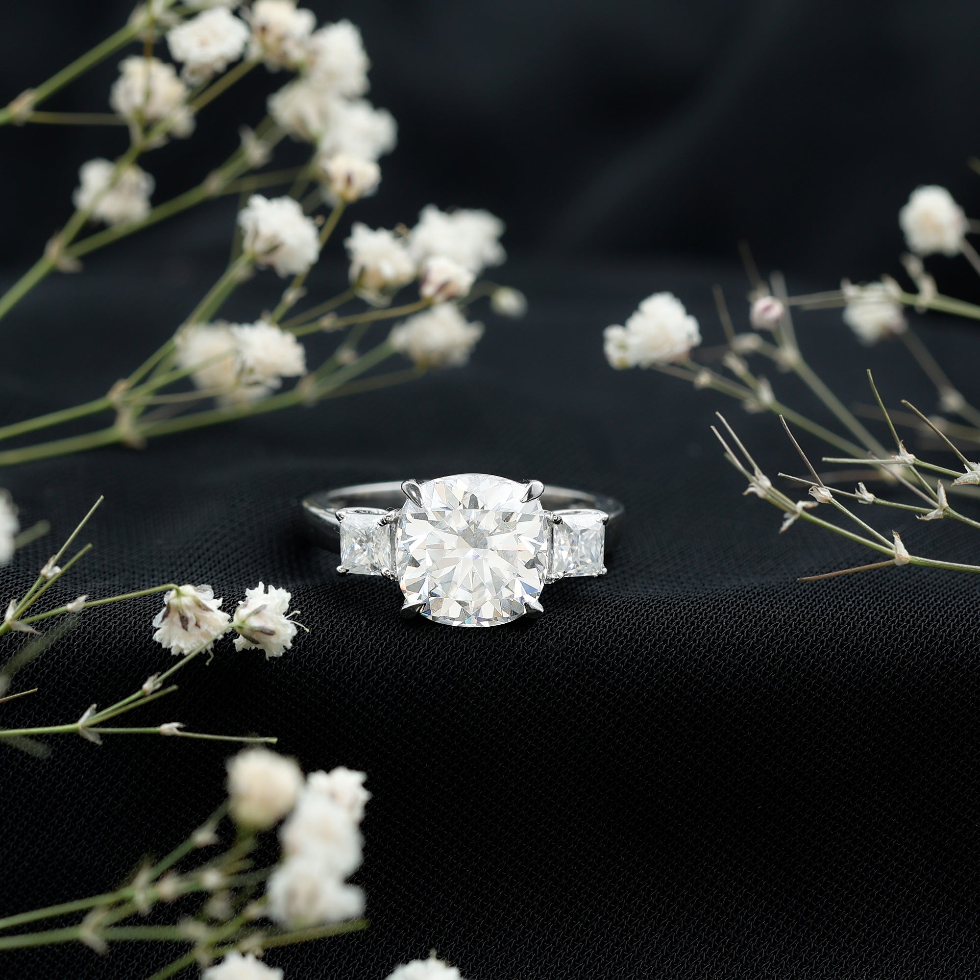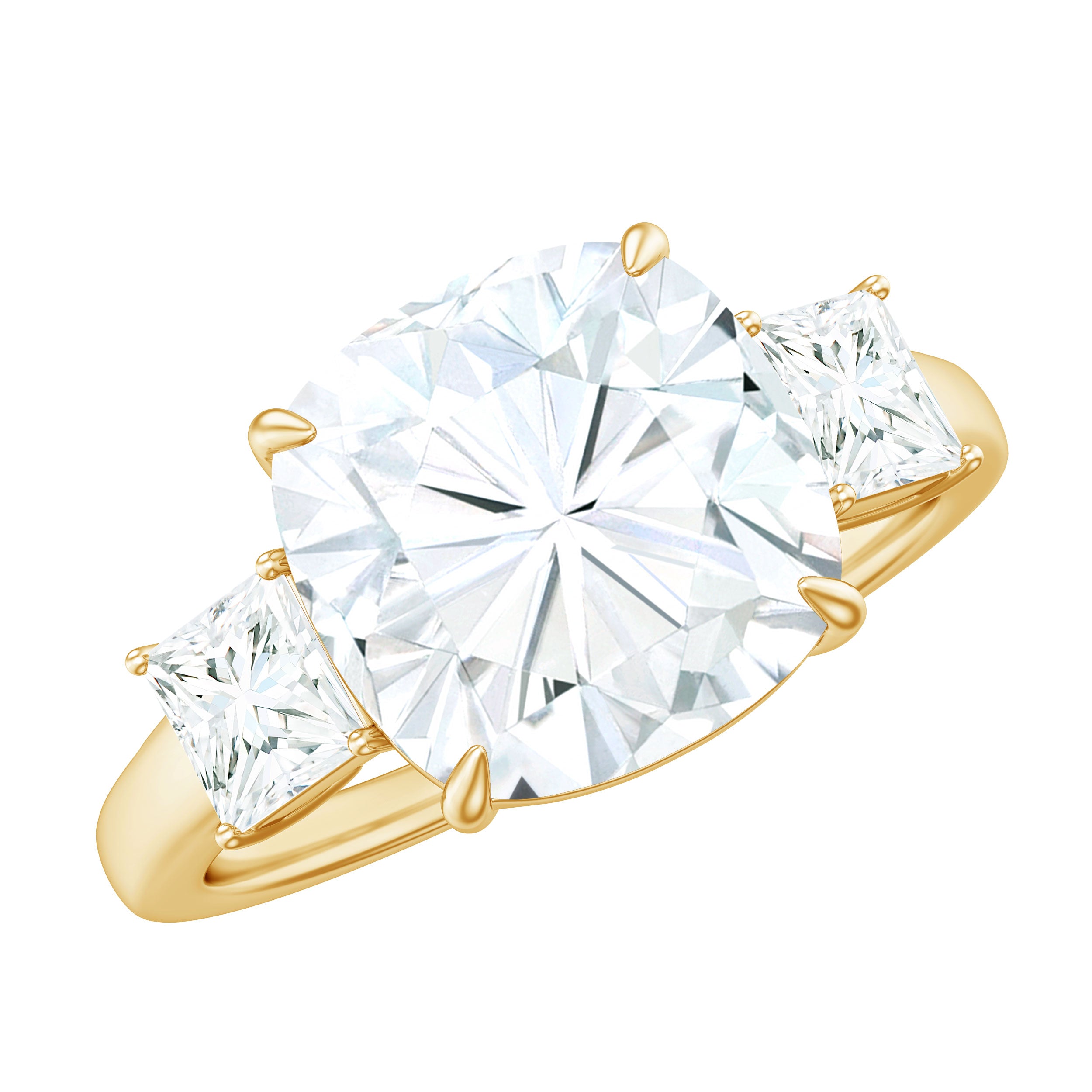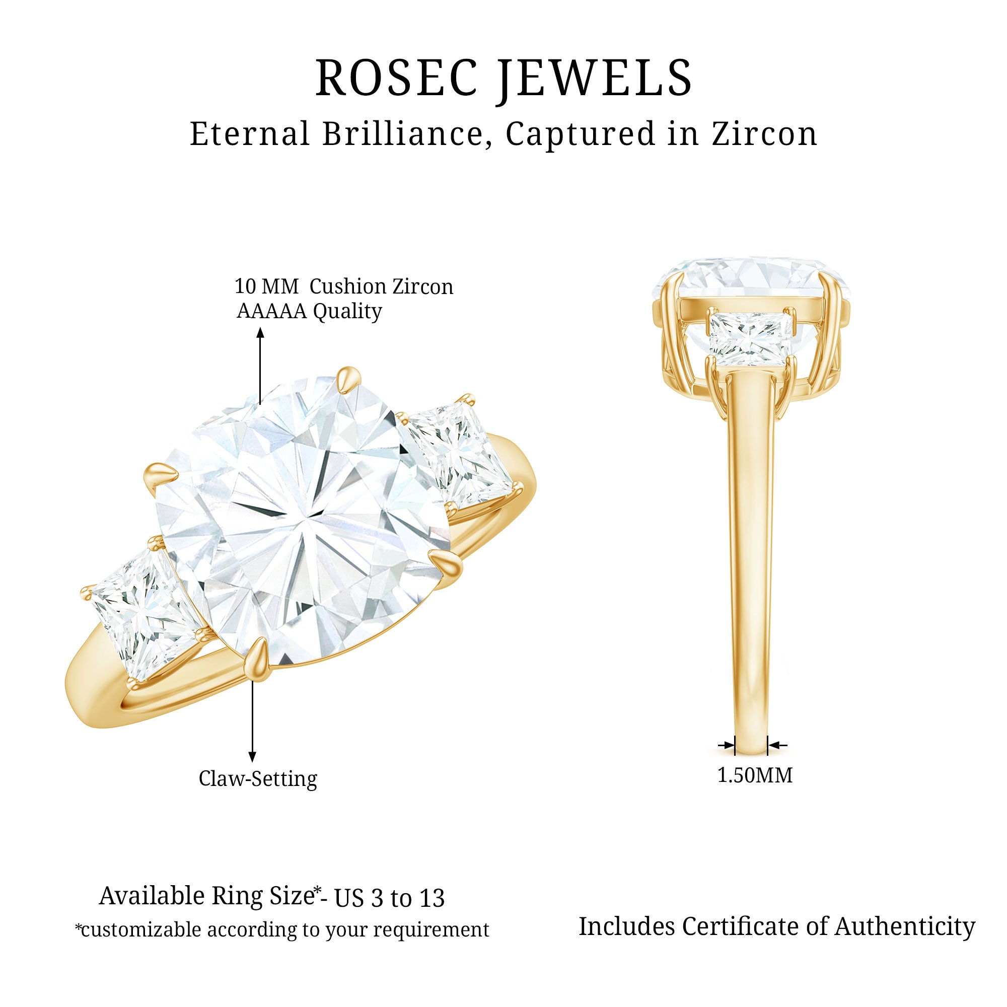 Cushion Cut Zircon Solitaire Engagement Ring with Side Stones