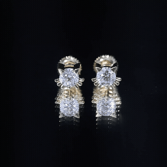 Cute Cat Stud Earrings with Lab Grown Diamond