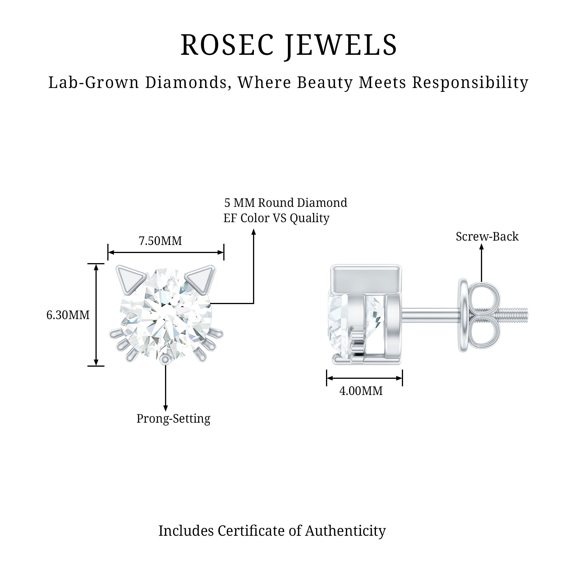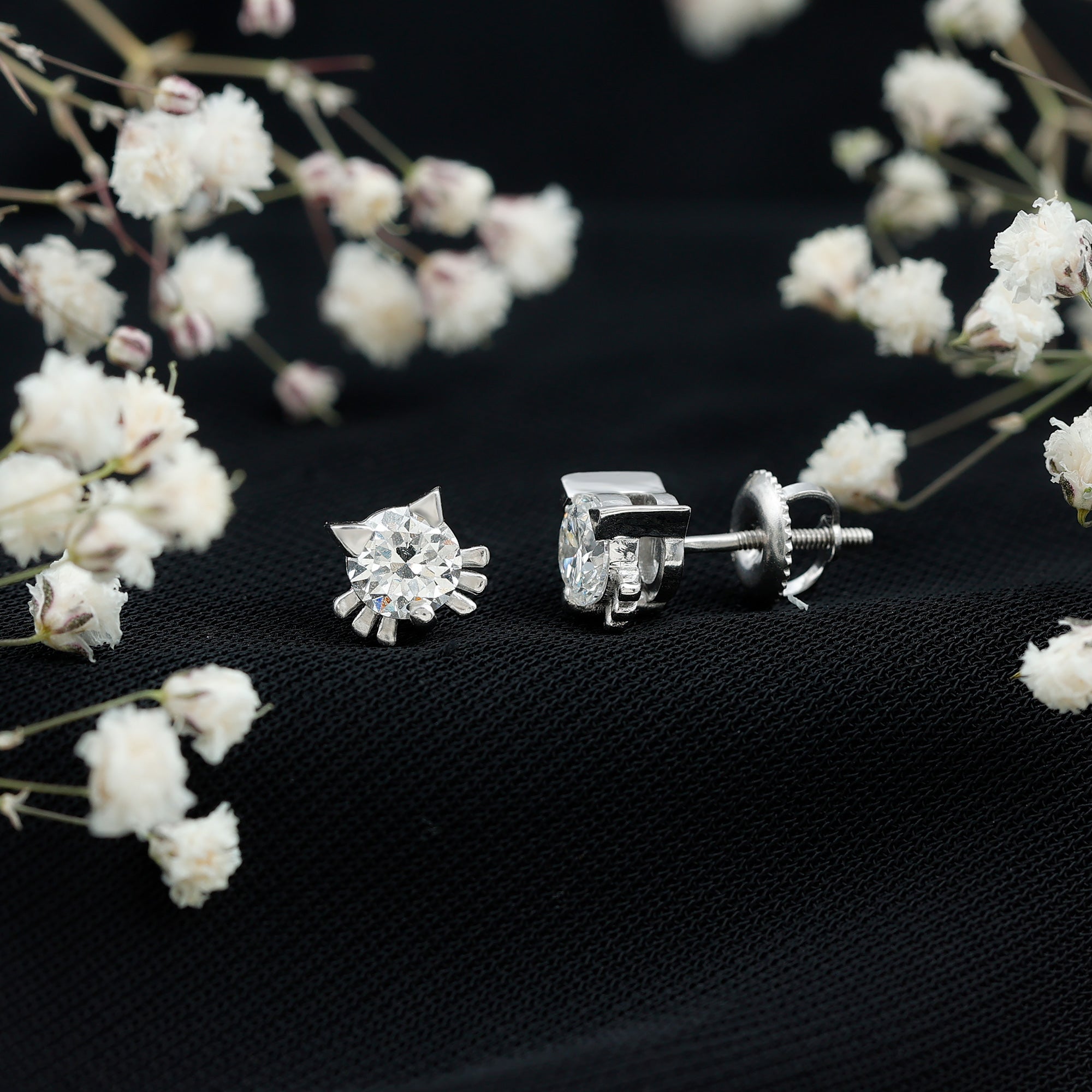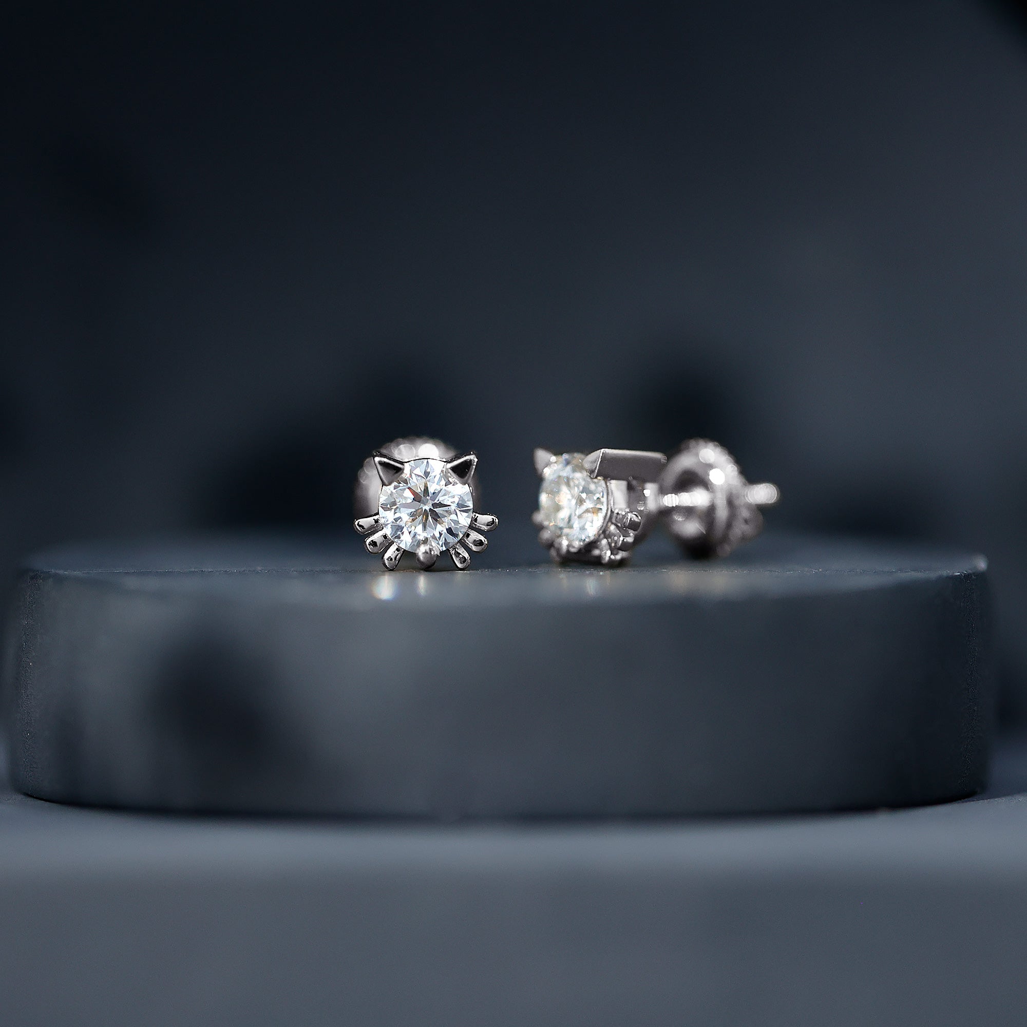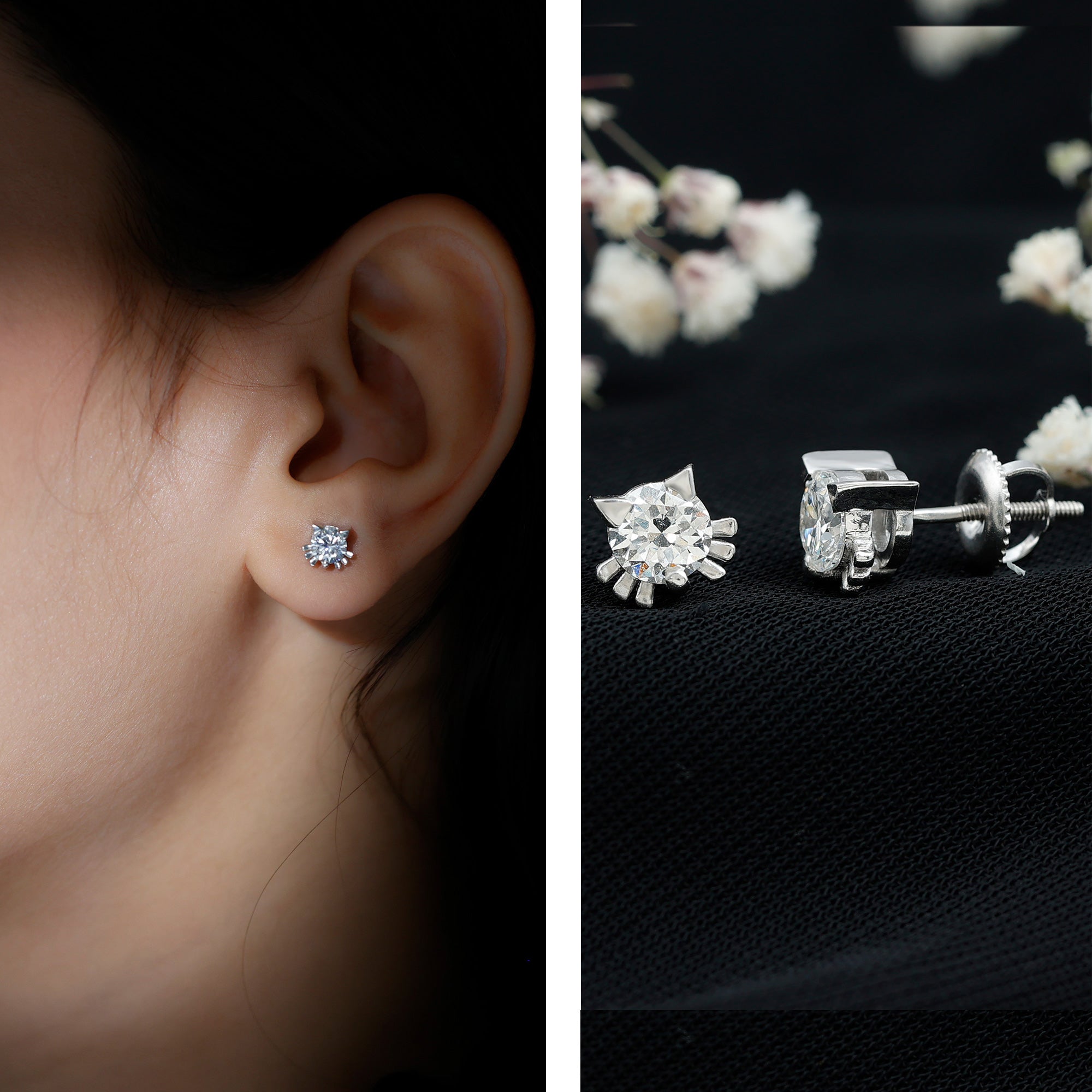 Add a touch of playfulness to your style with these adorable Cat Stud Earrings adorned with a 5 MM Round Shape Lab Grown Diamond gemstone set in Prong Setting. These Kitty Stud Earrings feature ears and whiskers for a touch of feline grace. Secured with Screw Back Closure, these Lab Grown Diamond Earrings are also a perfect Birthday Gift for your daughter. Perfect for anyone who loves cats or enjoys cute accessories, these Diamond Stud Earrings add a playful touch to any look. Their sweet design brings out your fun side and makes everyday outfits feel a little more special. Light and comfortable, they are easy to wear from morning to night. They also make a thoughtful gift for a cat-loving friend, offering a simple way to celebrate their love for furry companions. Designed with care, the Cute Stud Earrings stand out for their charm without being too bold. Cute, meaningful, and full of personality, these earrings are a delightful addition to any jewelry collection.