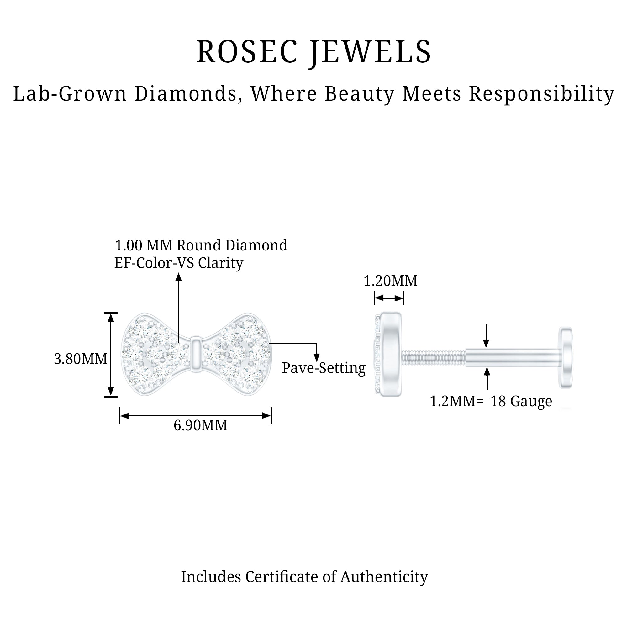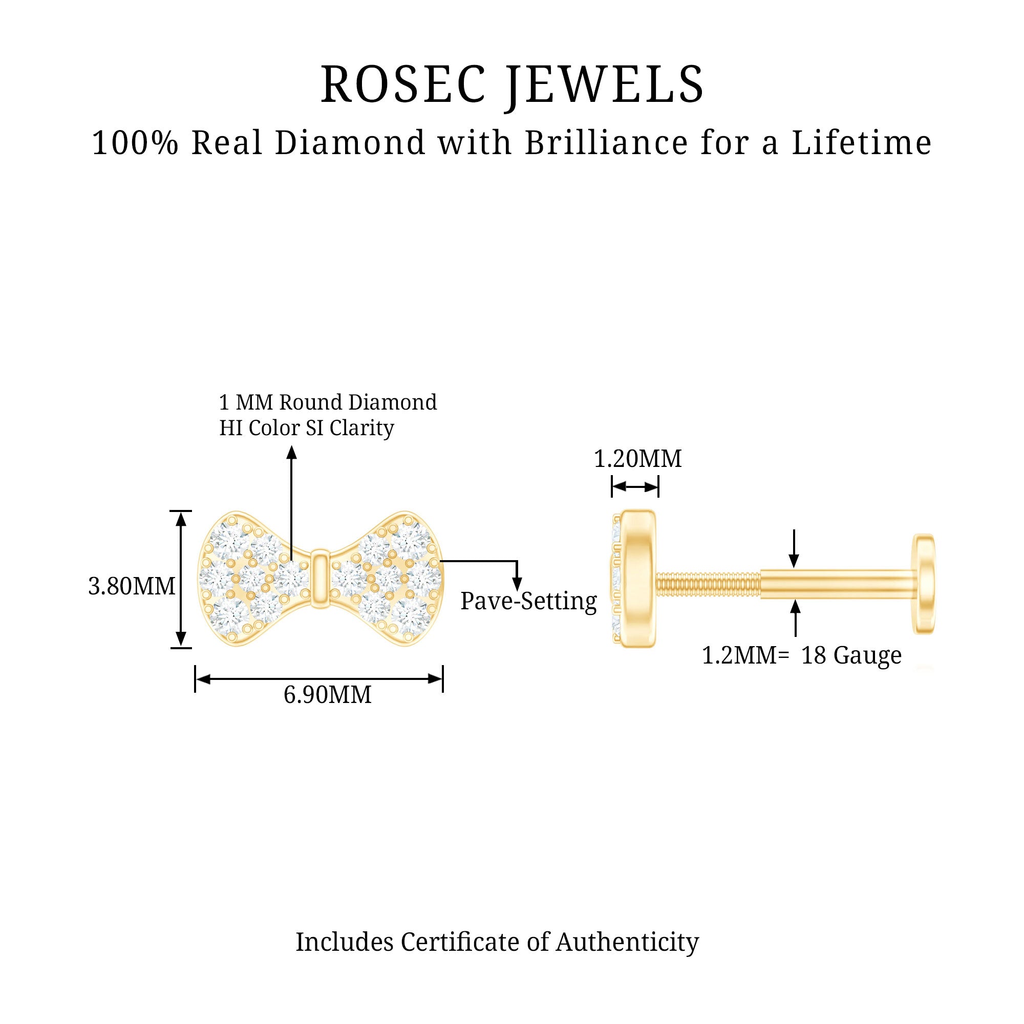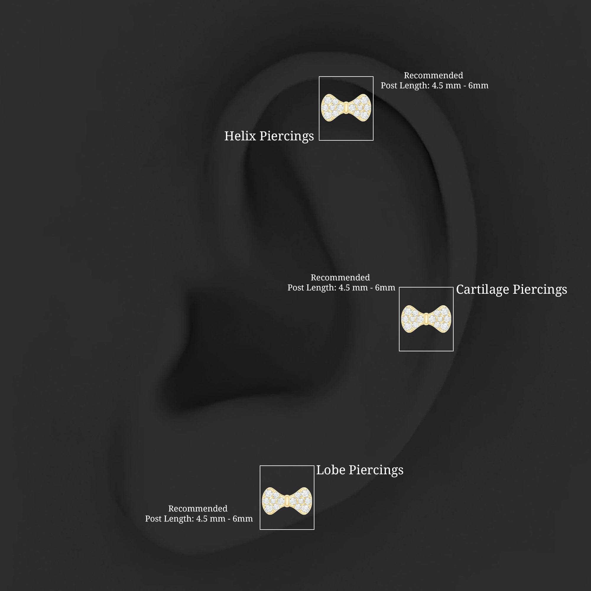 Cannot get over the cuteness of this Diamond Bow Earring. If you have enough room to stack a new piercing earring, then this will be your go-to earring. This Earring features dainty Round Diamonds secured by Pave Setting on an adorable bow design. It can be paired with an array of ensembles to add a splash of fun. You can wear this stunning earring on your multiple piercings like Tragus, Helix, Cartilage, or Upper Lobe.So, grab this Diamond Earring for your special ones as a Birthday Gift, Anniversary Gift, Graduation Gift, or Christmas Gift.