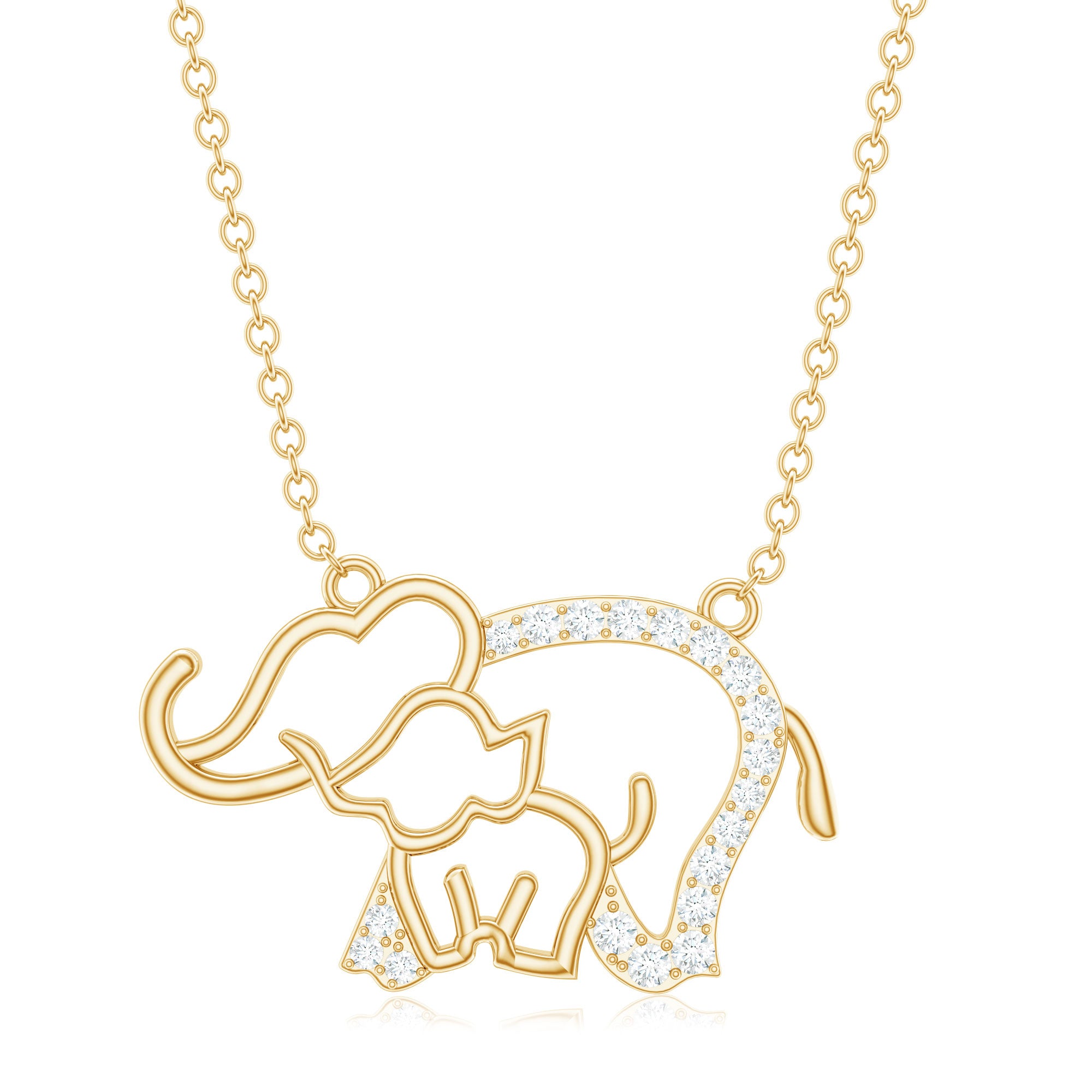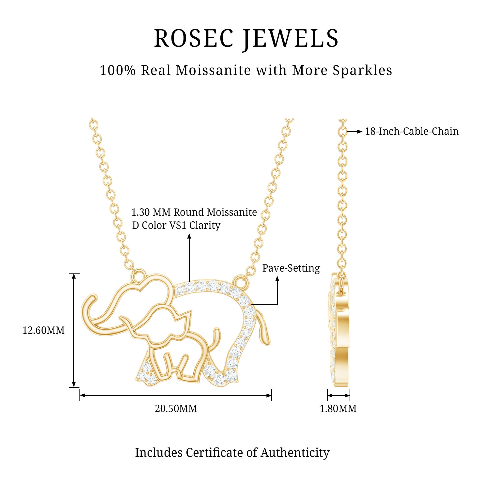 Rosec Jewels Cute Elephant Necklace beautifully represents the special bond between a mother and child. It features an outline of a mama and baby elephant in a heartwarming design with a row of shimmering round moissanite stones, adding a touch of sparkle. Style yourself with the sparkling beauty of this Moissanite Necklace and shine with confidence. This Cute Necklace makes a thoughtful and heartfelt gift for Mothers Day, as it embodies everything a mother represents - love, protection, and devotion. Whether you are celebrating a new mom, honoring your own, or expressing gratitude to someone who is like your mother, this piece serves as a lasting reminder of the love you share.
