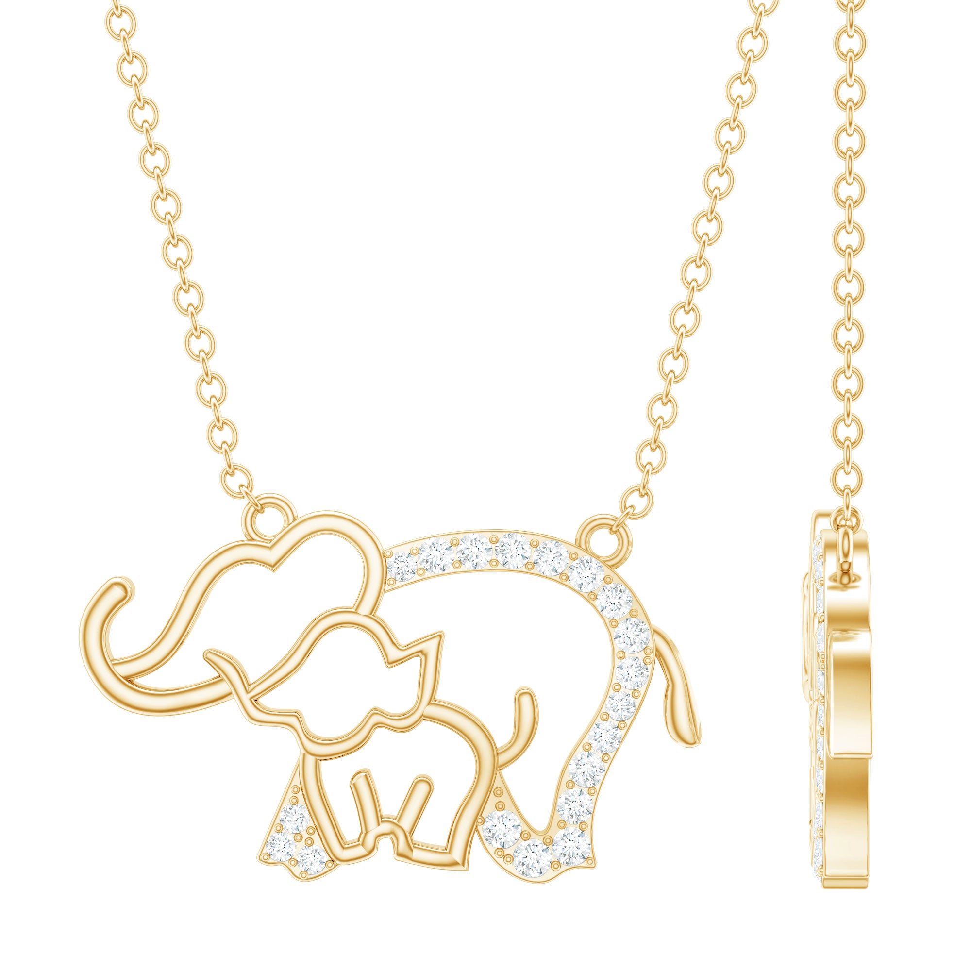 Cute Mother and Baby Elephant Necklace with Moissanite