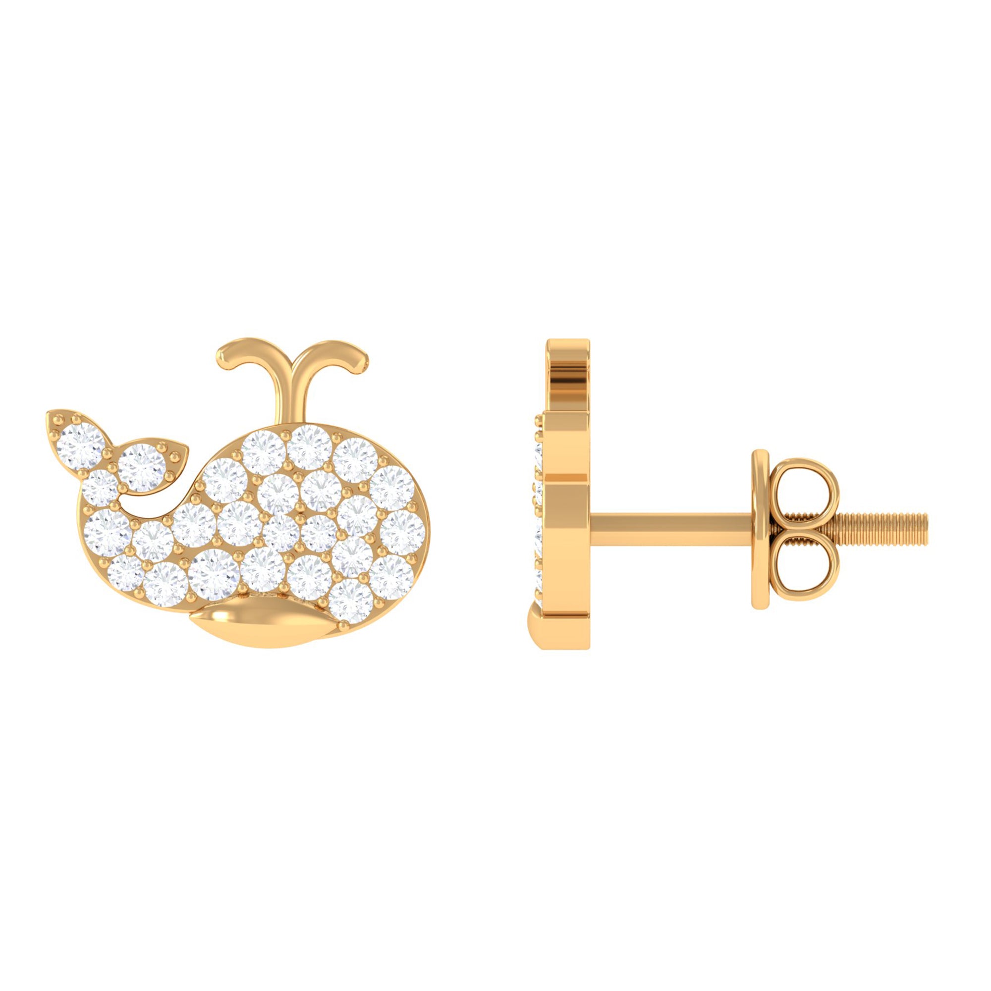 Cute Whale Gold Stud Earrings with Certified Moissanite