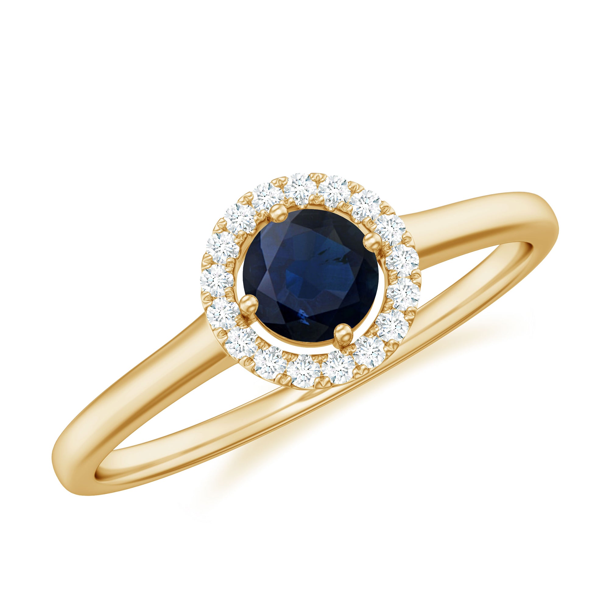 True feminine design to adorn you Solitaire Halo Ring. A gigantic Brilliant Round Blue Sapphire is set in the Prong Setting and to enhance the look petite Tiny Round Diamond are engraved in the Floating Halo Setting. Propose her with the sparkling Floating Halo Ring.