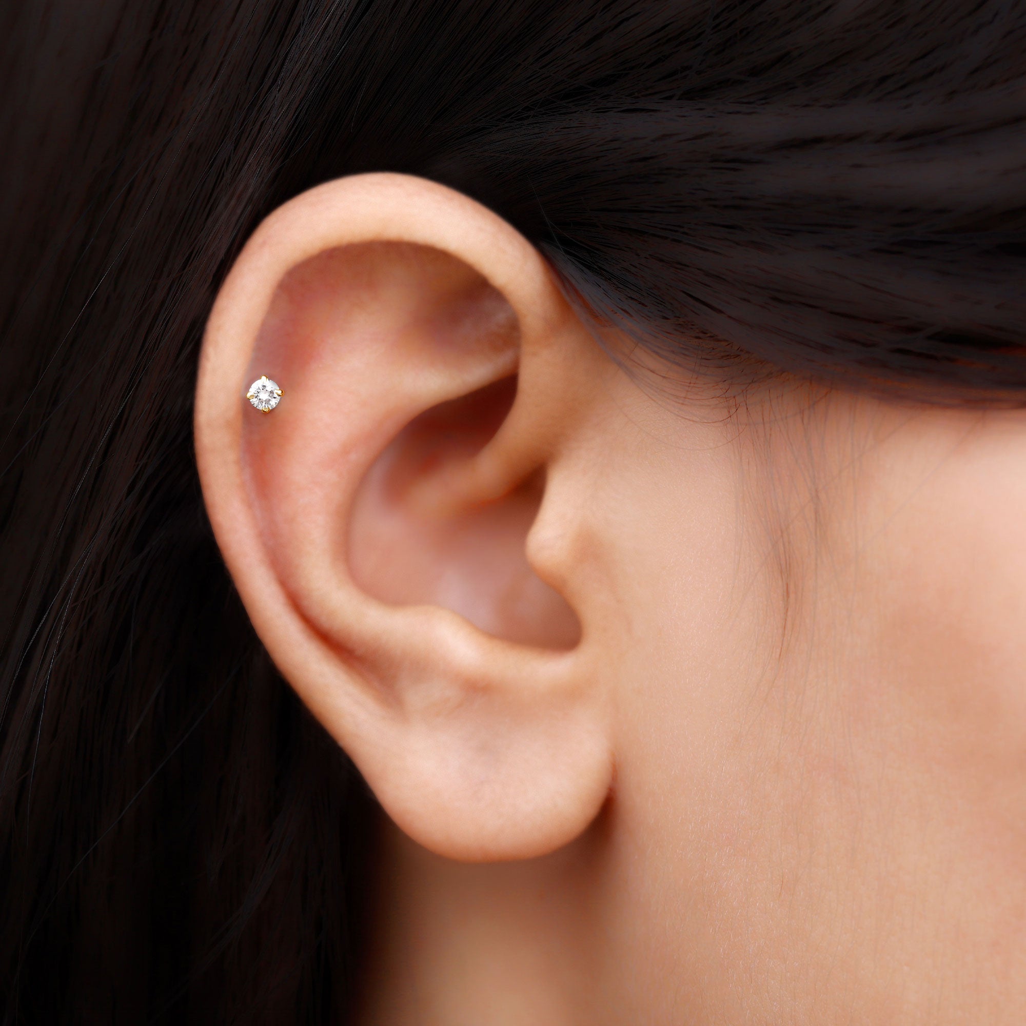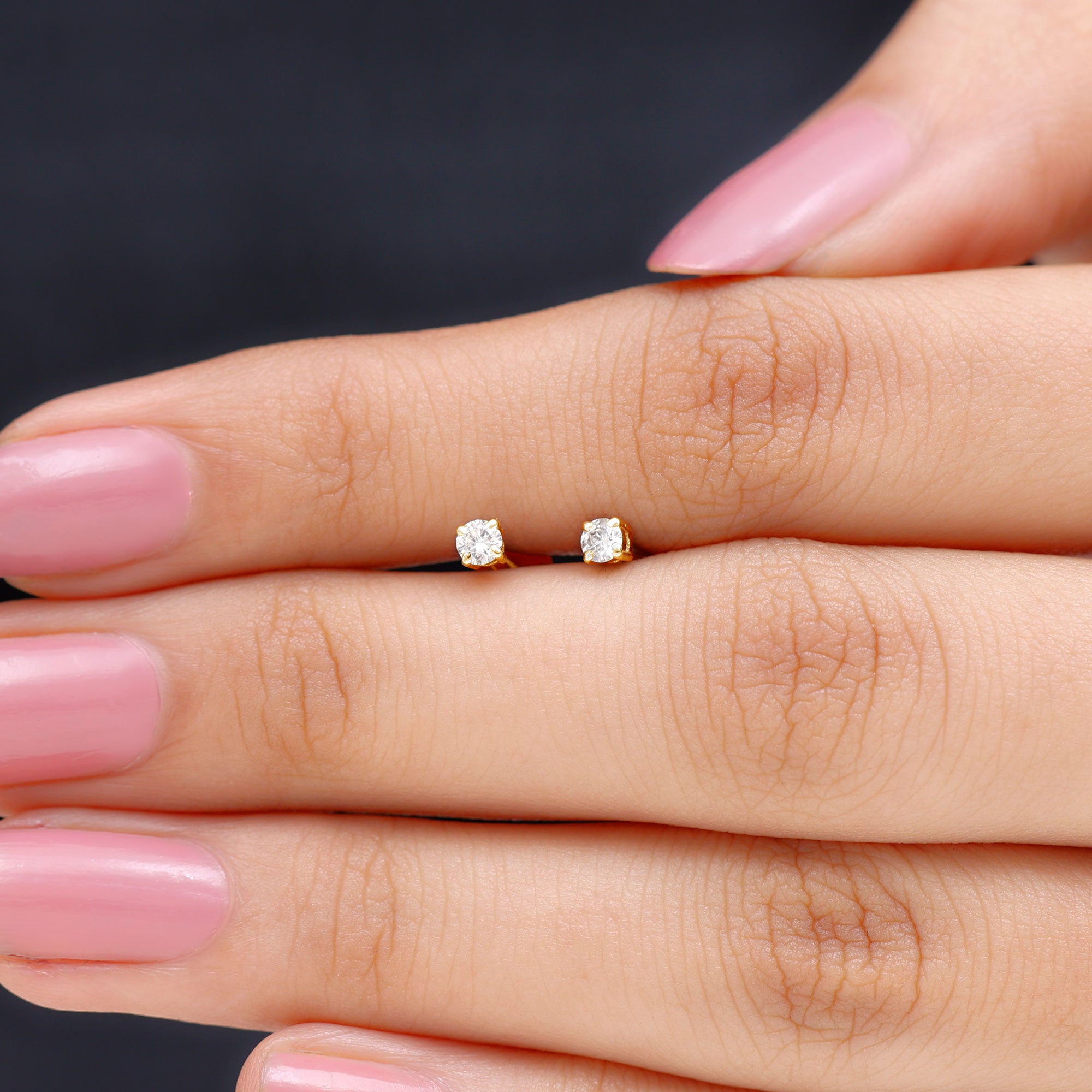 The Solitaire Earrings are a pair youll wear often as they will complement all your casual, formal, and special attires with ease. The Simple Stud Earrings showcase a Round Shape Diamond set in a 4 Prong setting and crafted with Hallmarked Metal. Add eye-catching interest to any look by flaunting these Stud Earrings that secure comfortably with screw-backs. Celebrate the auspicious occasion of her graduation by getting these precious Diamond Earrings as a graduation gift for her.