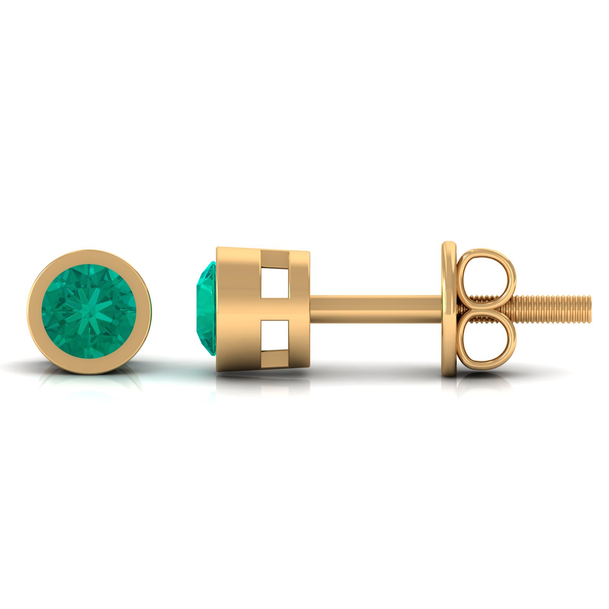 Dainty Emerald Bezel Set Solitaire Stud Earrings