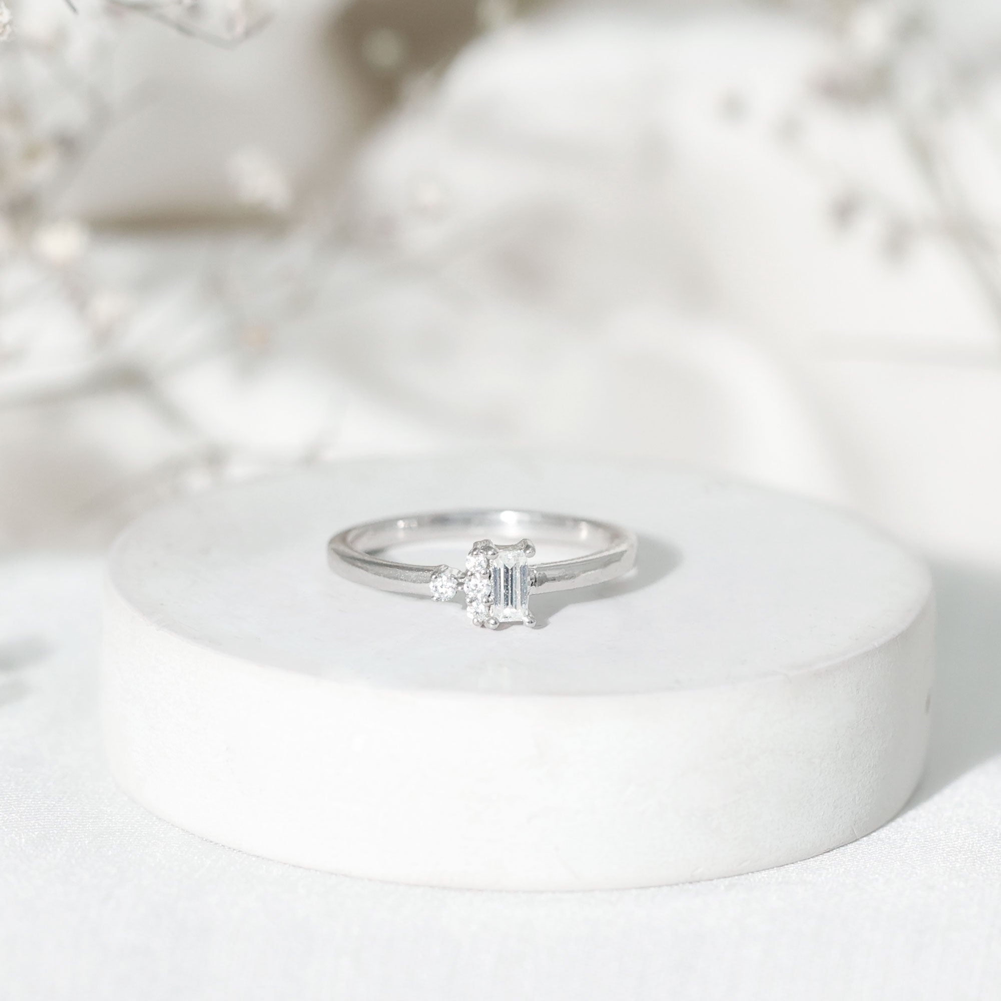 Celebrate your affection with our Dainty Promise Ring, featuring a graceful fusion of Baguette and Round Moissanite gemstones. Set in a prong setting, these shimmering stones create an enchanting visual. With elegant simplicity, this moissanite ring embodies the promise of love and devotion.