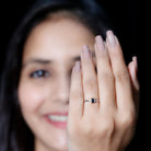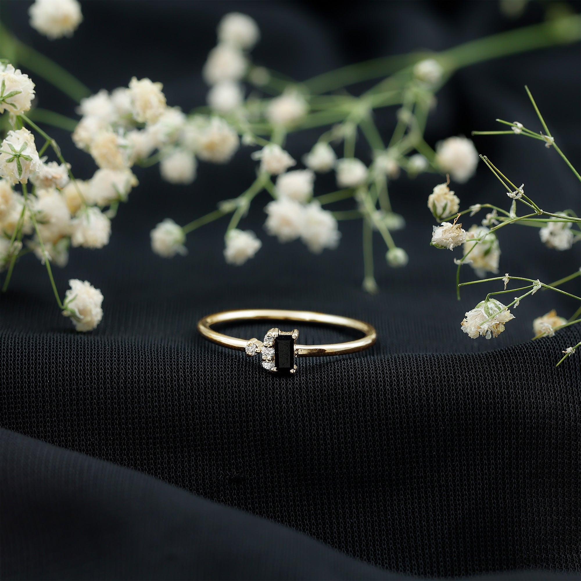 Solidify your eternal commitment with this Dainty Promise Ring. Enhanced with Baguette Cut Black Spinel and Round Diamond stones on one side, expertly nestled within a secure Prong Setting, this Enchanting Promise Ring radiates grace.
