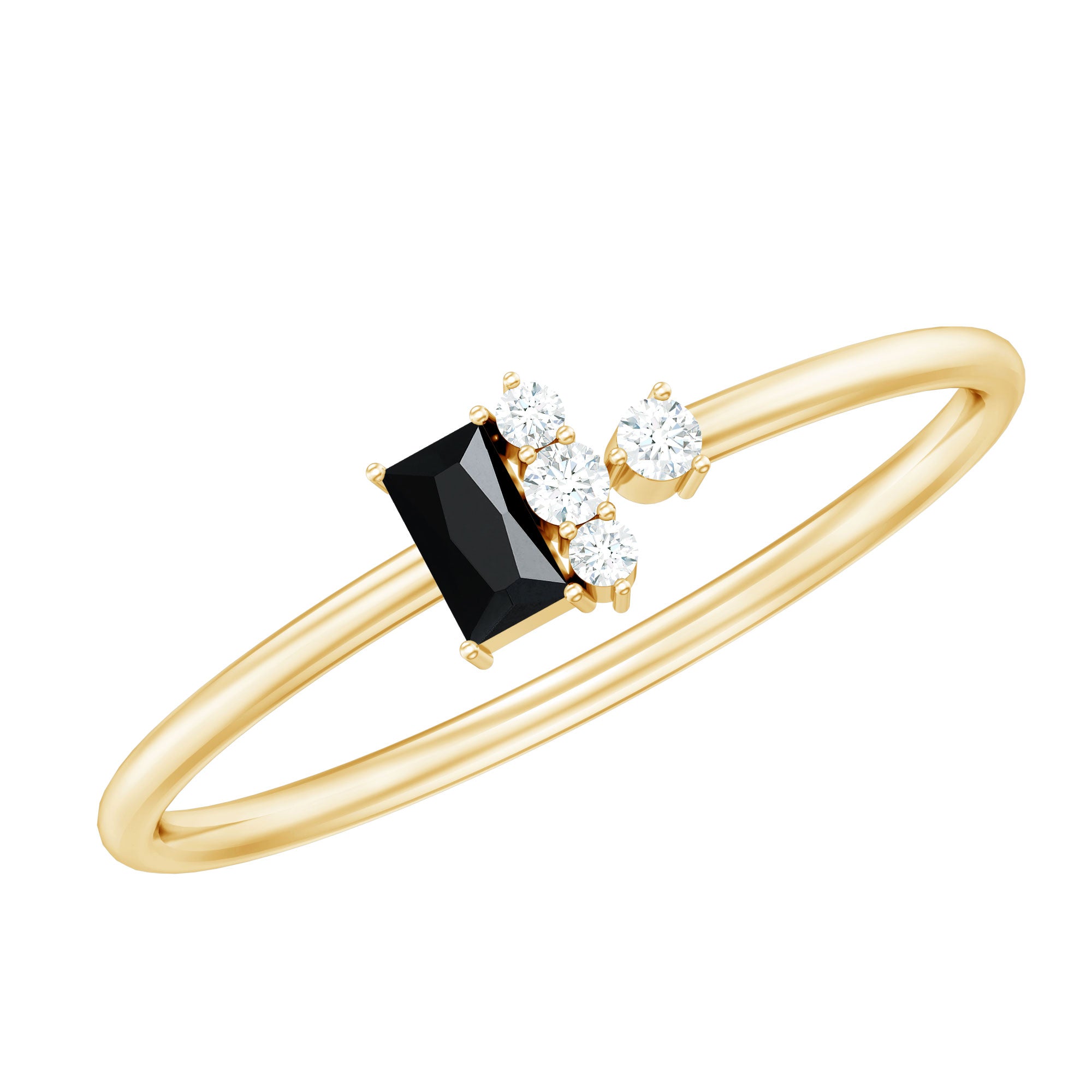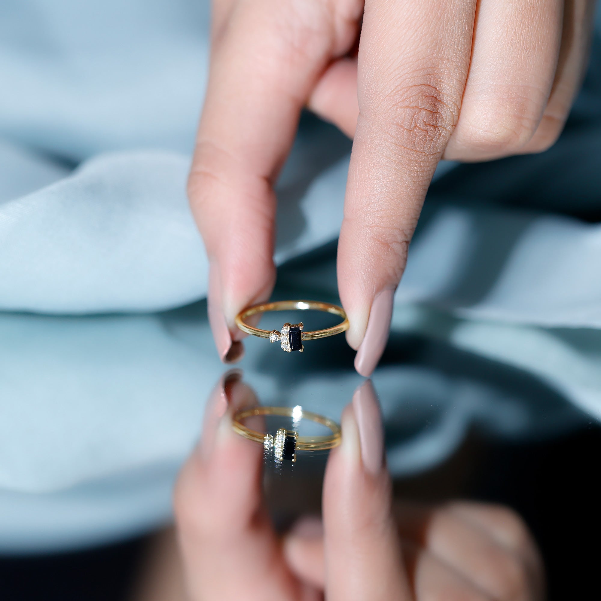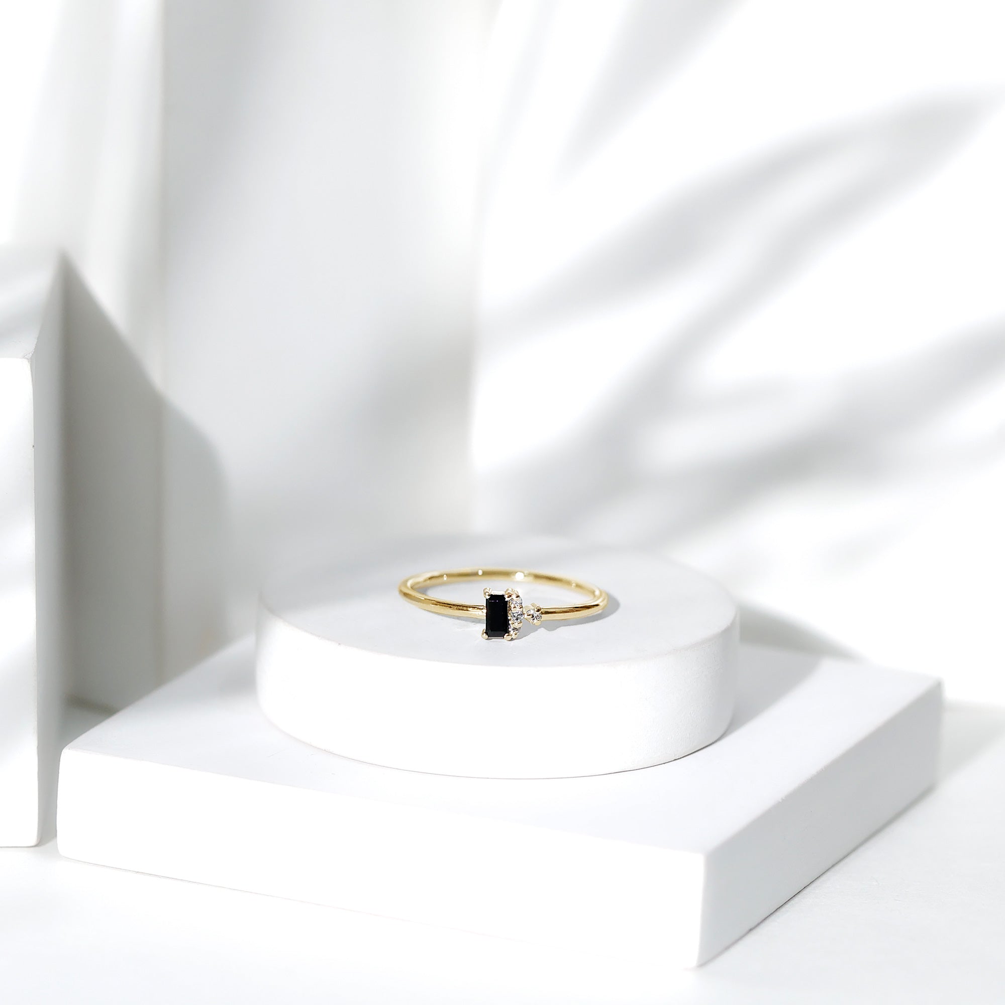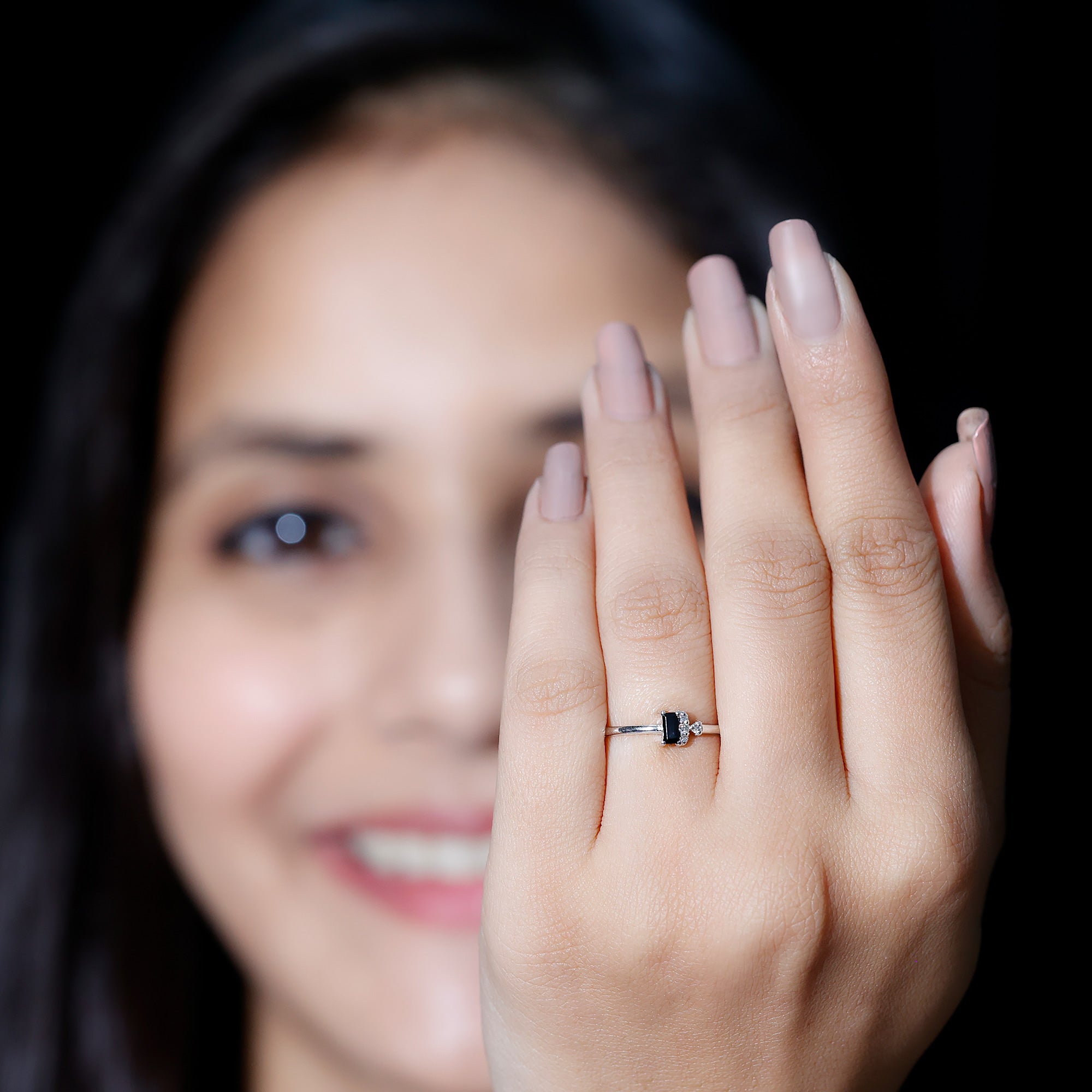 Dainty Promise Ring with Octagon Cut Black Spinel and Diamond