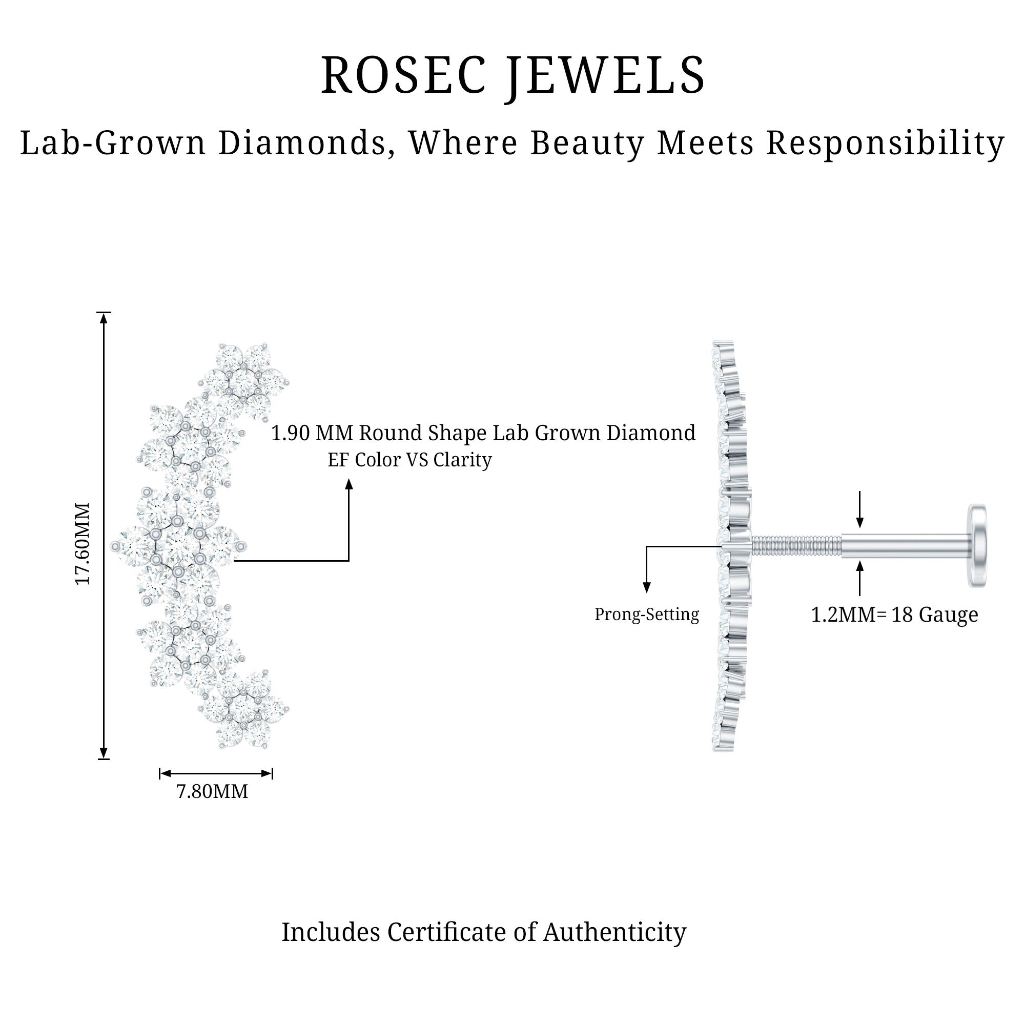 This Diamond Flower Crawler Earring is all you need to elevate your ear stack. Featuring round shape diamonds all assembled in a floral design, crafted in solid metal.
