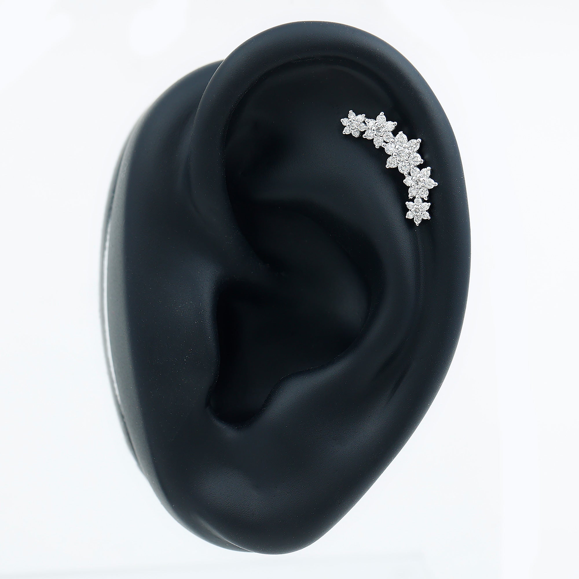 • You can simply adorn your helix, cartilage, or upper lobe piercing with this Flower Climber Earring. The flat back closure will keep it intact in place.