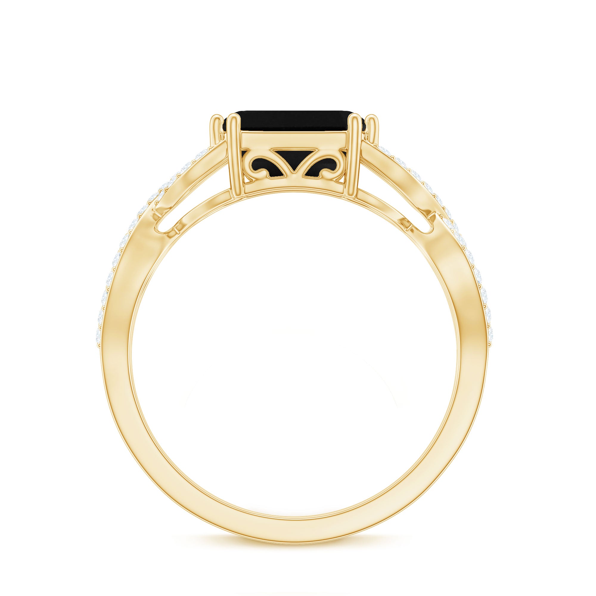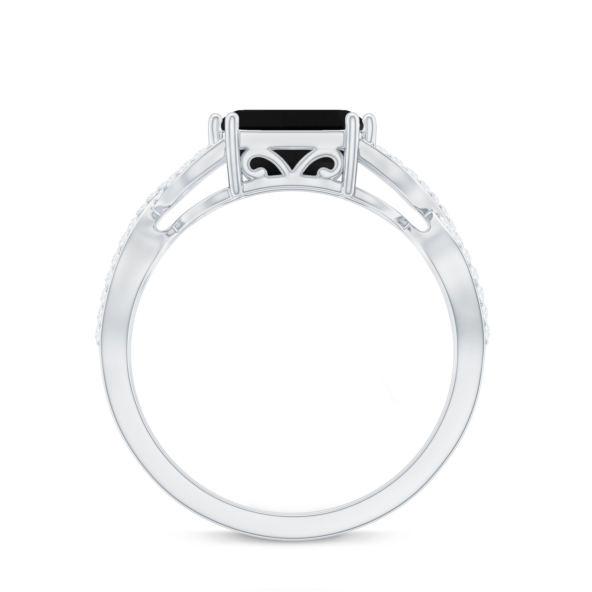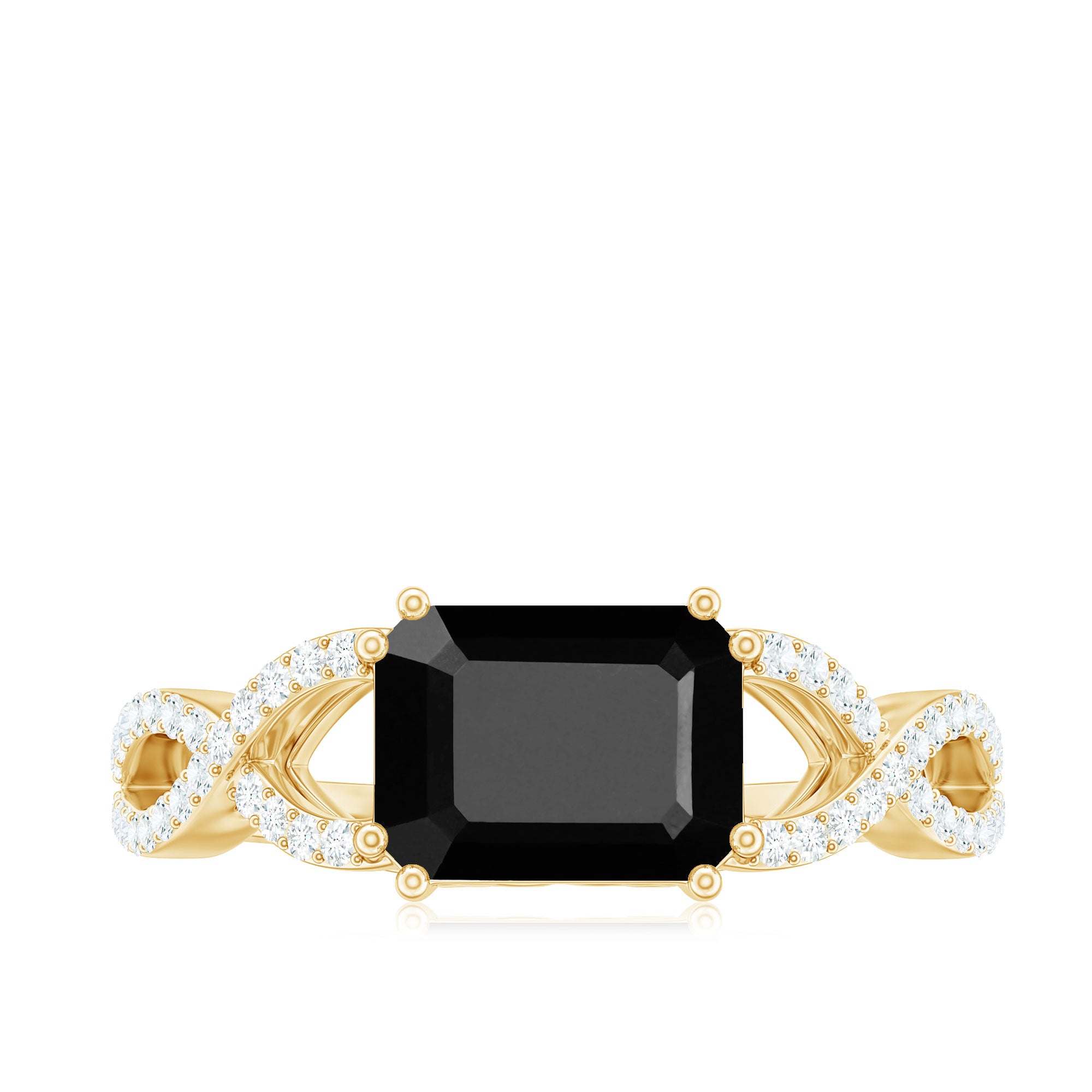 Timeless style meets deep meaning in this beautifully crafted Black Onyx Engagement Ring, created for those who appreciate elegance with a modern edge. Designed with care and intention, the Crossover Ring features a striking 6X8 MM emerald cut black onyx, set horizontally in an east west style. The unique placement adds a fresh twist to a traditional look, while the secure double prong setting keeps the center stone perfectly in place. The band curves gracefully in a crossover design, set with sparkling round cut diamonds that catch the light from every direction. This flowing design represents two lives joining as one, a symbol of connection and unity. Each element of the Onyx and Diamond Engagement Ring is thoughtfully placed, making it a meaningful piece for life’s most special moments. Crafted with premium materials including AAA quality black onyx and HI-SI quality diamonds, the Emerald Cut East West Ring offers both beauty and durability. Its smooth design ensures a comfortable fit for everyday wear, while its eye-catching details make it a standout for special occasions. Ideal for someone with a love for subtle sophistication and bold design, this Emerald Cut Black Onyx Ring is a memorable gift that speaks from the heart.