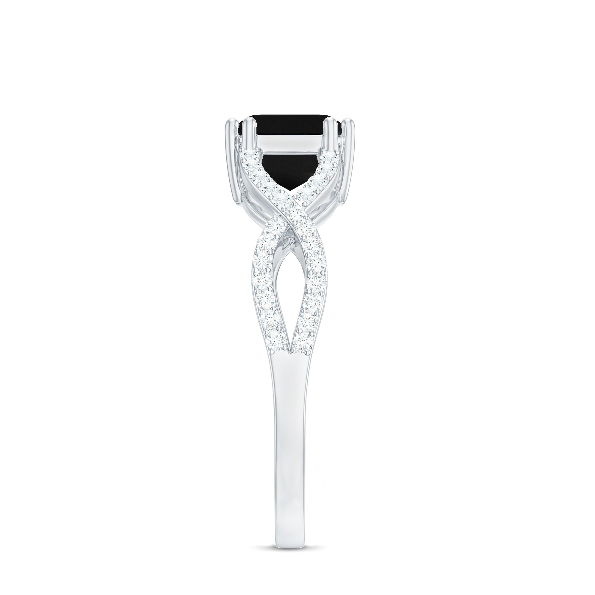 Designer Black Onyx Crossover Engagement Ring with Diamonds