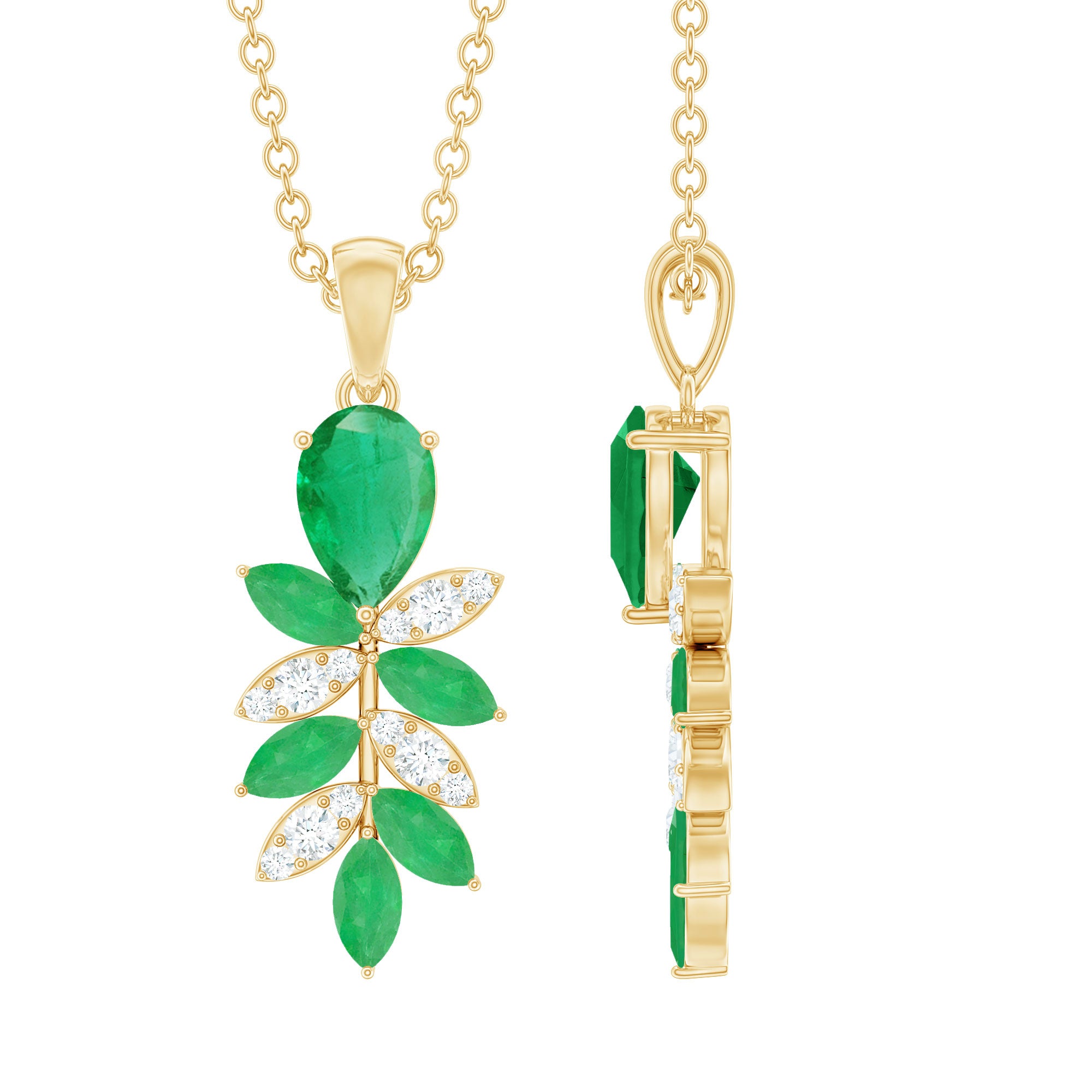 Designer Emerald and Diamond Leaf Pendant Necklace