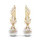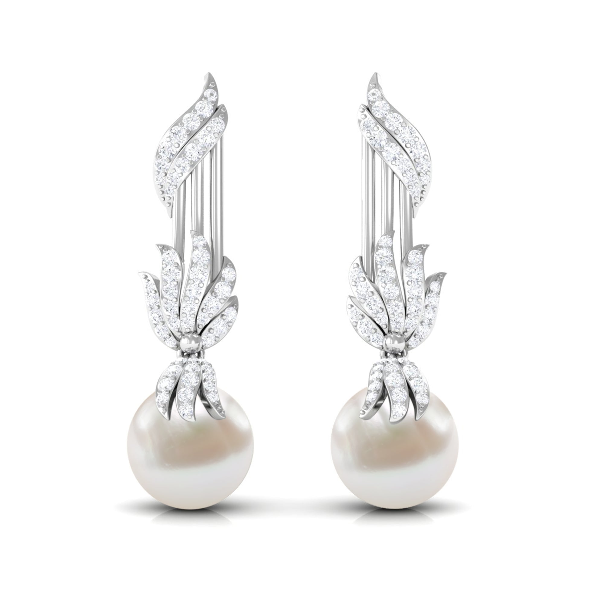 Designer Freshwater Pearl Dangle Earrings with Diamond Accent