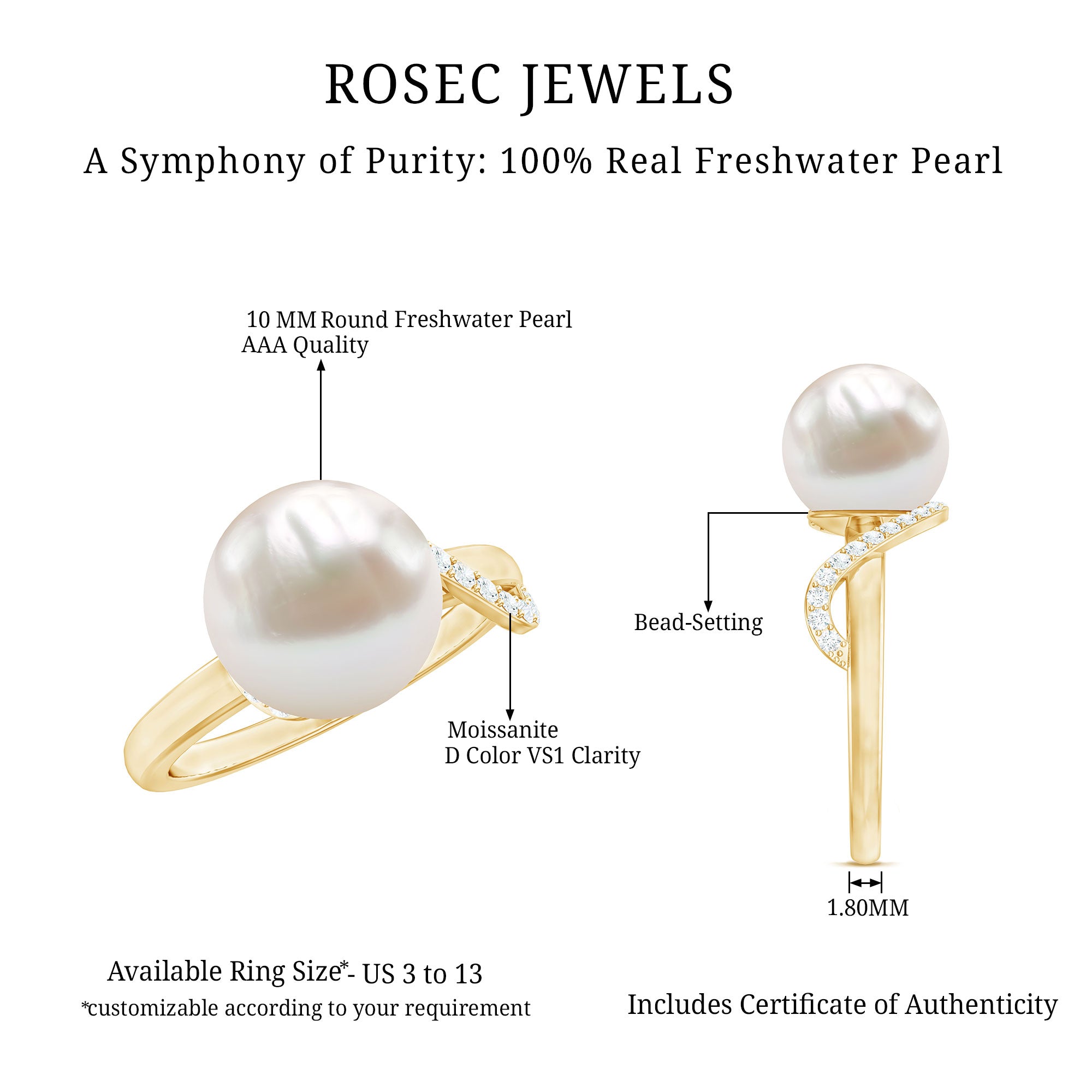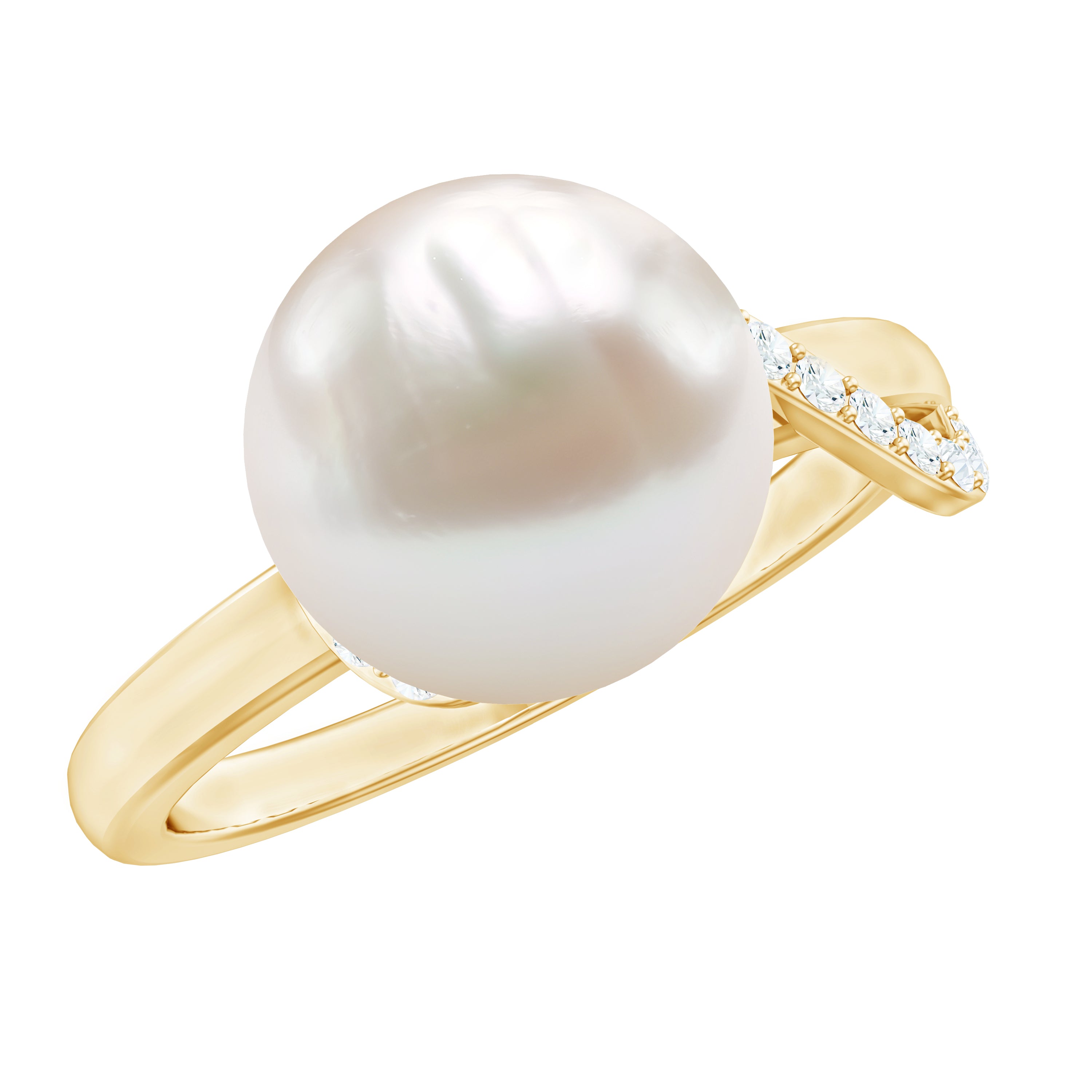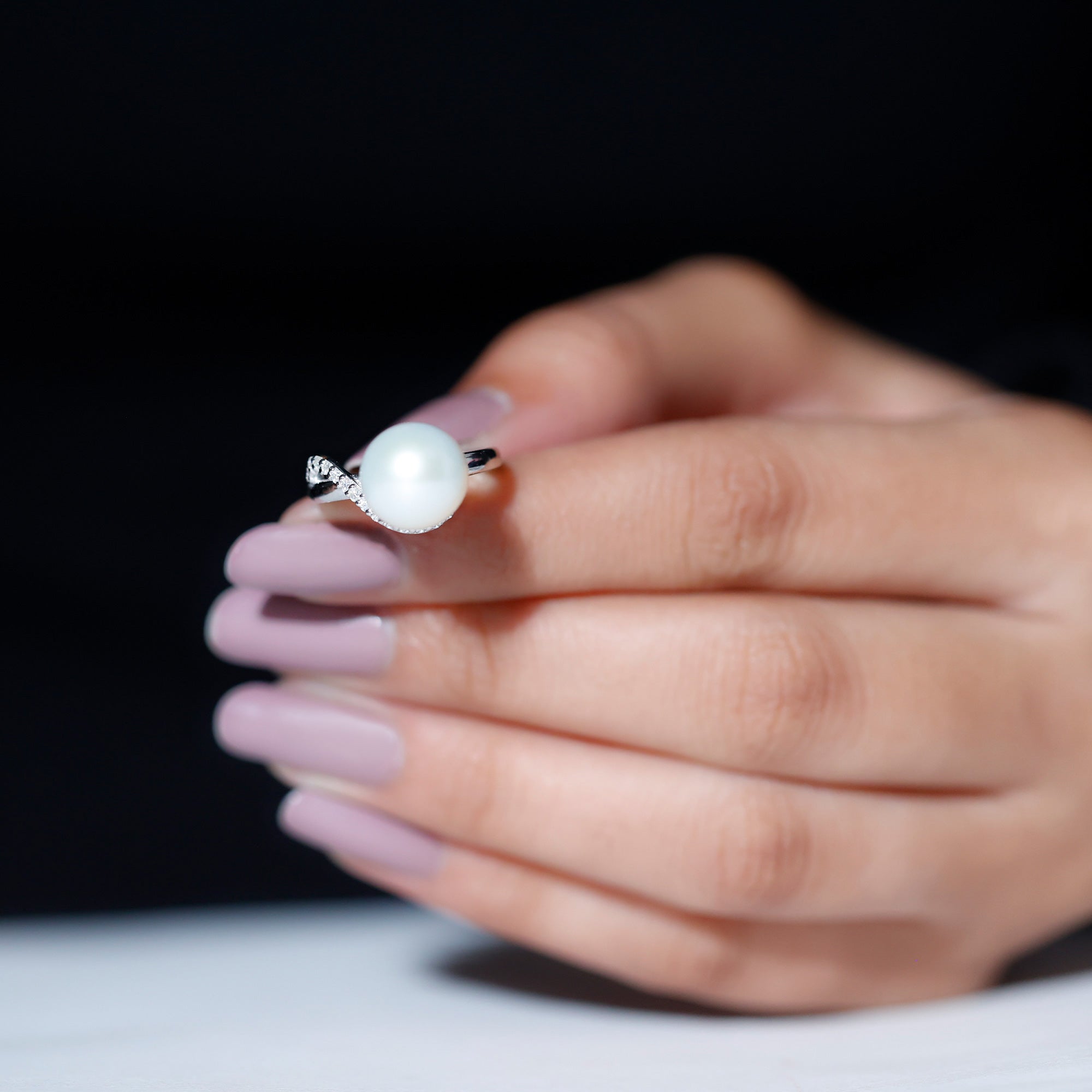 Designer Freshwater Pearl Solitaire Engagement Ring with Moissanite Accent
