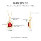 Drape yourself in the eloquence of petals and gemstones with our Nature Inspired Lab Grown Ruby Teardrop Pendant Necklace. Each glance unfolds a story of timeless beauty, where a 8x10 mm Pear Shaped Ruby (synthetic) takes center stage, cradled by intricate leafy metal patterns and embraced by the shimmering allure of Round Shaped Diamonds (Lab Created). Let your style flourish with this captivating piece, featuring Aaaa Quality Ruby and Ef-Vs Quality Diamond, where the magic of nature and luxury converges. Elevate your presence with this Ruby Diamond Pendant, and let Rosec Jewels be your guide in crafting a narrative of grace and allure that captivates hearts with every wear.