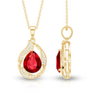 Designer Lab Created Ruby Teardrop Pendant Necklace with Diamond